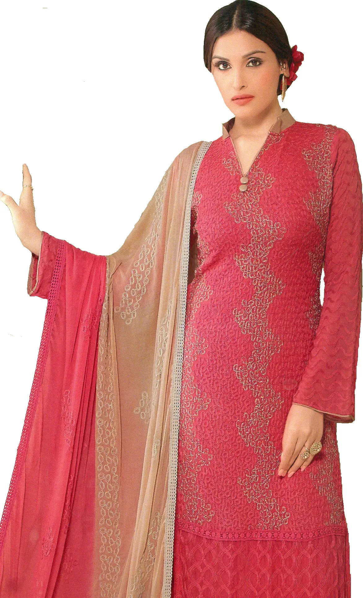 This salwar kameez is a testament to versatile elegance, suitable for a wide array of occasions. Whether you're attending a wedding, a festive gathering, a cultural event, or even a special dinner, this outfit is sure to make a statement. The pure cotton fabric ensures breathability, making it comfortable for extended wear, while the intricate embroidery elevates it to a luxurious piece perfect for celebratory moments. Pair it with the accompanying dupatta for a complete and harmonious look. The dupatta features contrasting tones that complement the raspberry-pink, adding depth and visual interest. Its edges are also adorned with delicate embroidery and a fine lace trim, mirroring the exquisite craftsmanship of the kameez.