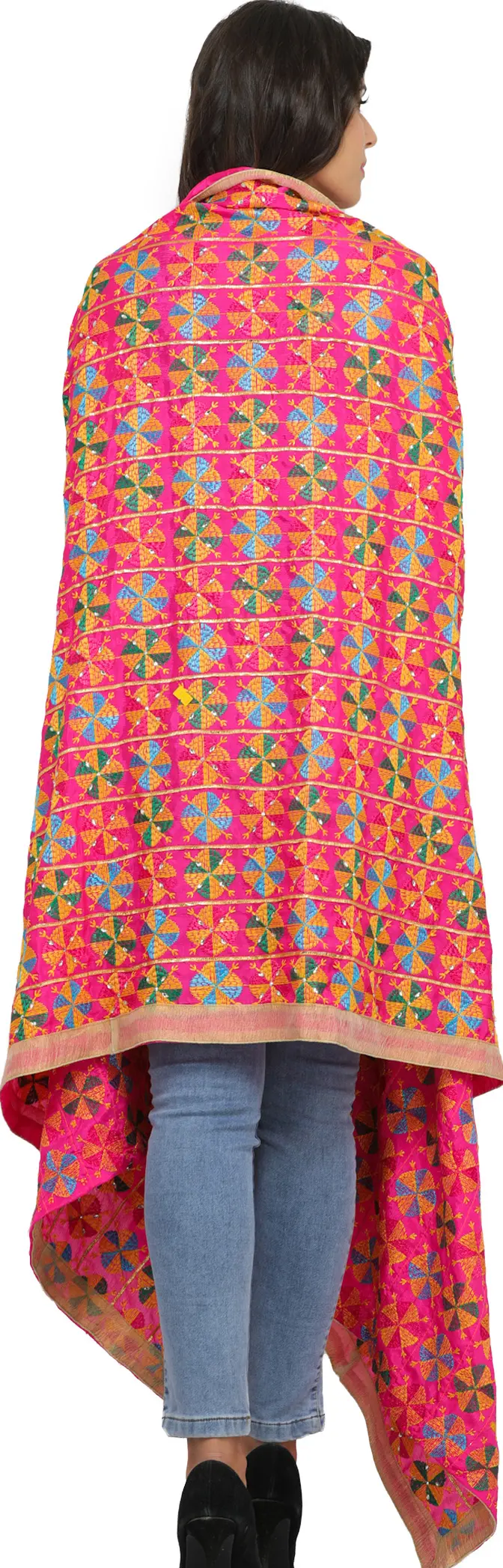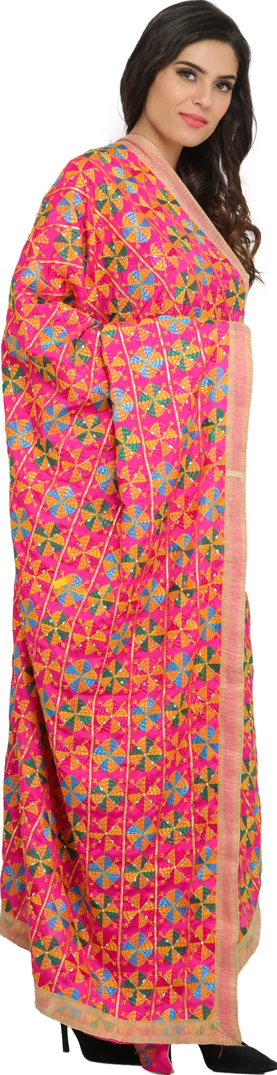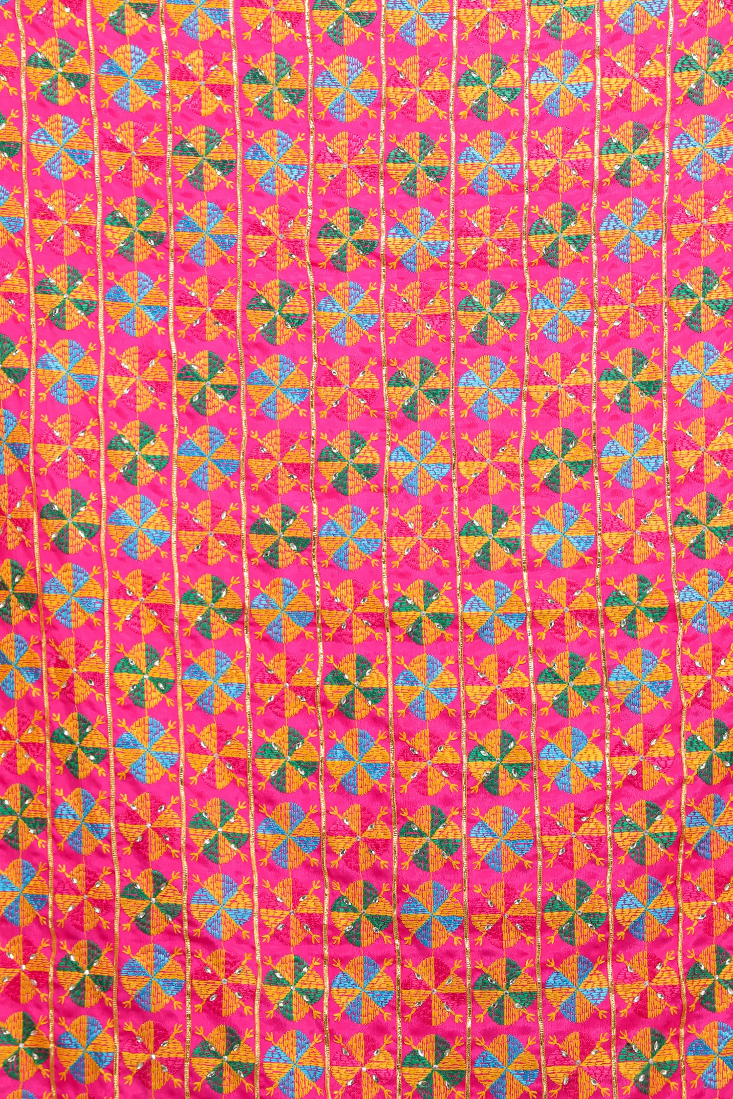 Phulkari Dupatta from Punjab with Embroidery and Gota Border