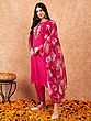 Designer Viscose Chanderi Embroidery Work Festive Wear Kurta Set With Floral Print Dupatta