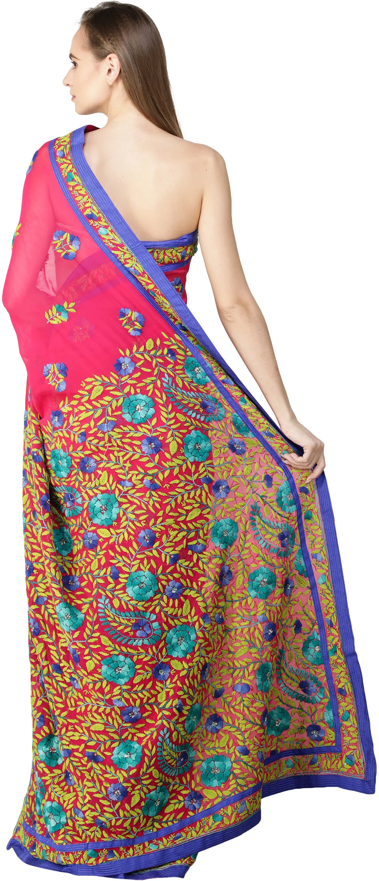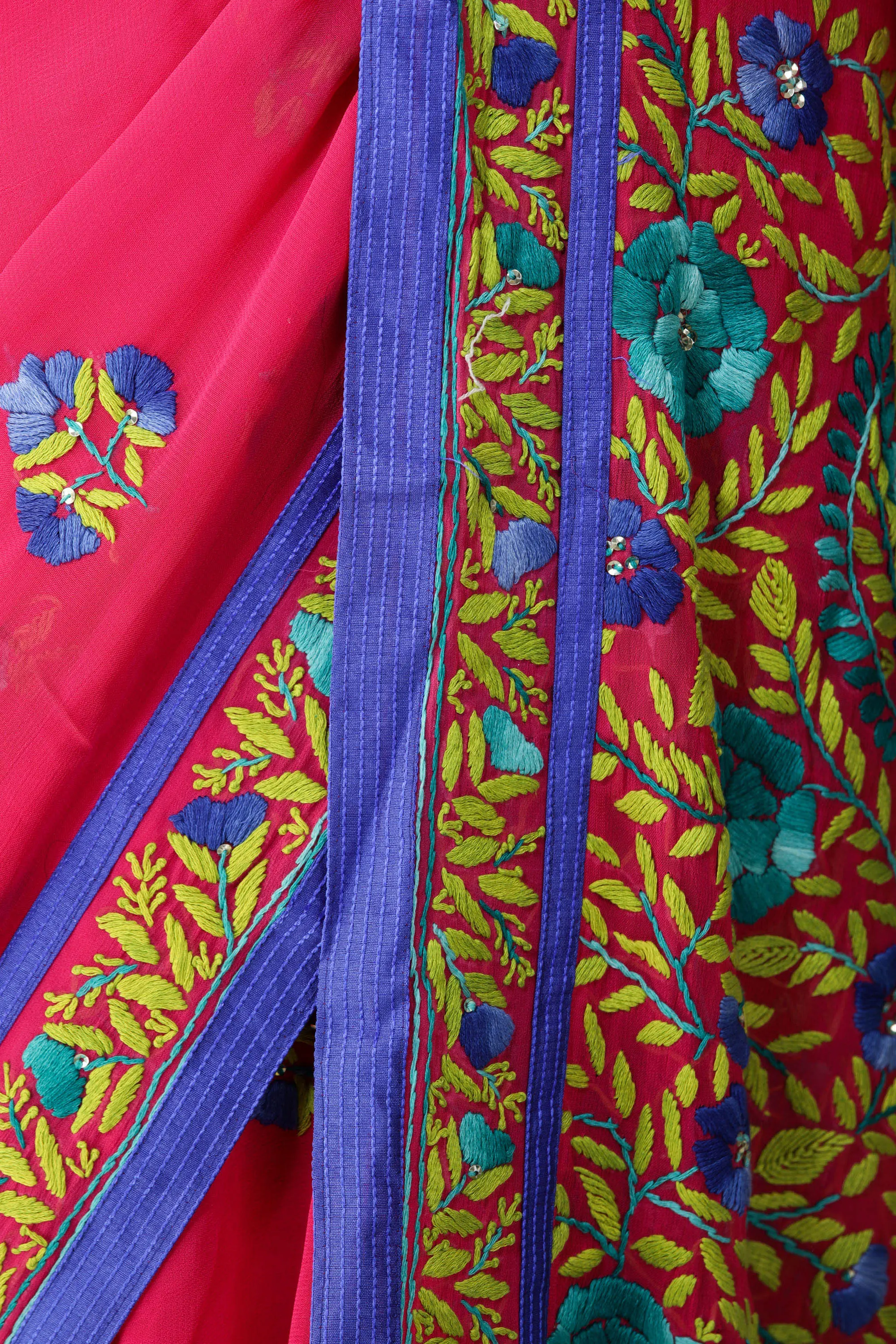 Raspberry-Sorbet Saree from Amritsar with Phulkari Embroidery