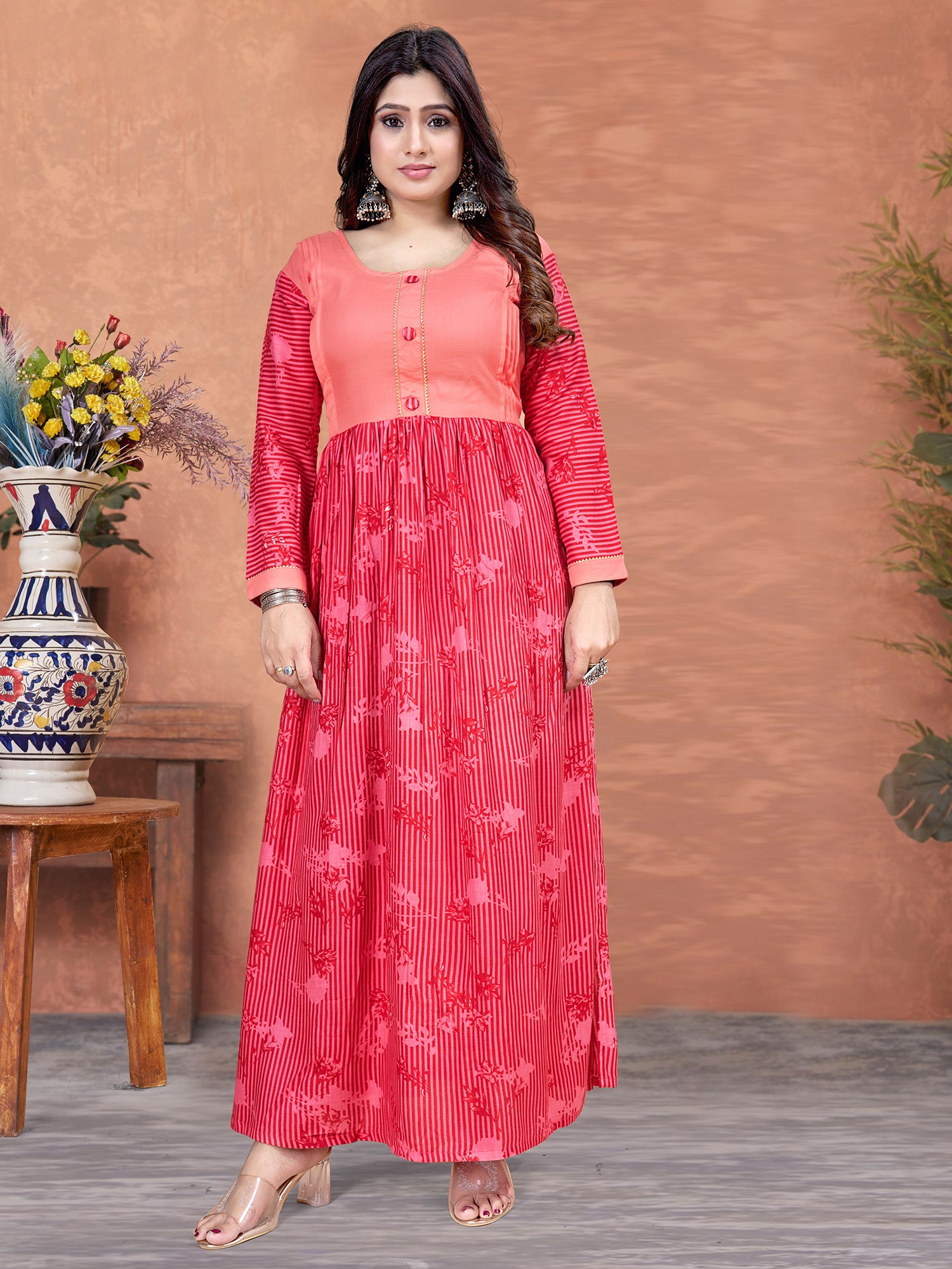 Digital Floral Print Designer Rayon Party Wear A-Line Attractive Gown