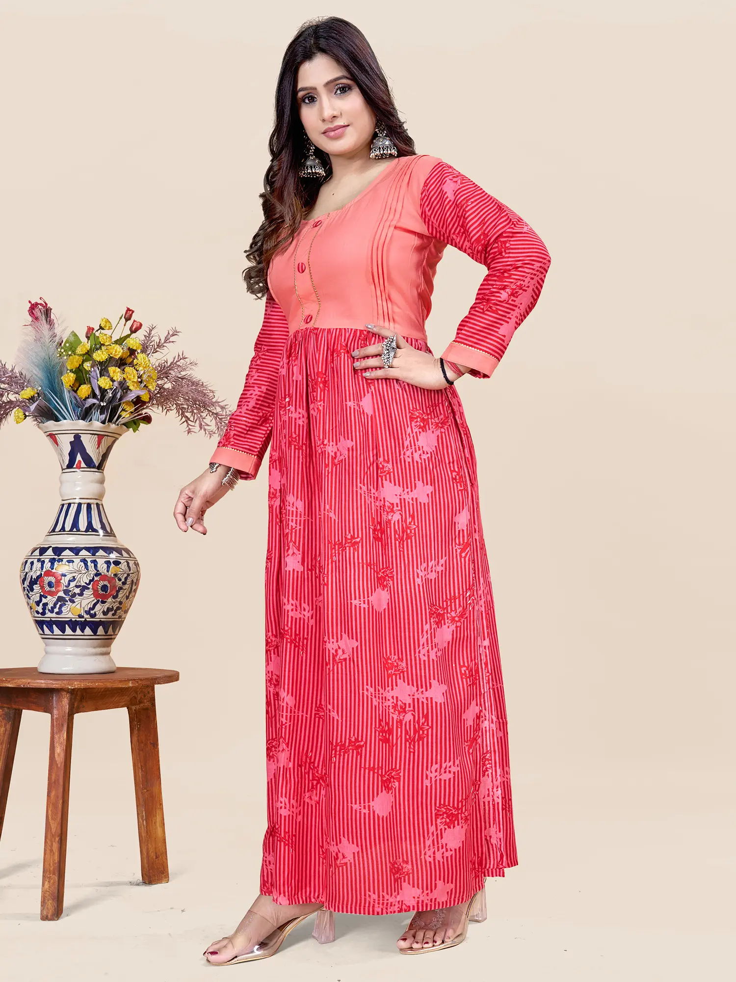 Rayon Digital Print Floral Round Neck Designer Gown For Casual Occasion