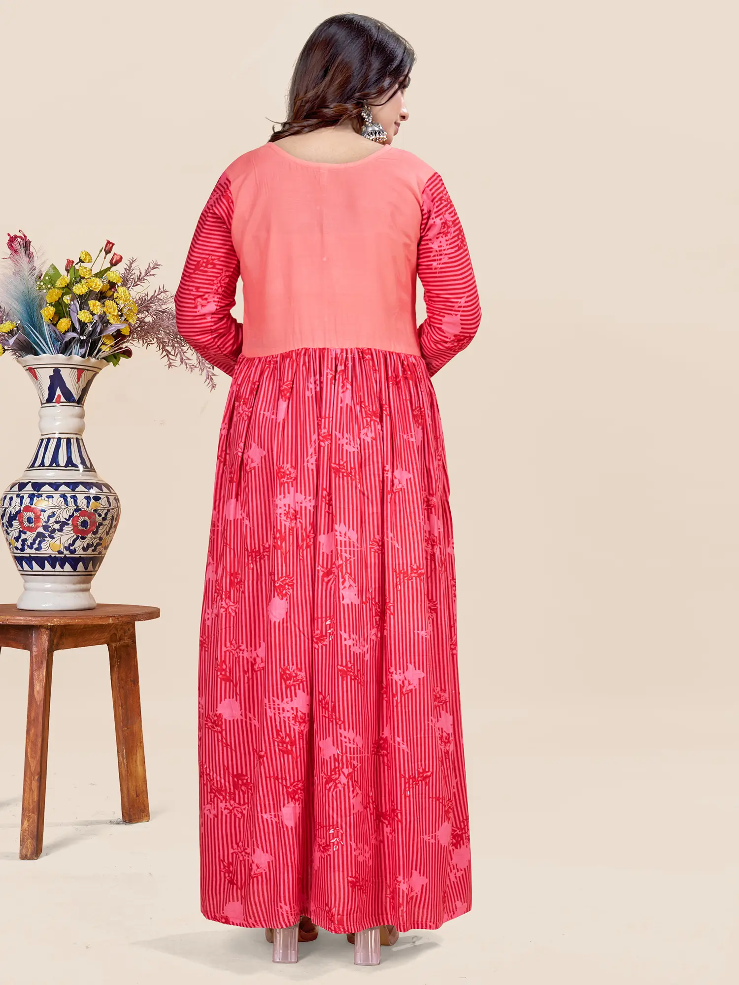Embroidery Work And Digital Print Rayon Designer A-Line Party Wear Gown