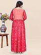 The gown comes alive with a vibrant digital print. Delicate floral motifs intertwine across the fabric, creating a visually captivating effect. The upper section of the gown features a light solid tone, transitioning into the patterned design. The sleeves showcase a striped floral pattern, adding a unique textural element and further enhancing the overall charm. This thoughtful combination of design elements results in a garment that is both eye-catching and effortlessly chic.