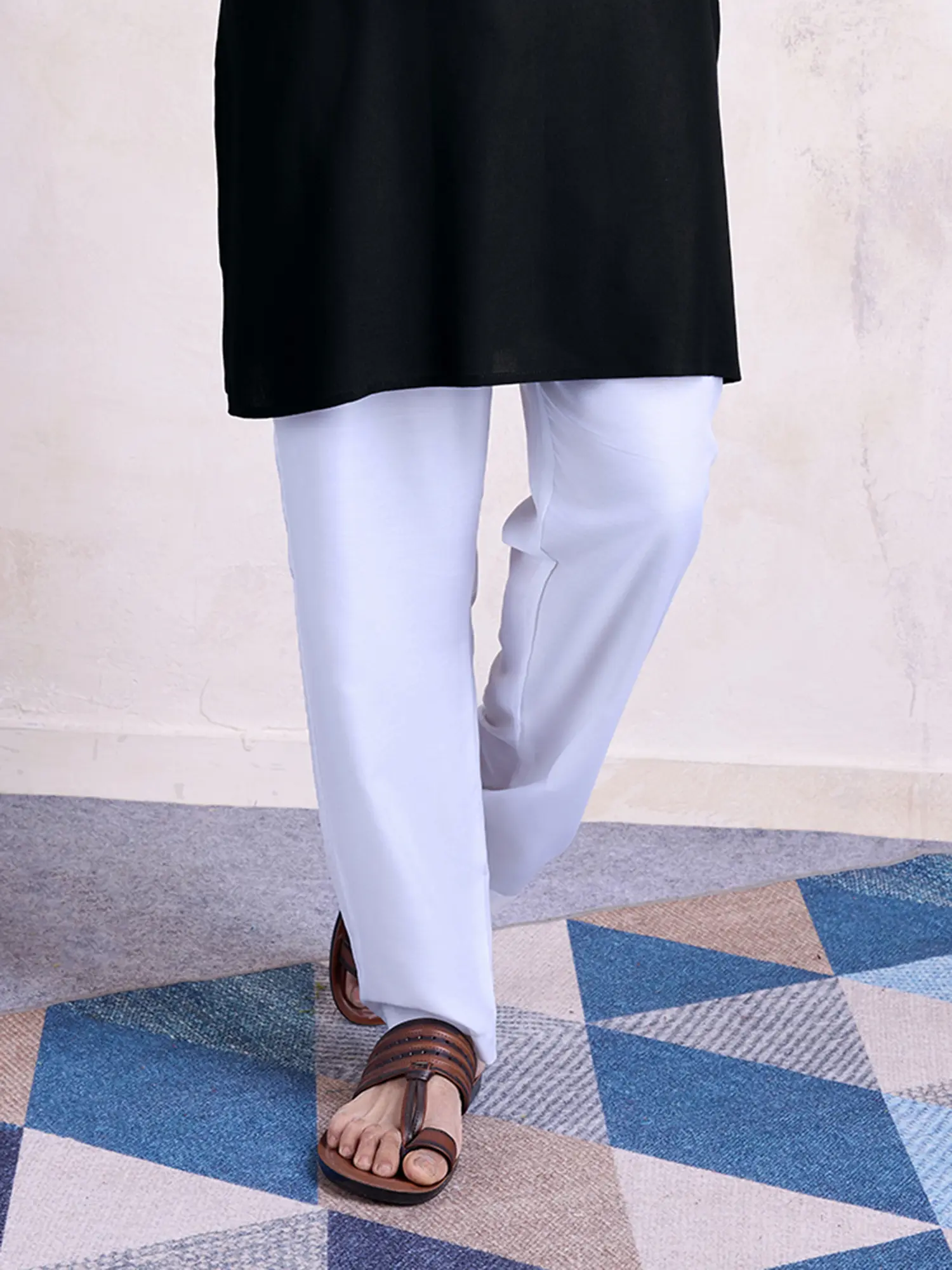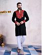Black Kurta Pajama with Lucknowi Embroidery on Neck