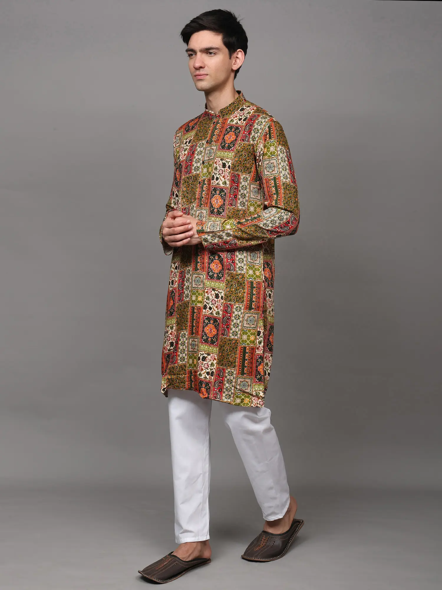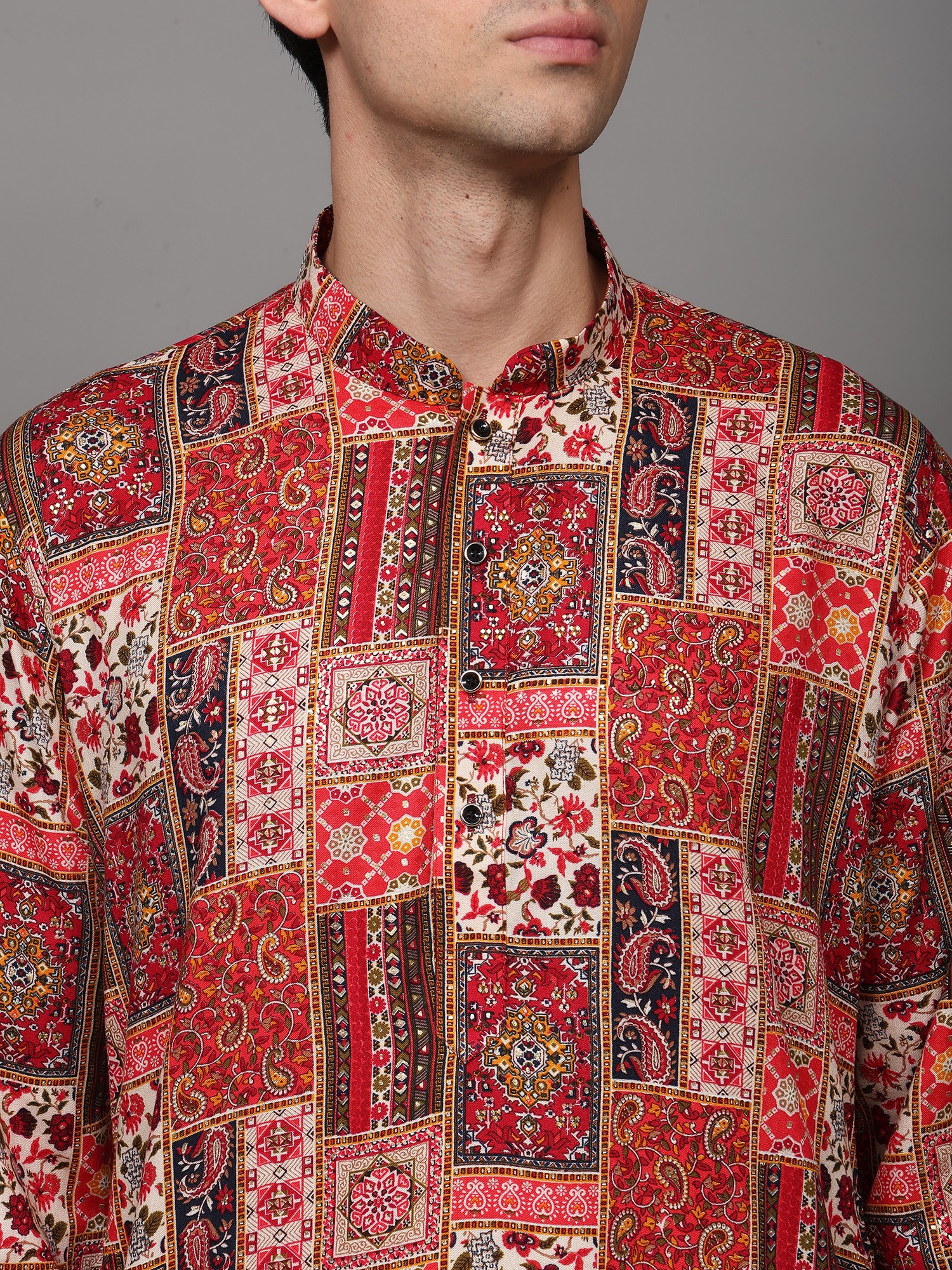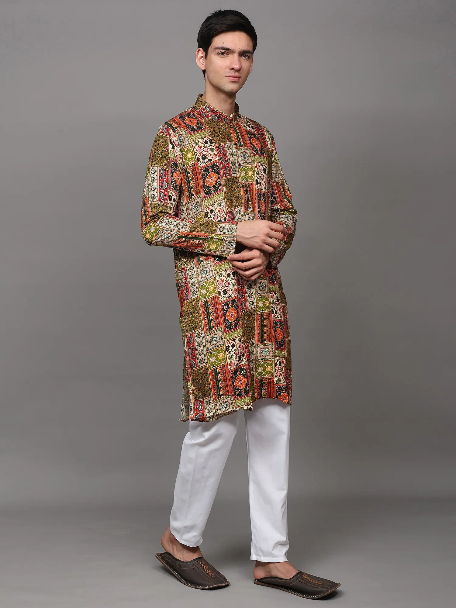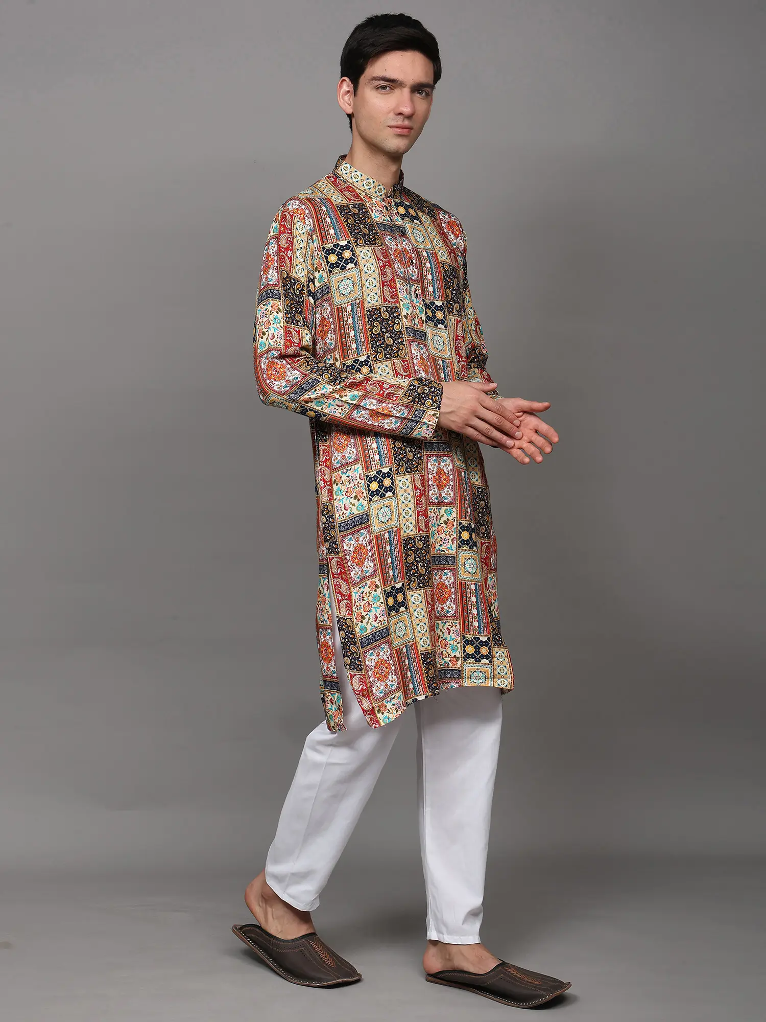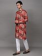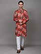 Printed Multi-Colored Kurta Pajama Set with Embroidery in Self-Colored Thread