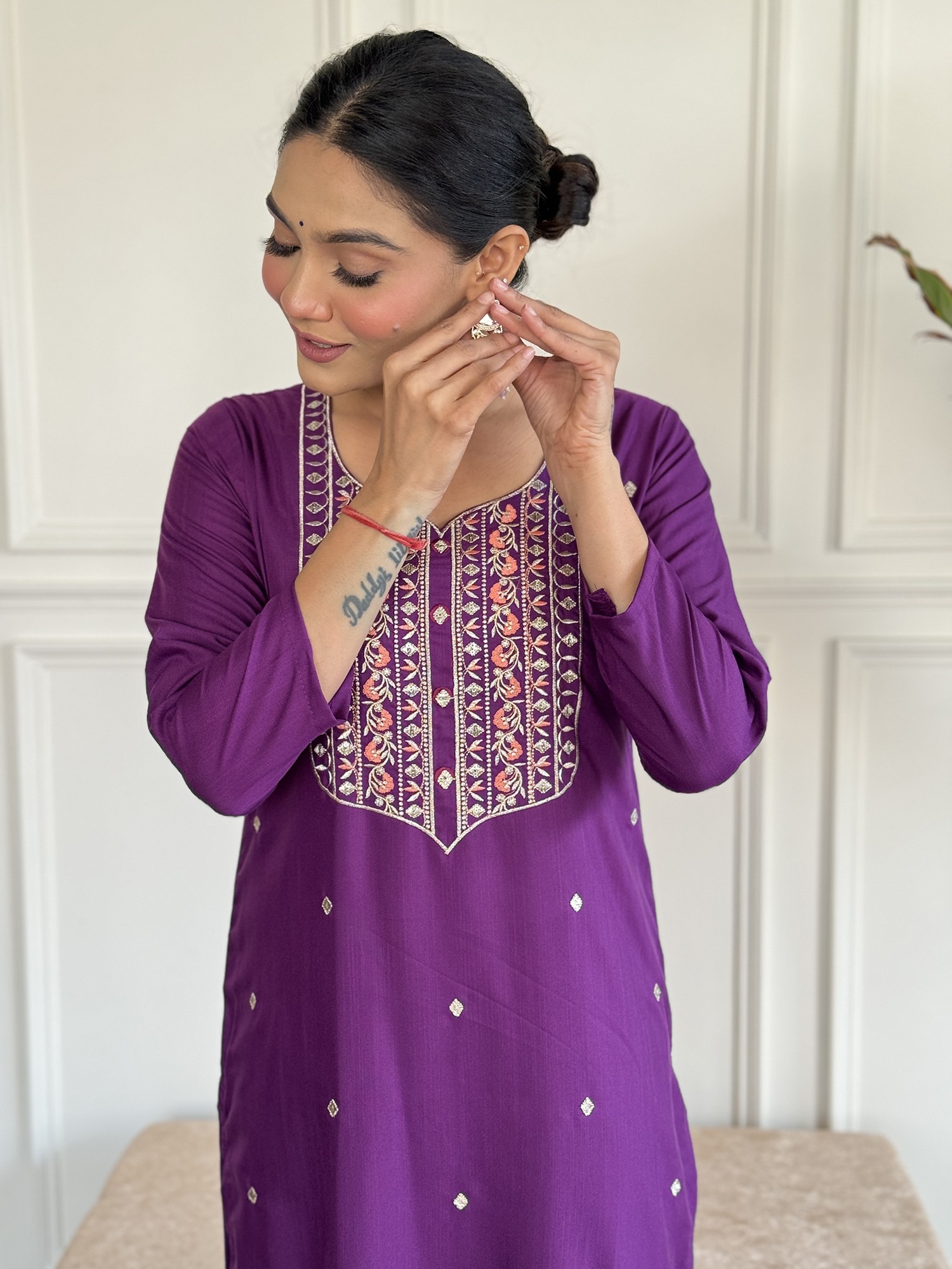 This ensemble is designed for the modern woman who appreciates both tradition and contemporary style. Perfect for festive occasions, family gatherings, or even a stylish day out, this kurta set offers endless possibilities. Pair it with your favorite jewelry and heels for a glamorous look, or dress it down with flats for a more casual and comfortable ensemble. The beautiful color and timeless design ensure you'll make a lasting impression wherever you go.
