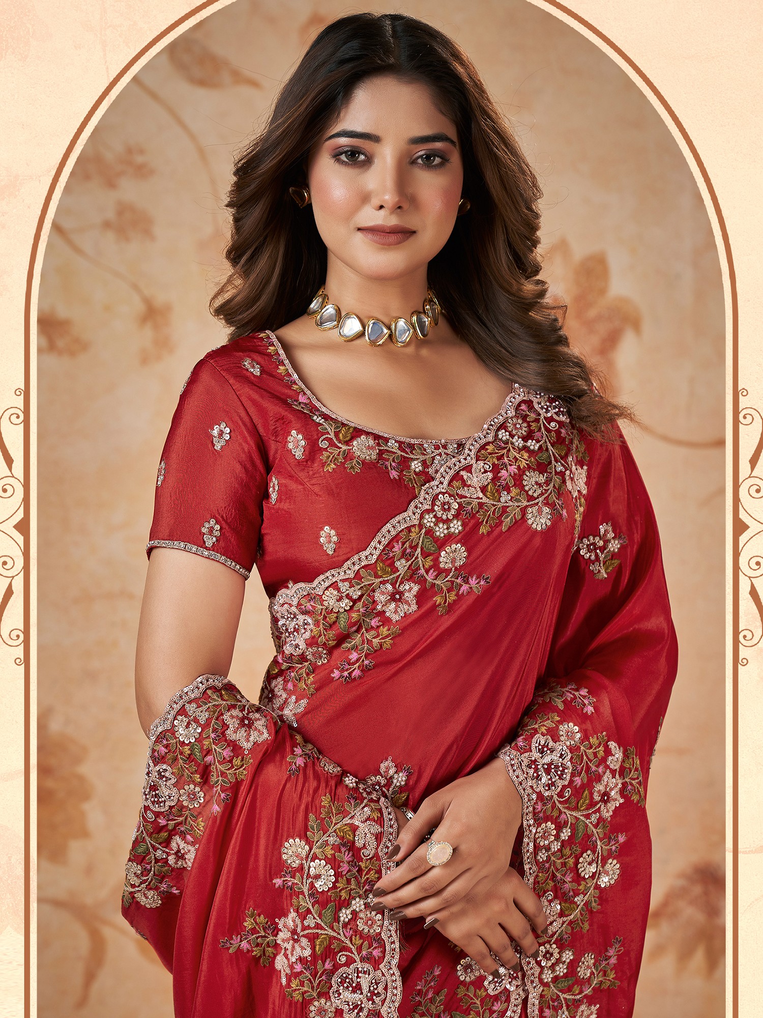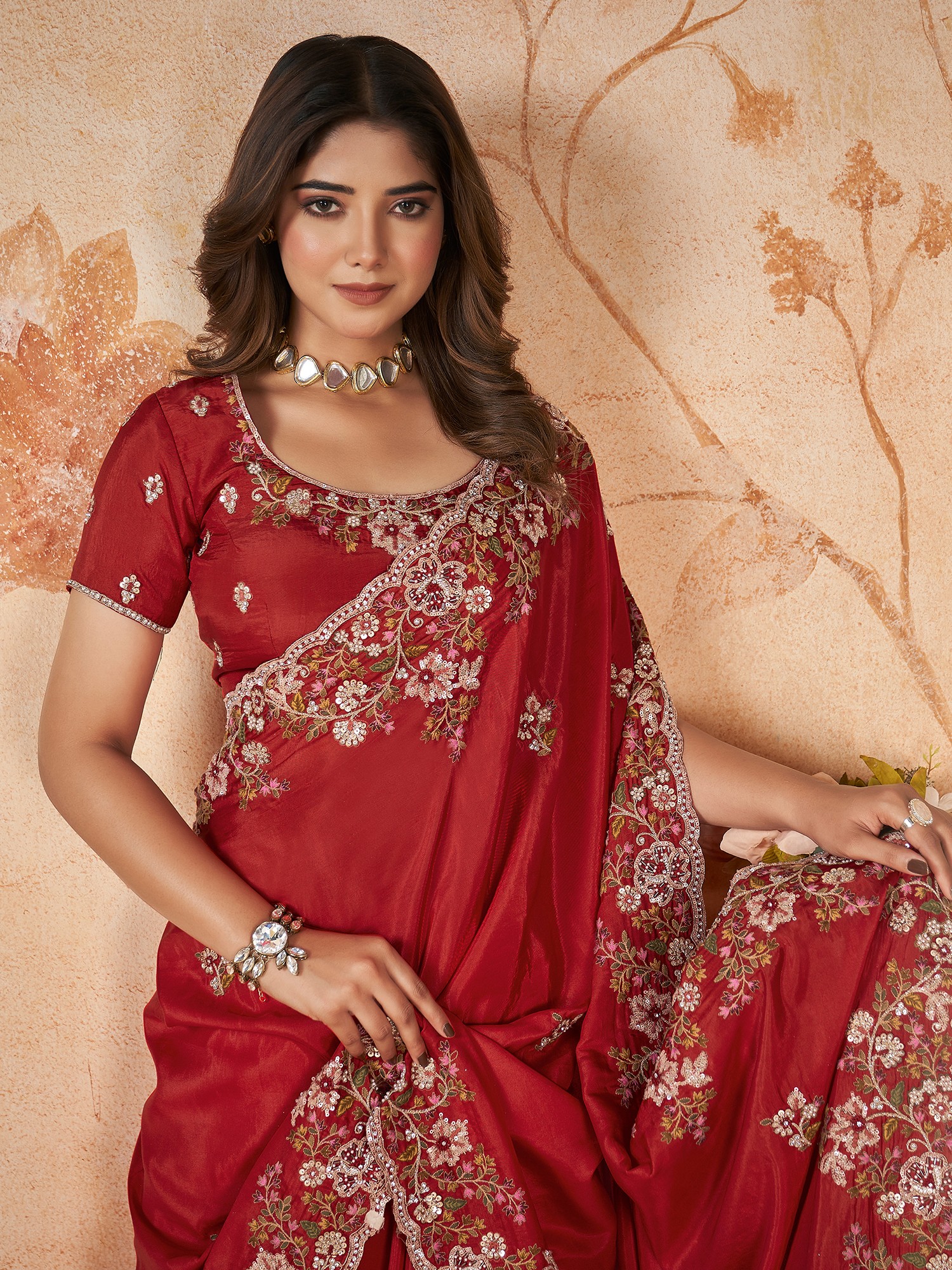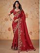 Red-Brown Silk Sequence & Cord Embroidered With Stone Work Designer Saree With Blouse