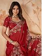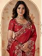 Baltic Blue and Red Designer Sari with All-Over Embroidered Sequins and Patch Border