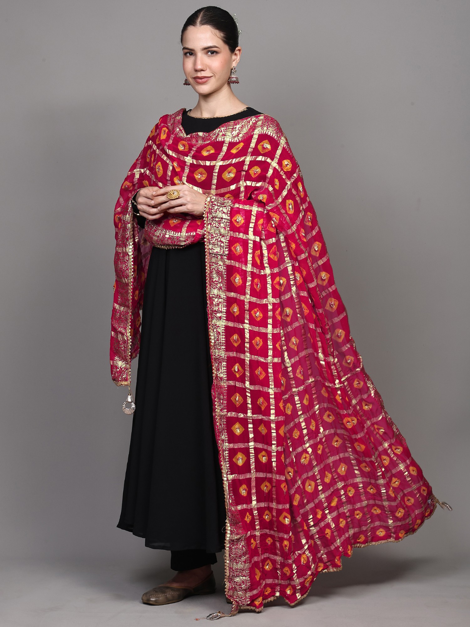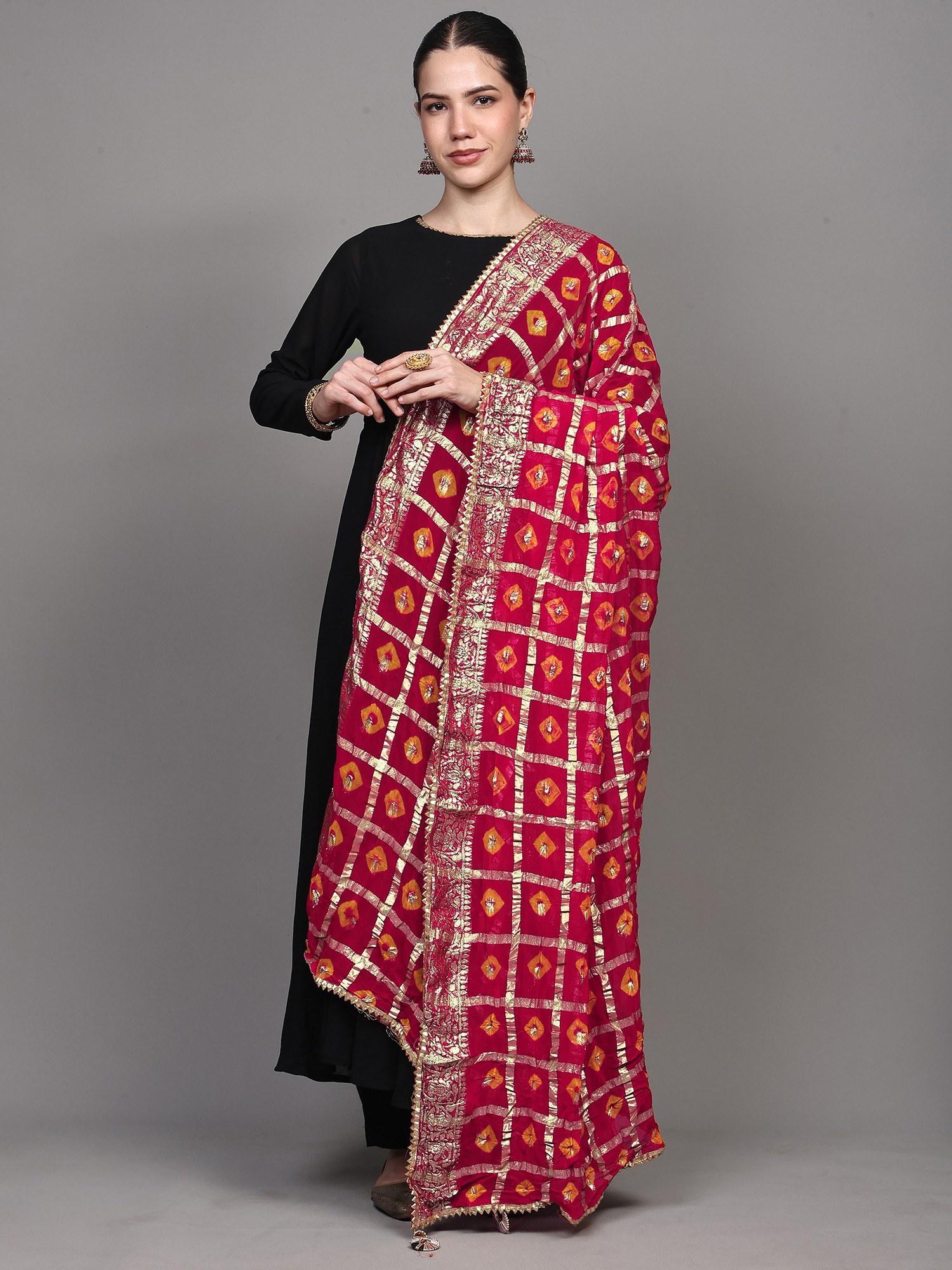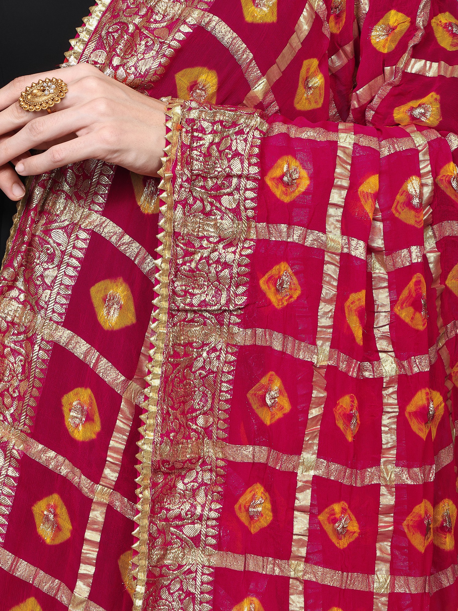 Bandhani Tie-Dye Gharchola Dupatta from Jodhpur with Golden Thread Weave
