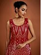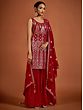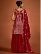 Red Georgette Chowkadi Motif Sharara Suit With Sequins Work And Latkan Dupatta