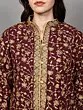 Karanda-Red Pure Silk Short Jacket with Aari Embroidered Paisleys and Flowers from Srinagar