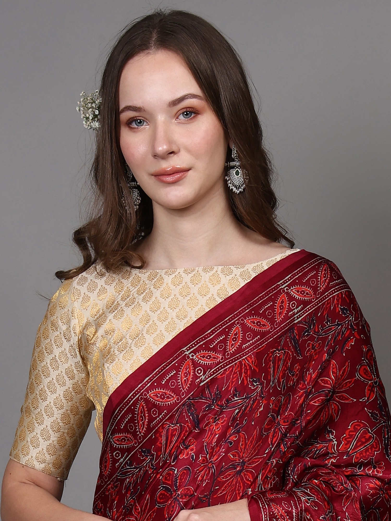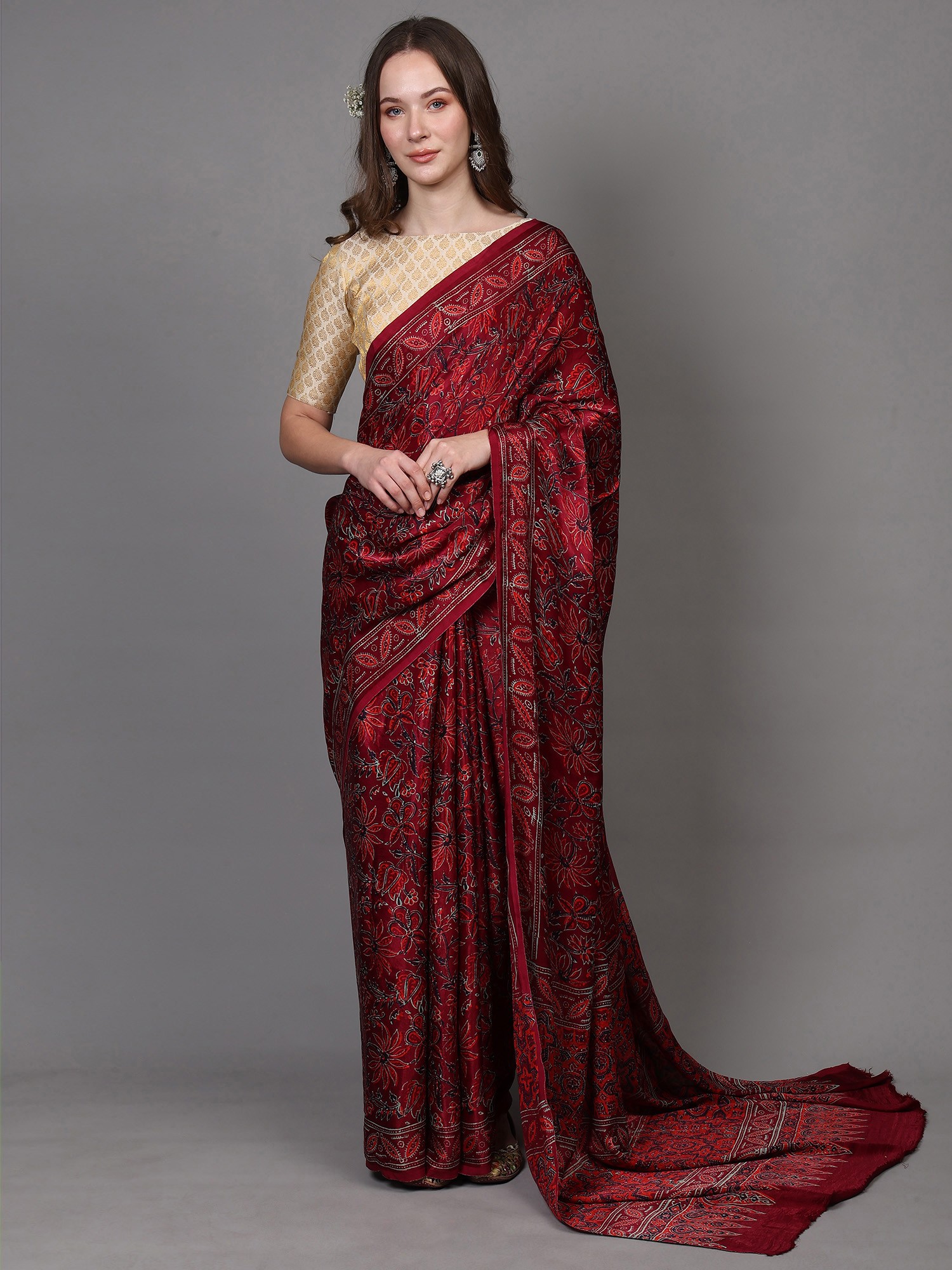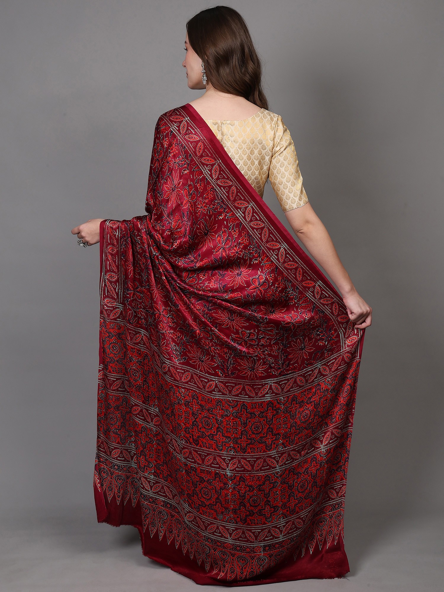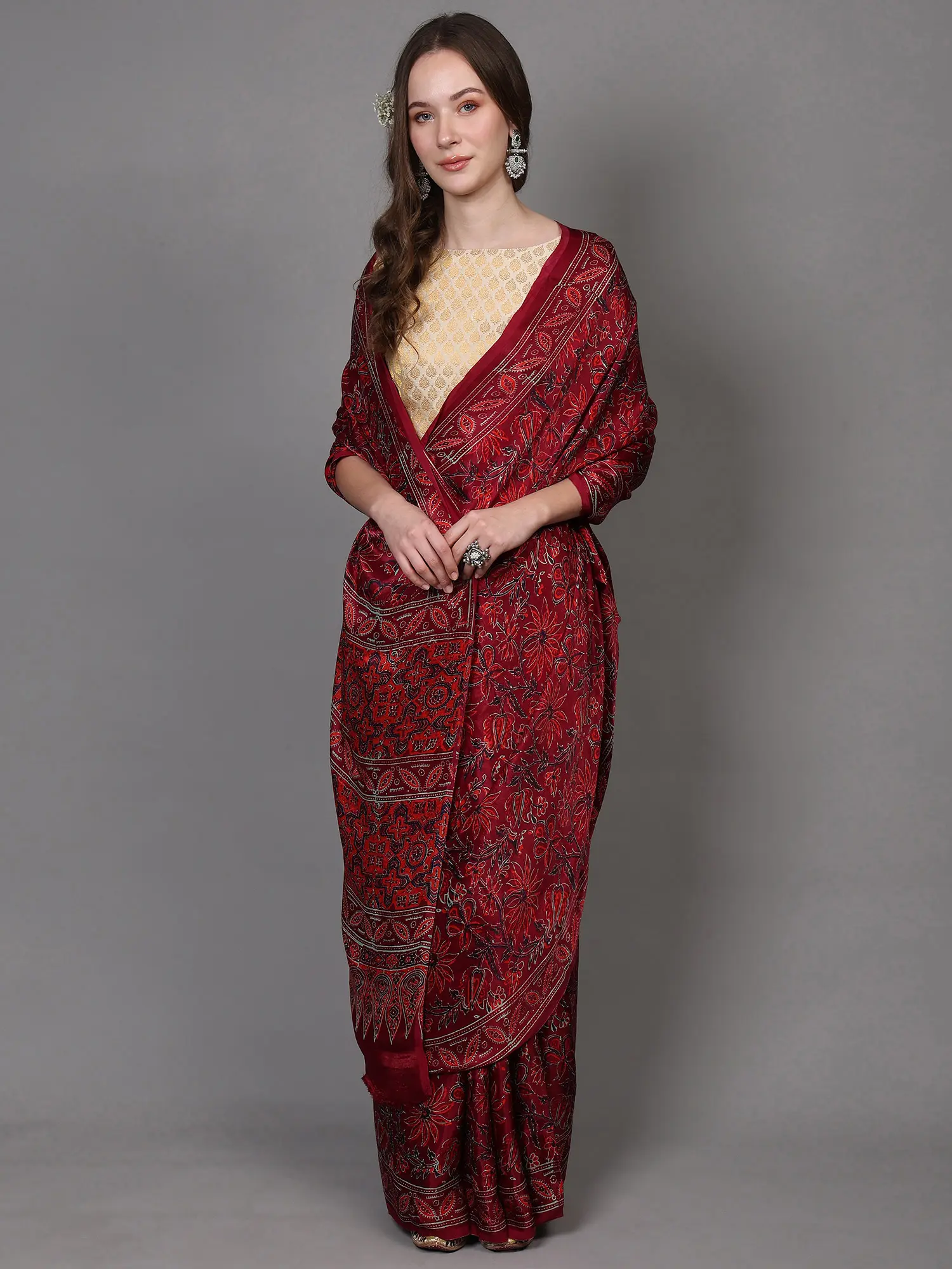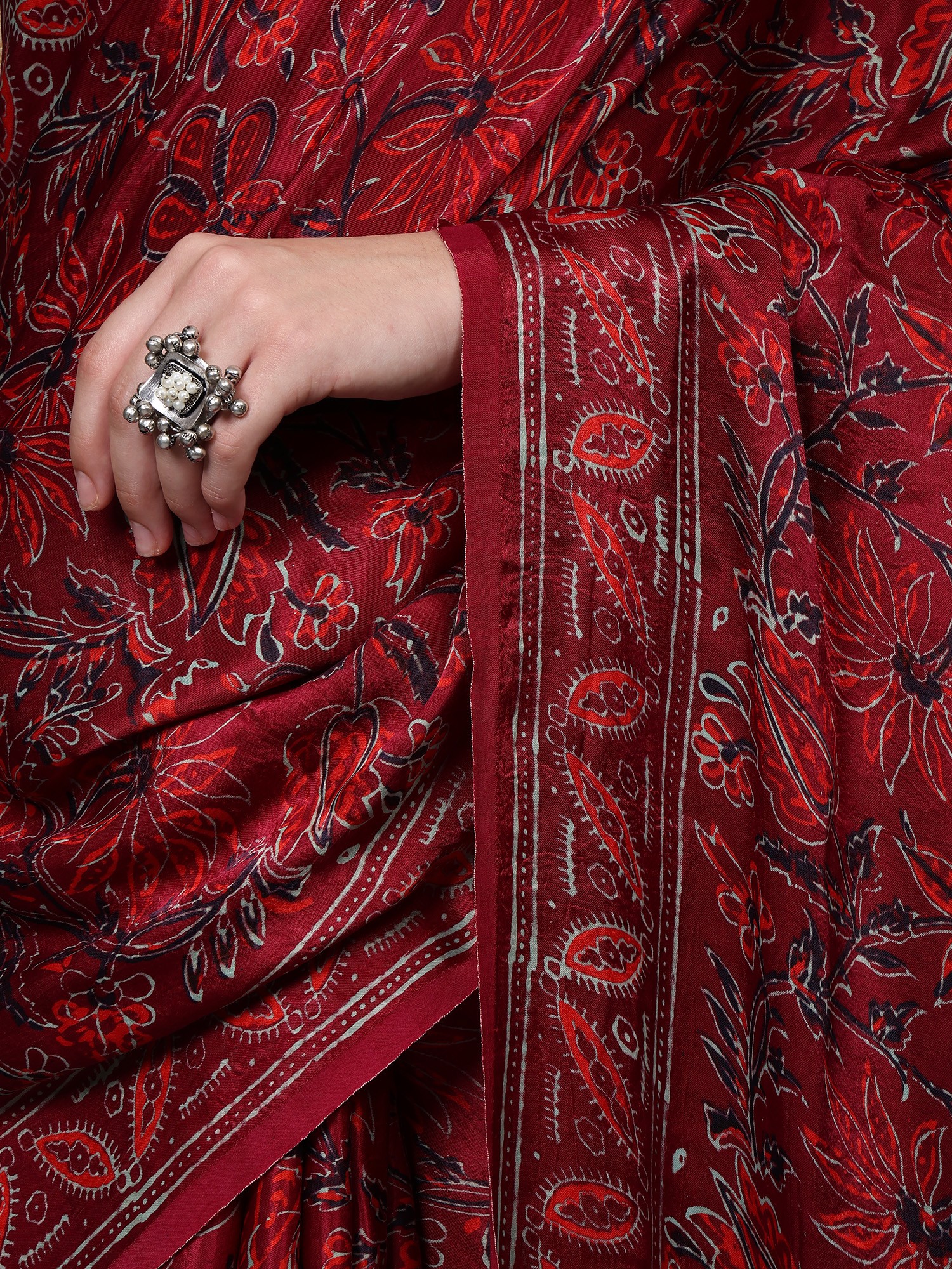 Burnt-ochre printed Saree form Surat with Gota-Patti Border and Stones on Pallu
