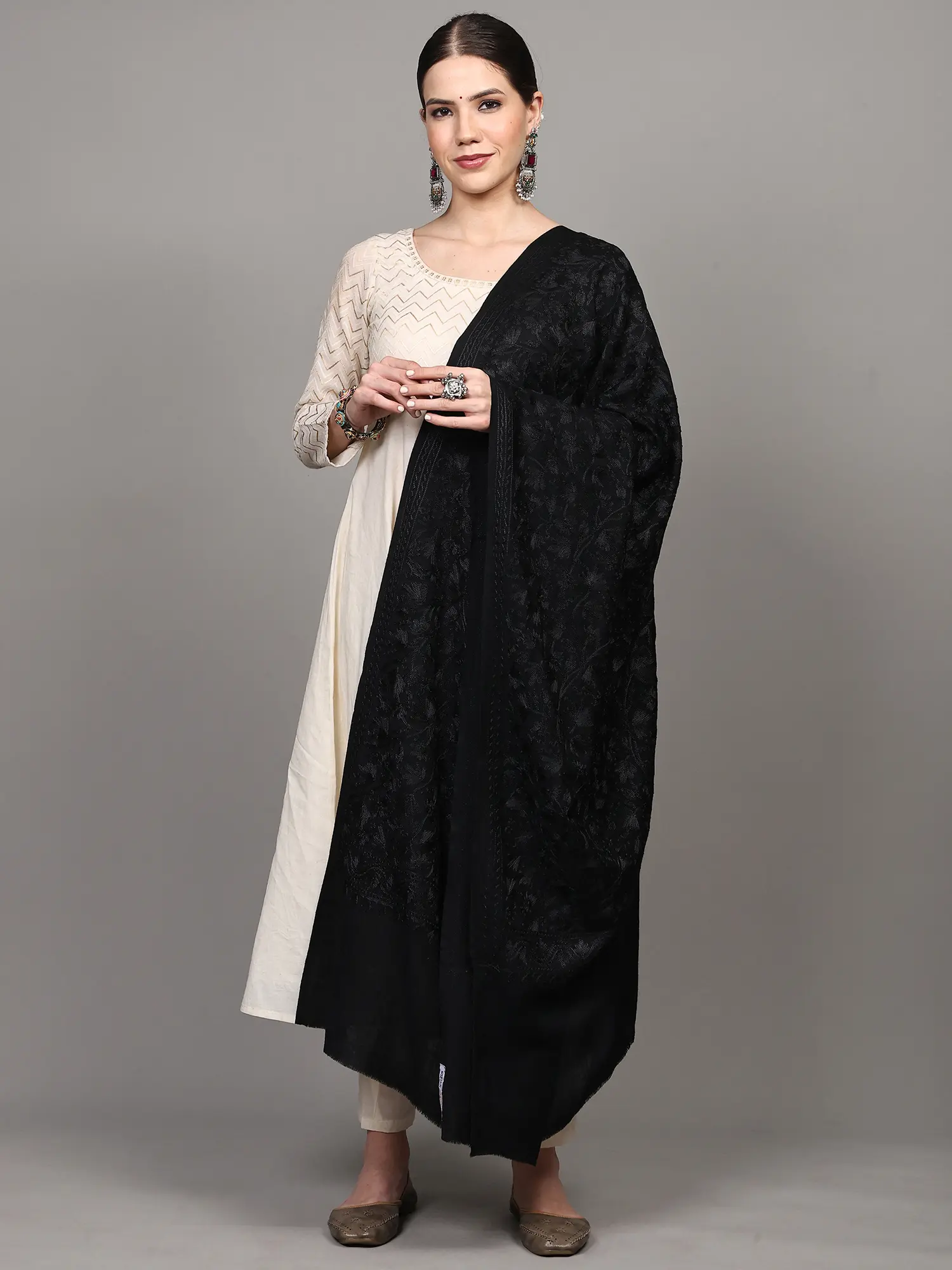 Immerse yourself in the rich heritage of Indian textiles with this breathtaking wool shawl, a testament to the artisanal craftsmanship of Amritsar. Each thread tells a story, woven with meticulous care and an eye for intricate detail. This piece is more than just an accessory; it's a wearable piece of art, designed to elevate your style and imbue your wardrobe with a touch of timeless elegance.