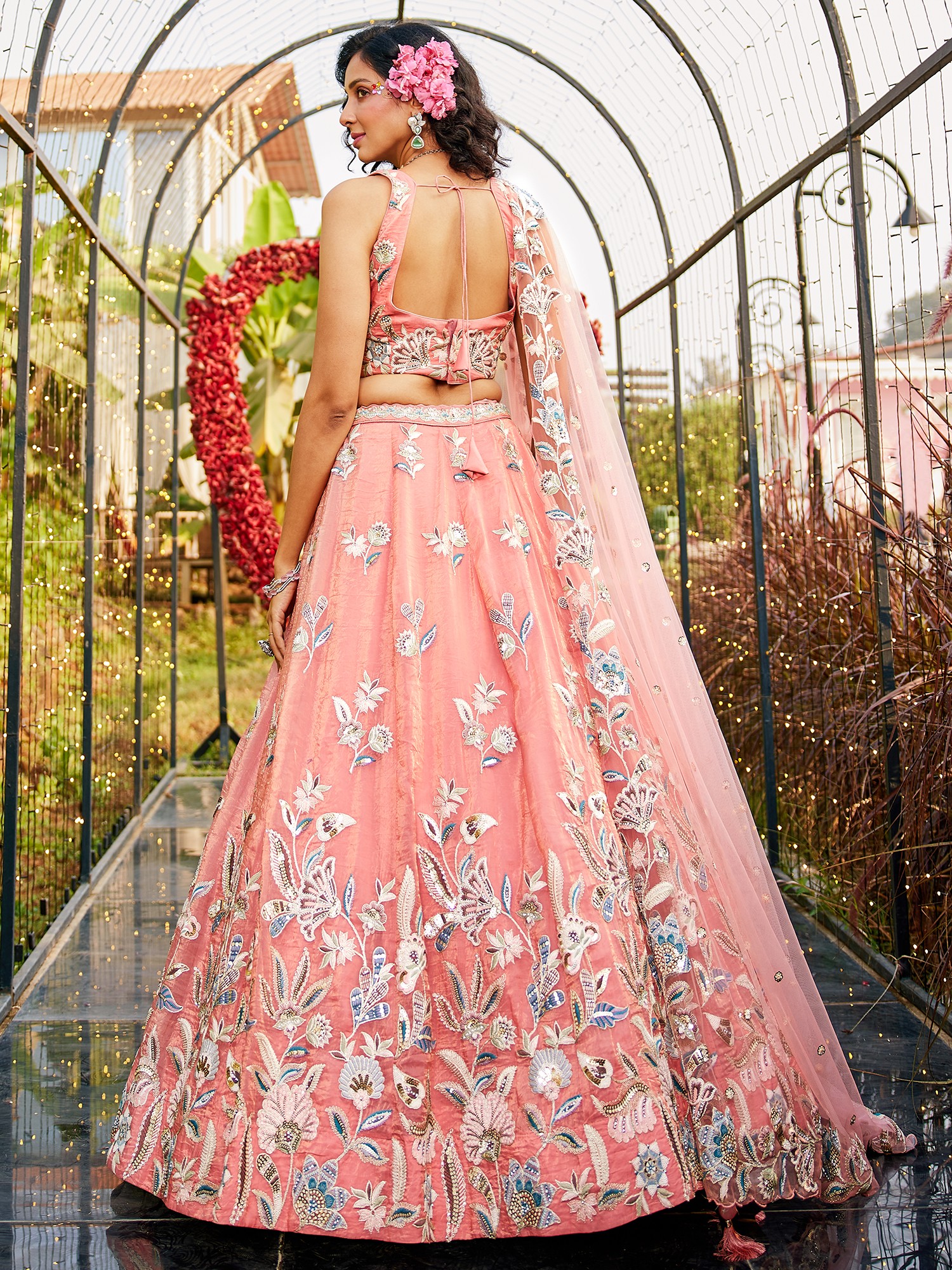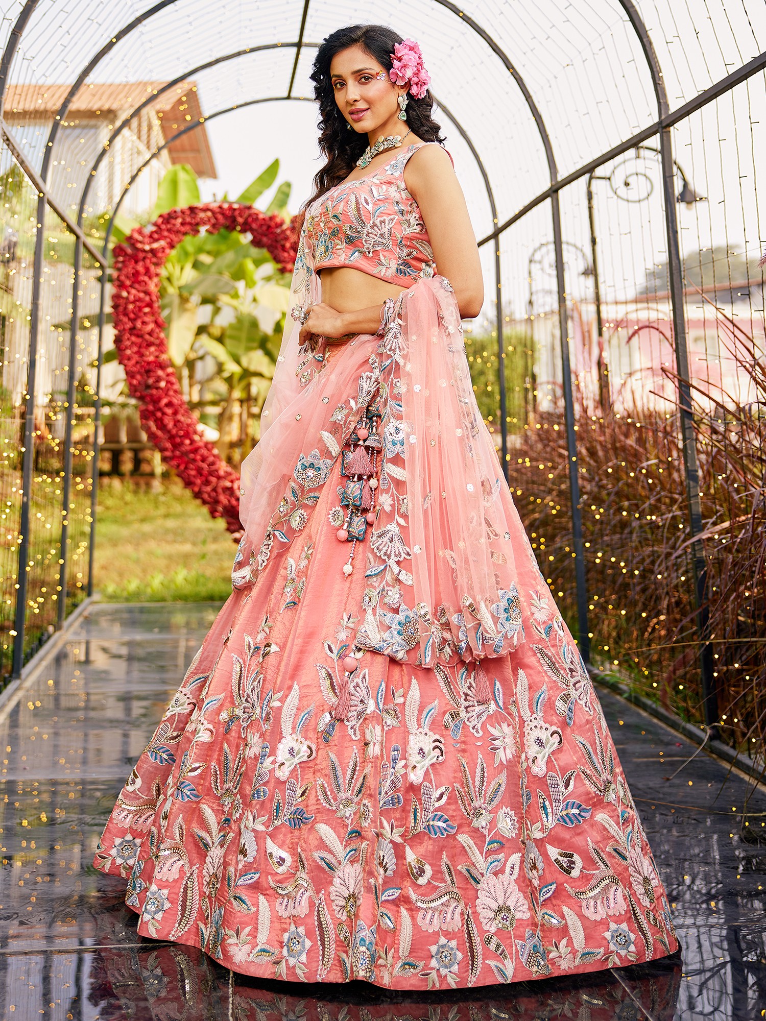 Elegant Tissue Net Lehenga Choli With Heavy Sequin And Thread Embroidery For Bridal And Engagement Wear