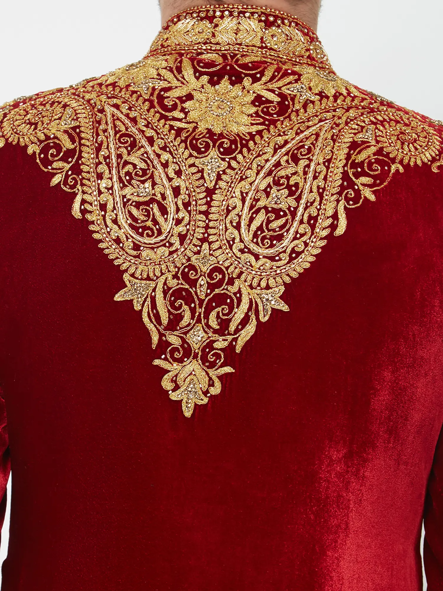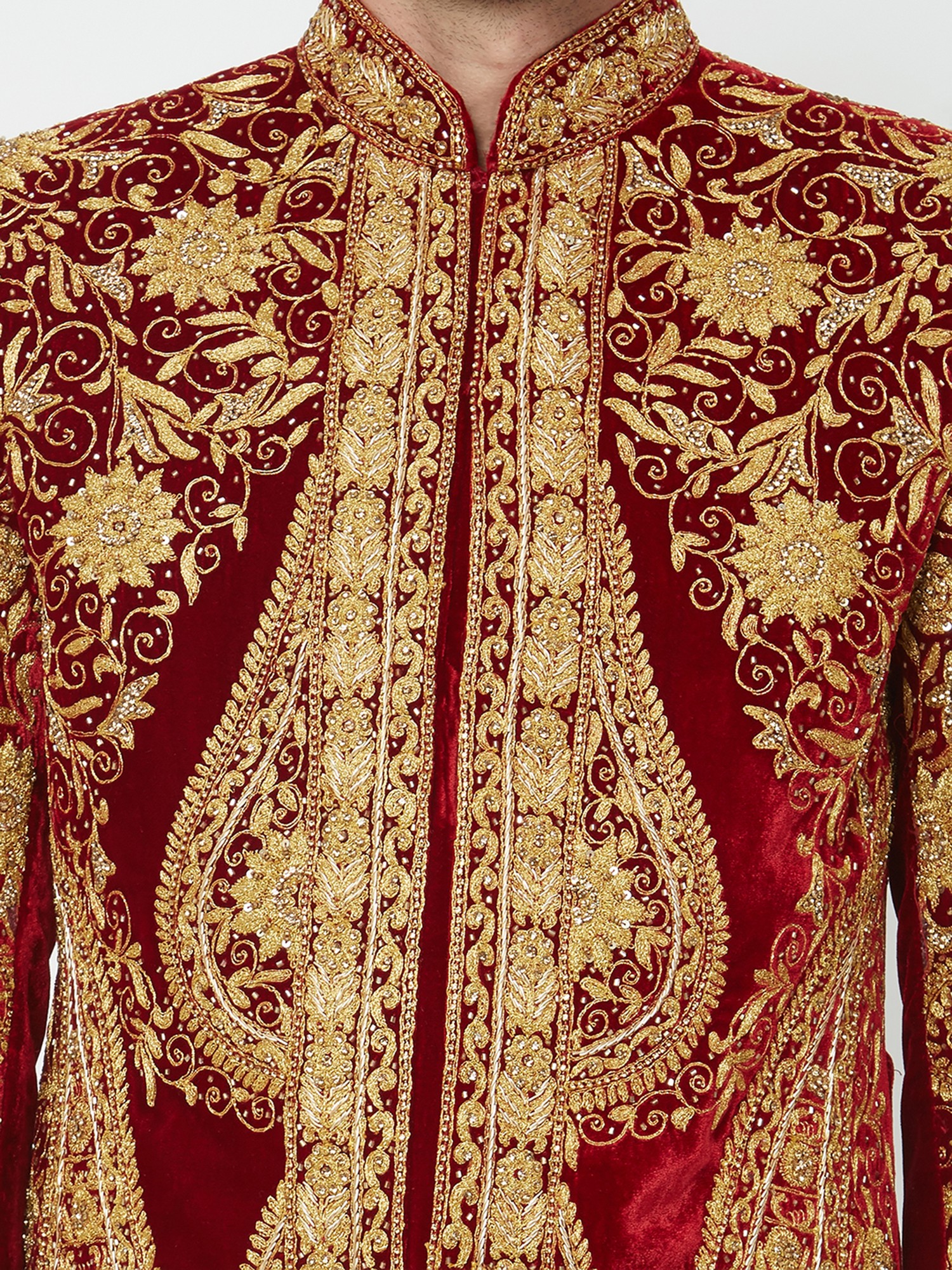 Intricate floral and paisley motifs meticulously handworked across the entire garment.