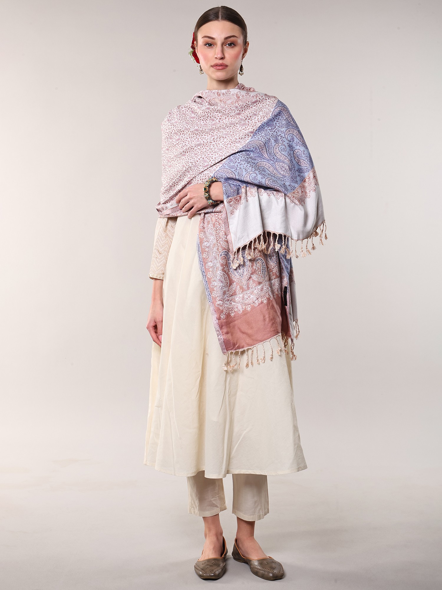 Reversible Super Silk Jamawar Stole with All-Over Weave