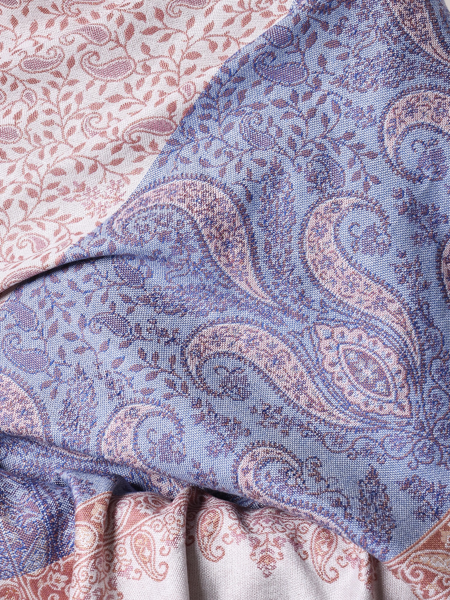Reversible Jamawar Scarf from Amritsar with Woven Paisleys