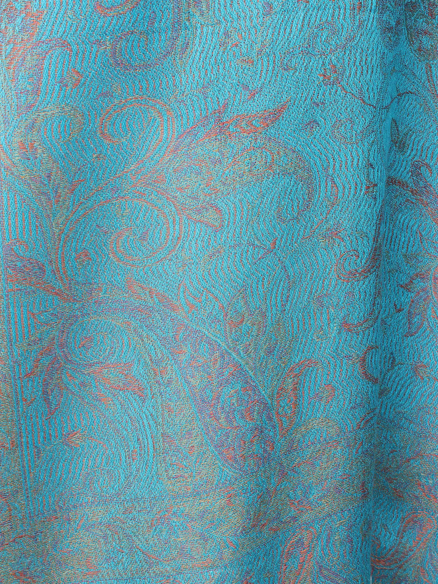 The stole is adorned with a stunning all-over design featuring the timeless paisley motif, interspersed with delicate floral elements. These motifs are brought to life through the masterful use of multi-color threads, creating a vibrant and dynamic visual appeal. The way the threads interlace and catch the light creates a subtle sheen, highlighting the depth and complexity of the woven artwork. Each paisley and flower is rendered with meticulous detail, showcasing the skill of the artisans who have brought this piece to life. The reversible nature of the stole means you can choose to highlight the richer, more pronounced tones of the weave or opt for a slightly softer, more muted presentation, depending on your outfit and mood. ––––––––––––––––––––