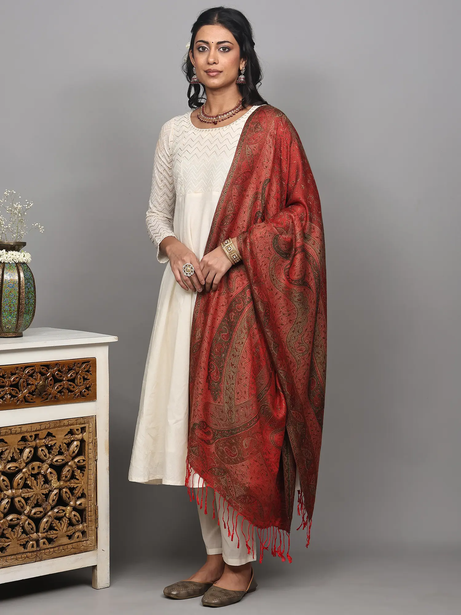 Jamawar Shawl with Woven Border and Paisleys All-Over