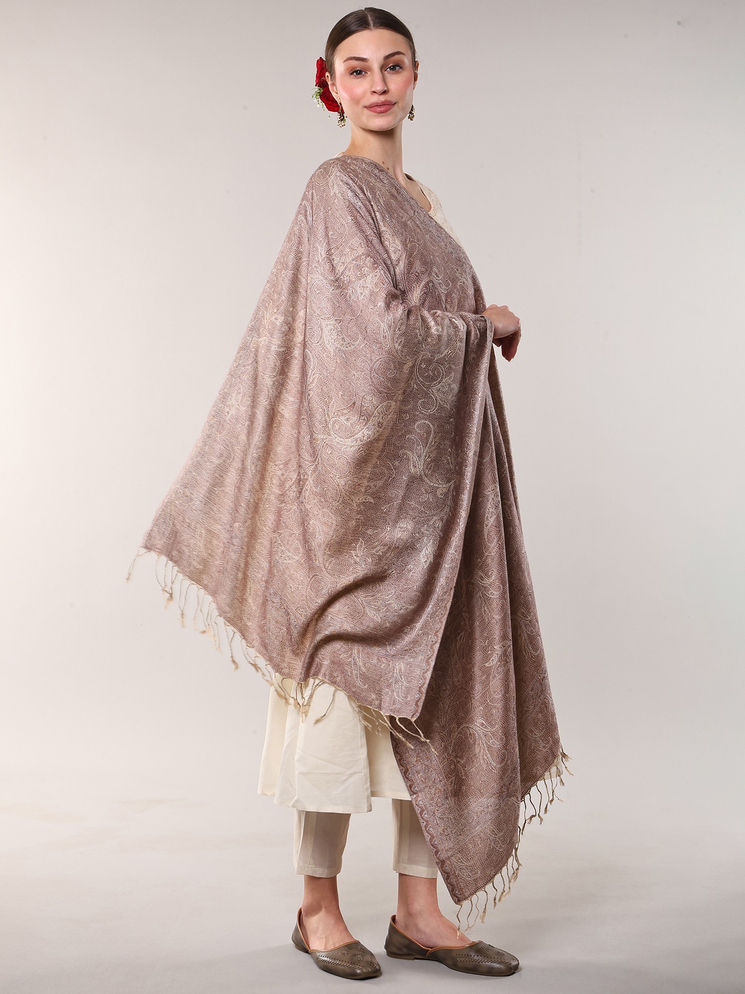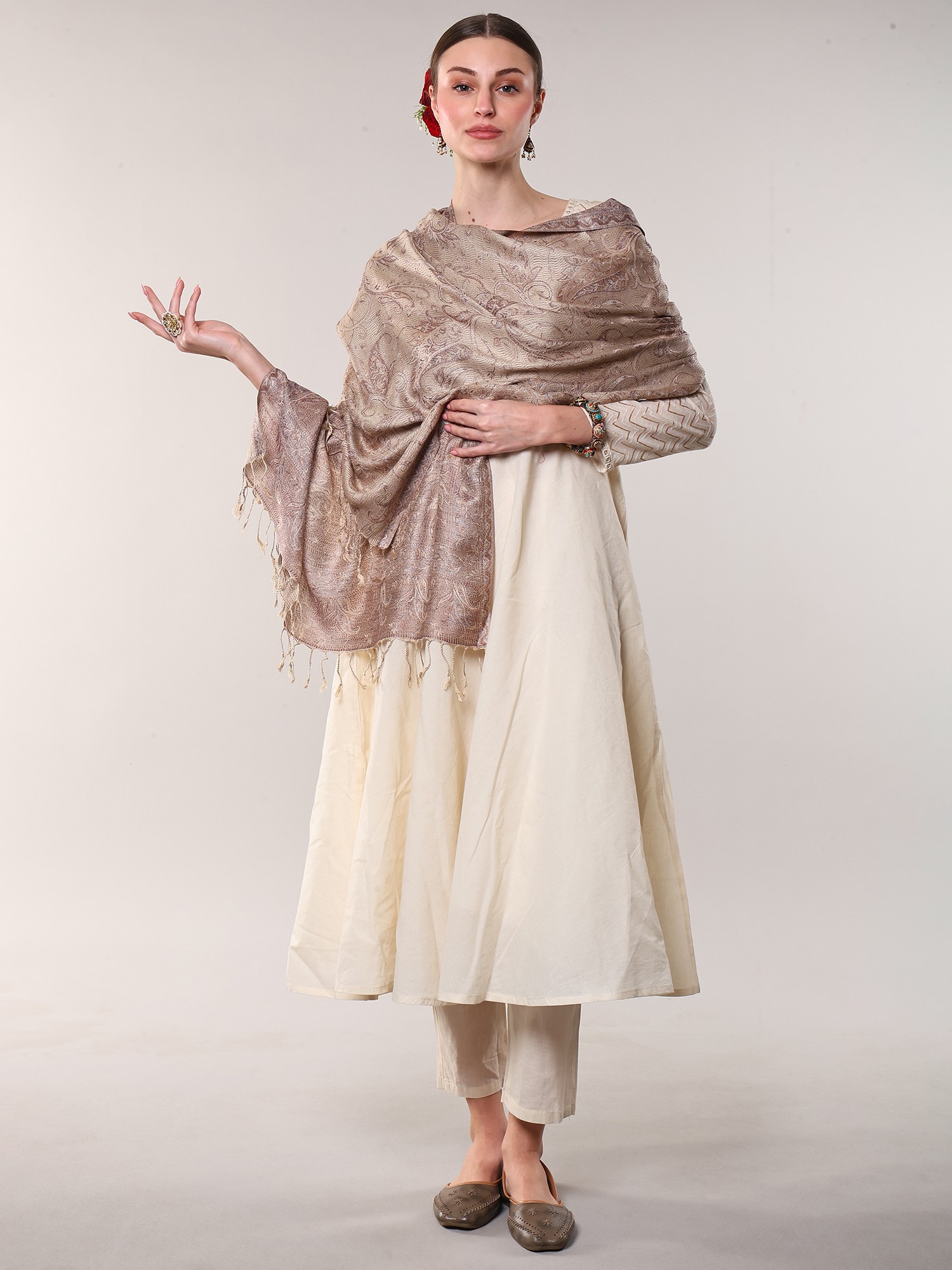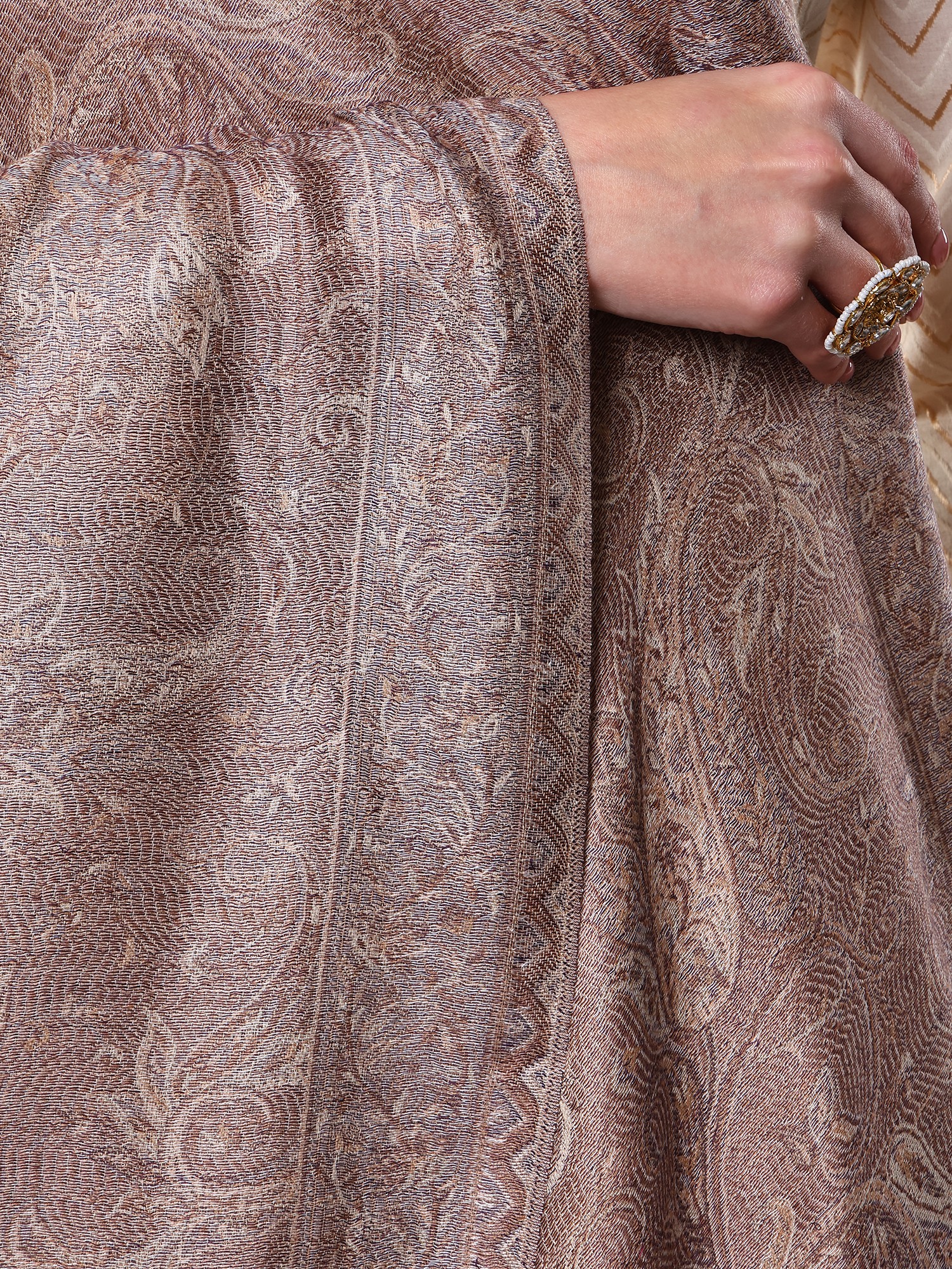 Off-White and Oatmeal Reversible Jacket from Pilkhuwa with Block Printed Flowers