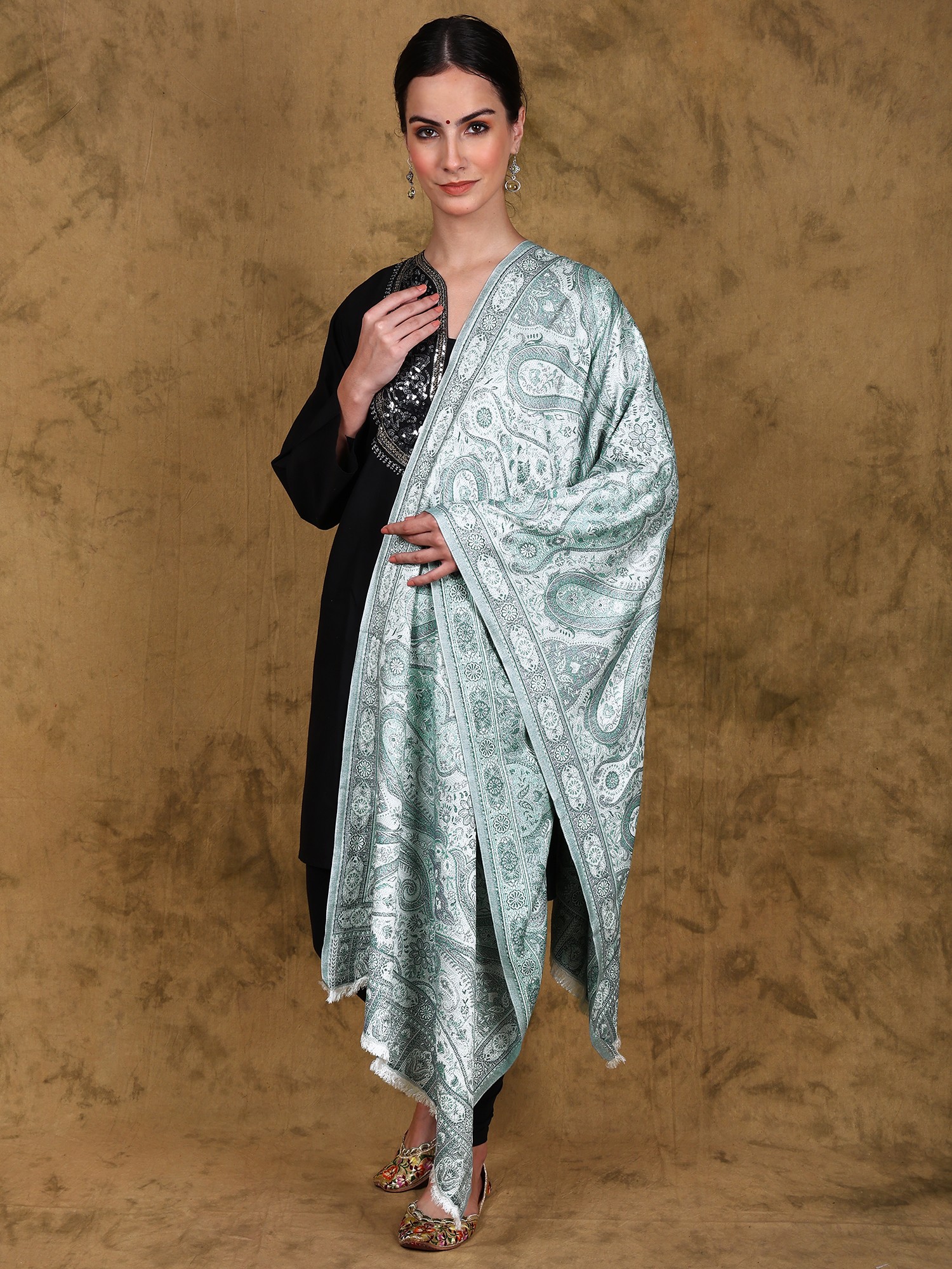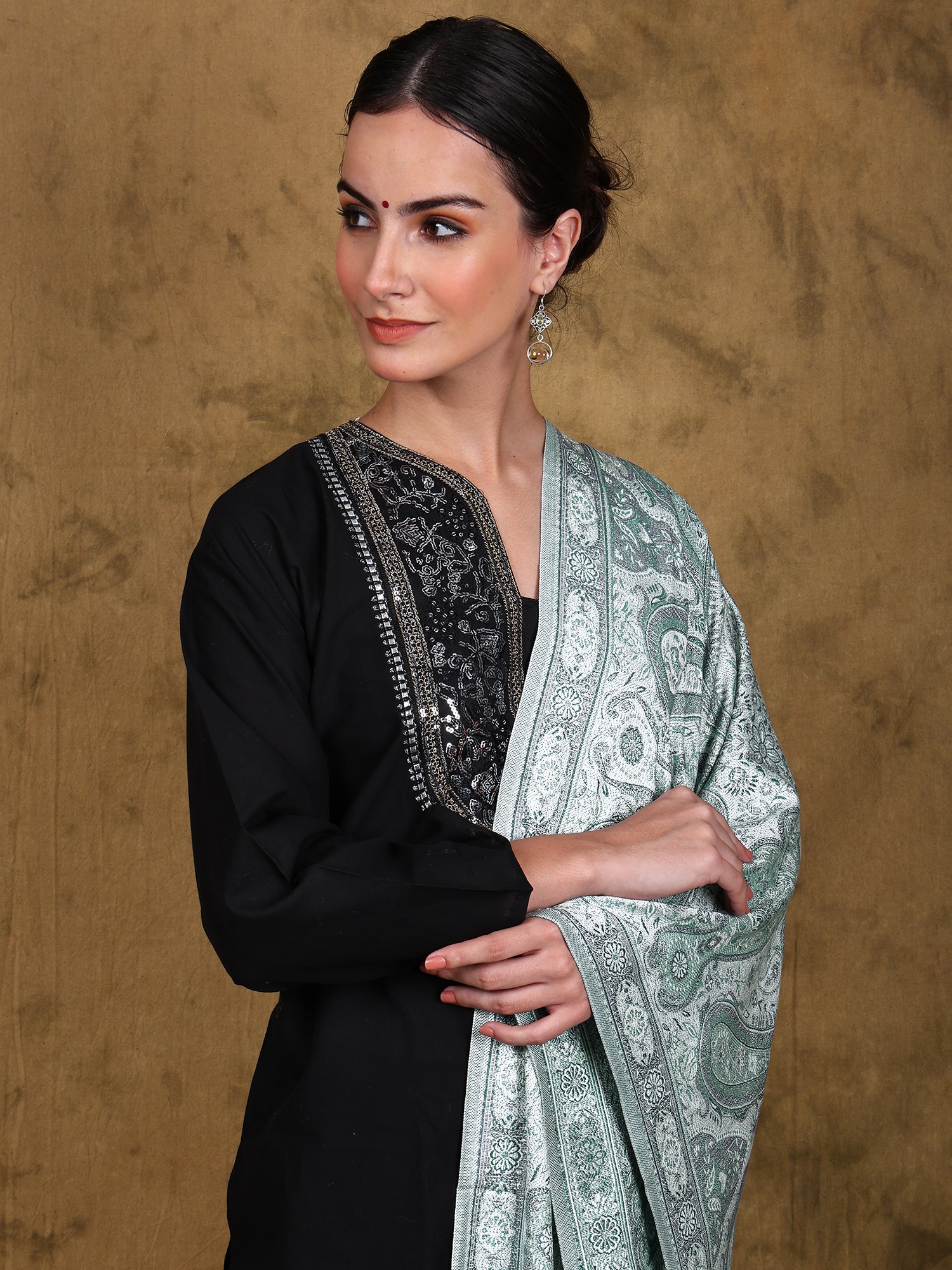 Black-Onyx Kani Jamawar Shawl from Amritsar with Woven Floral Jaal and Paisleys