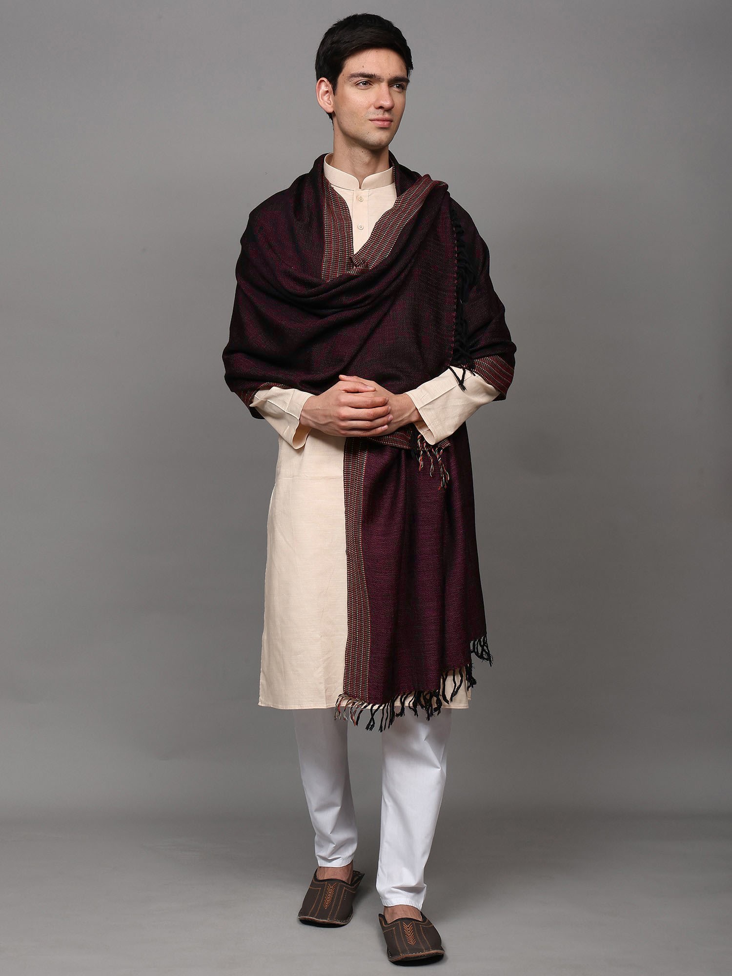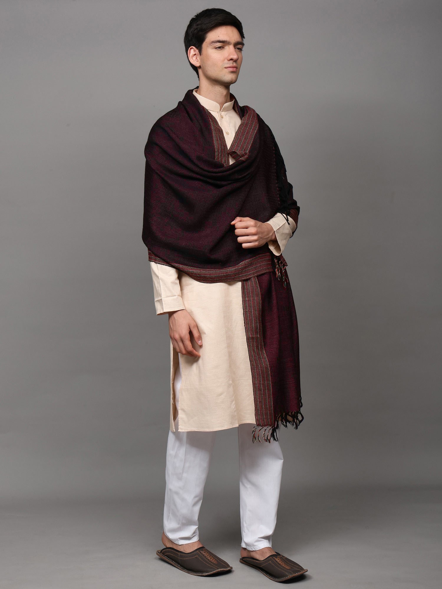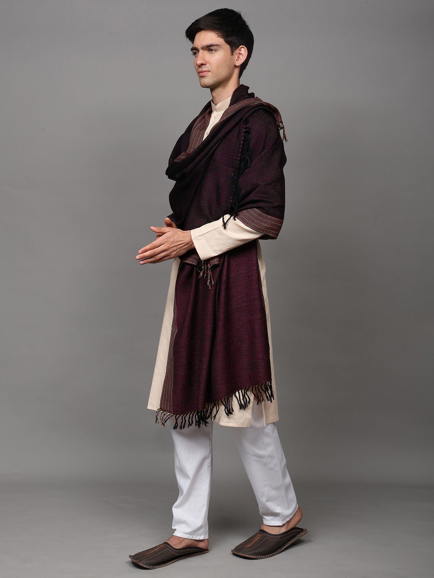Solitary-Star Yak Wool Dushala Shawl (Lohi) for Men from Kullu