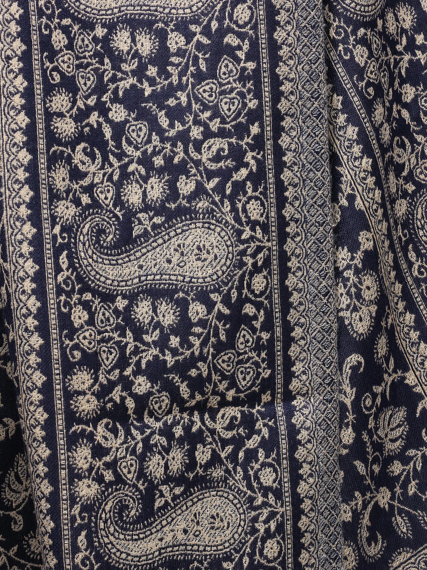 Cuban-Sand Wool Shawl with Intricate Zari Woven Paisley Kani Border