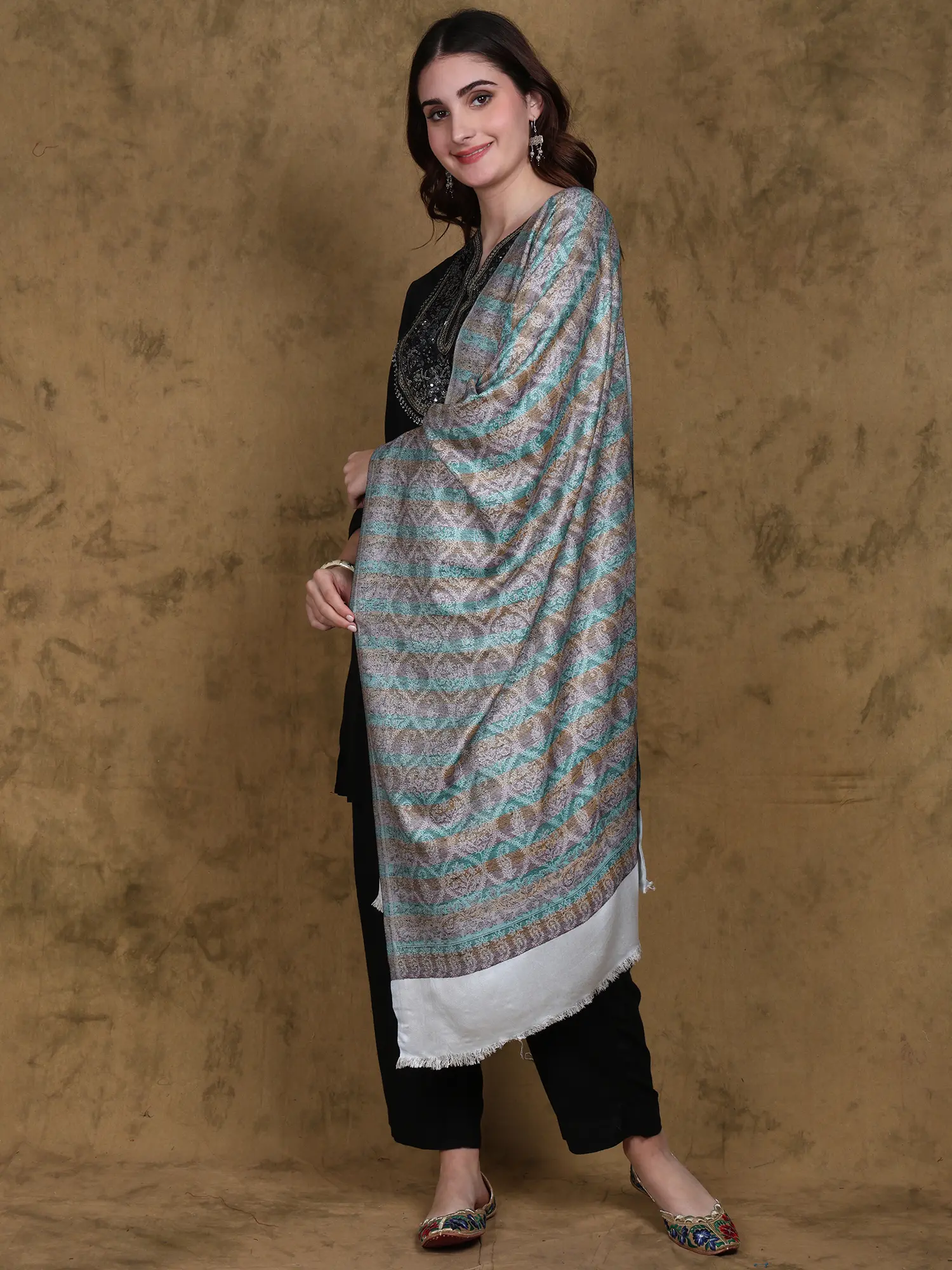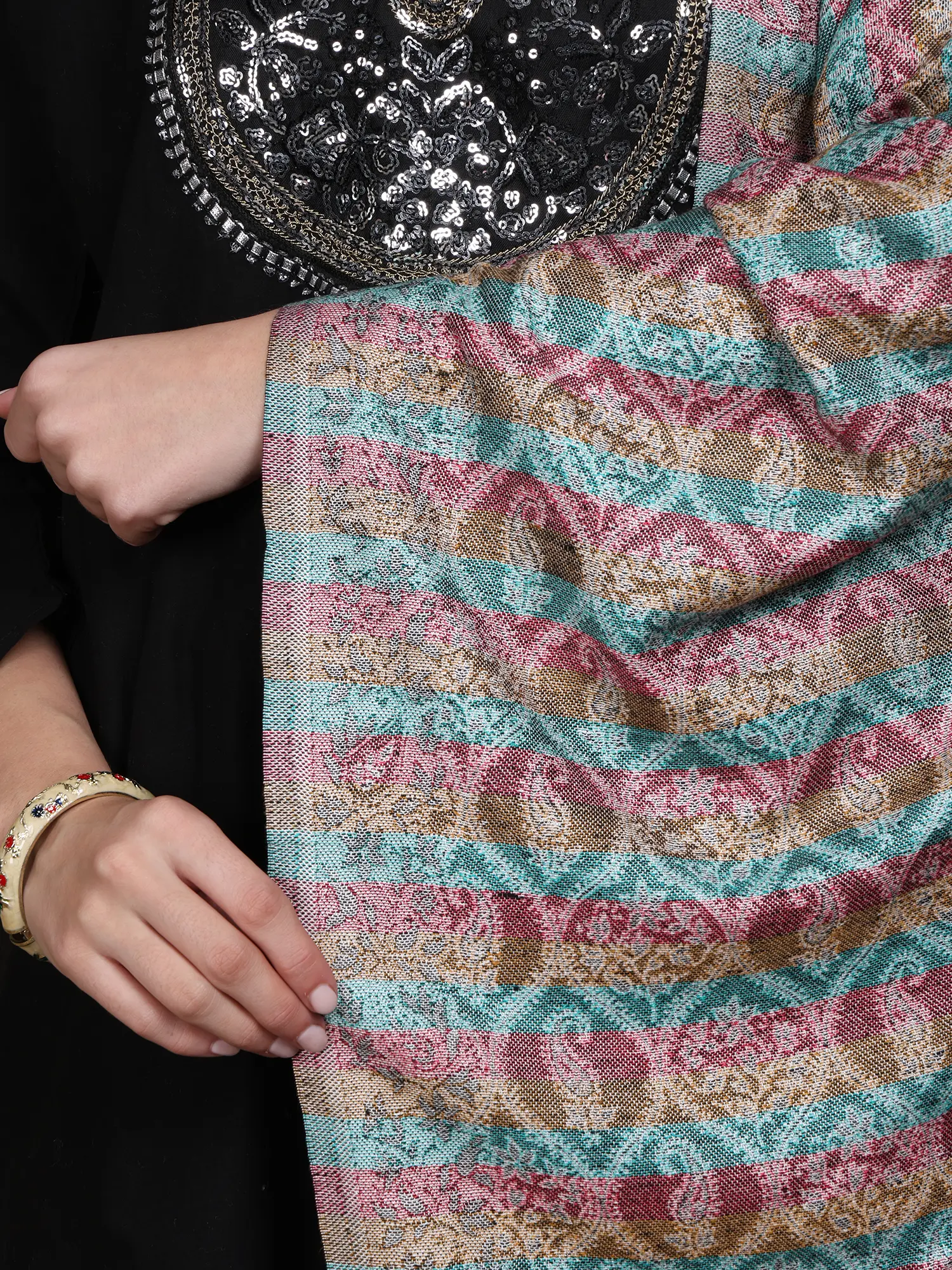 Reversible Jamawar Stole with Woven Paisley Vine from Amritsar