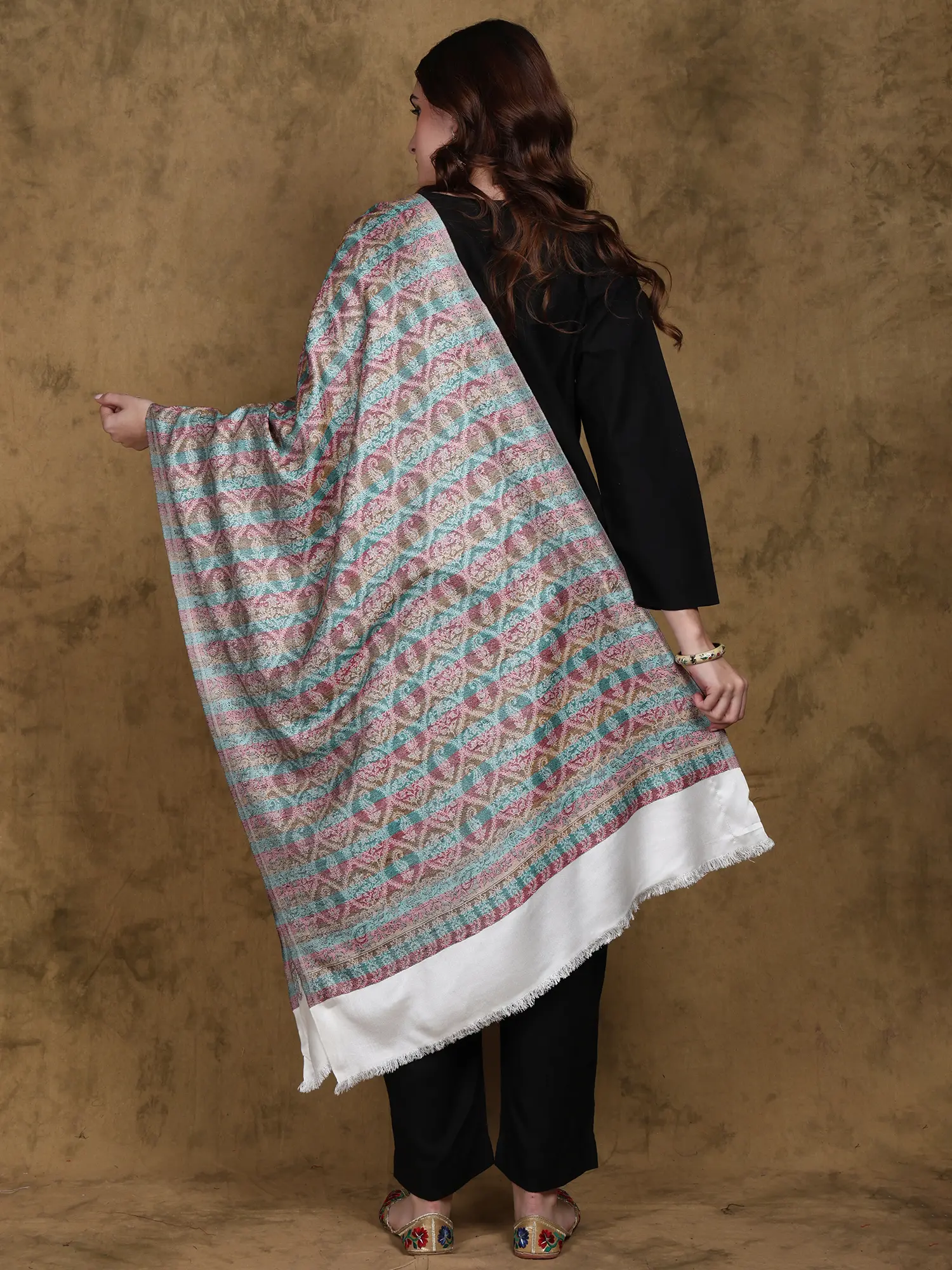 Reversible Kullu Stole with Chevron Weave and Multi Stripe Border