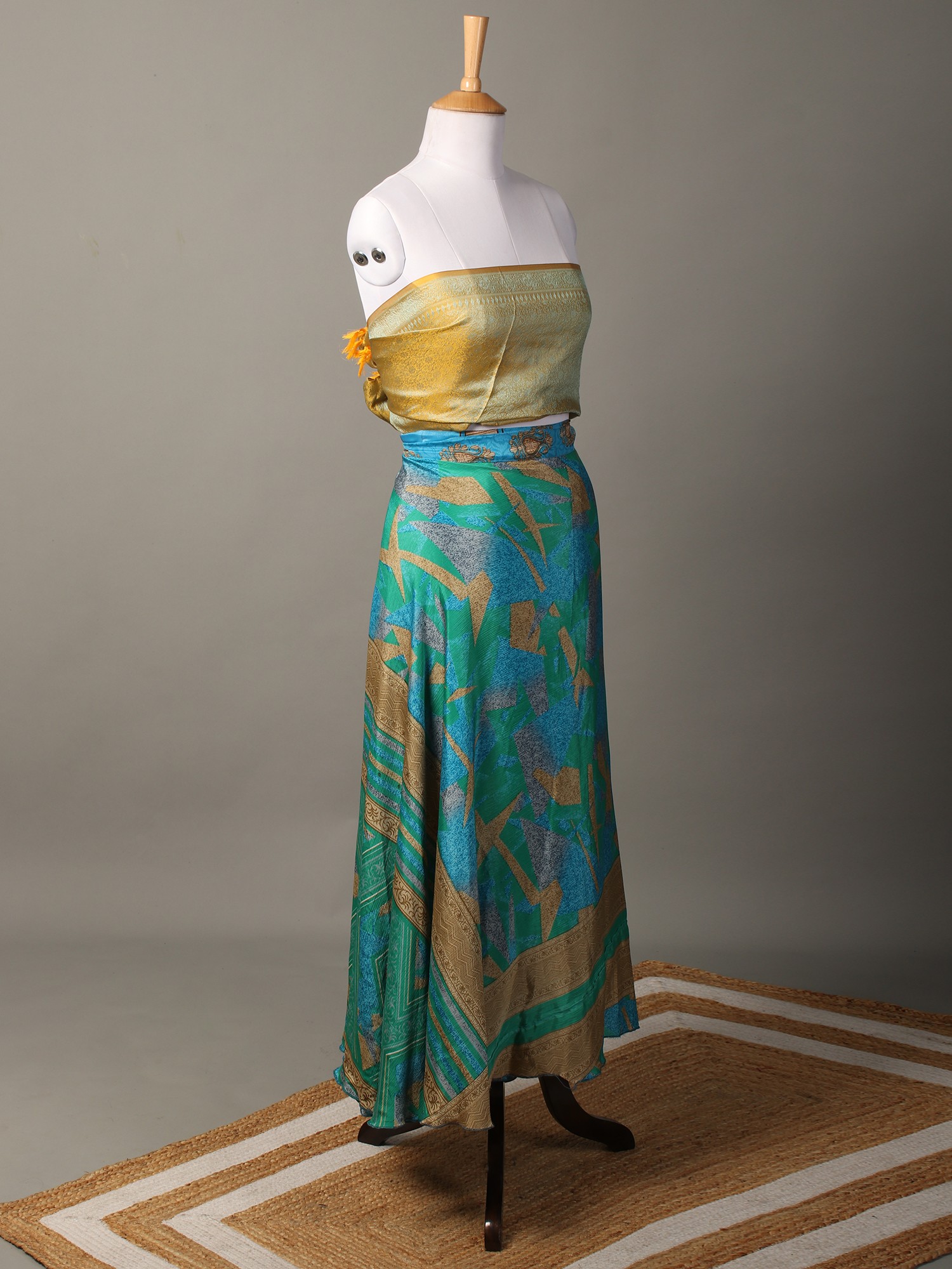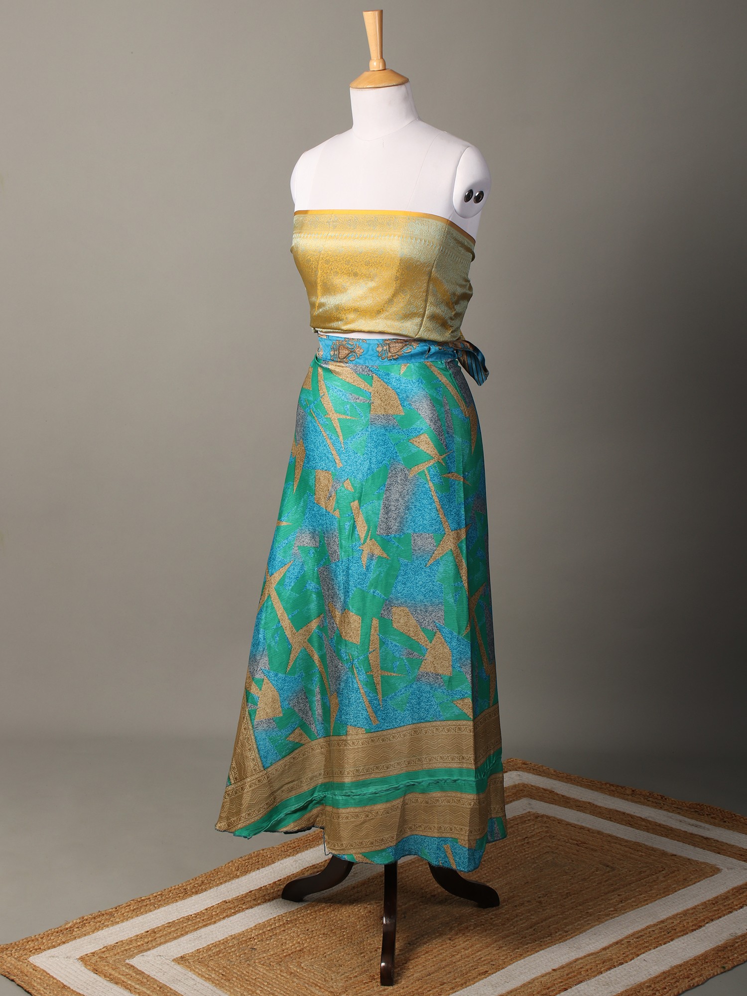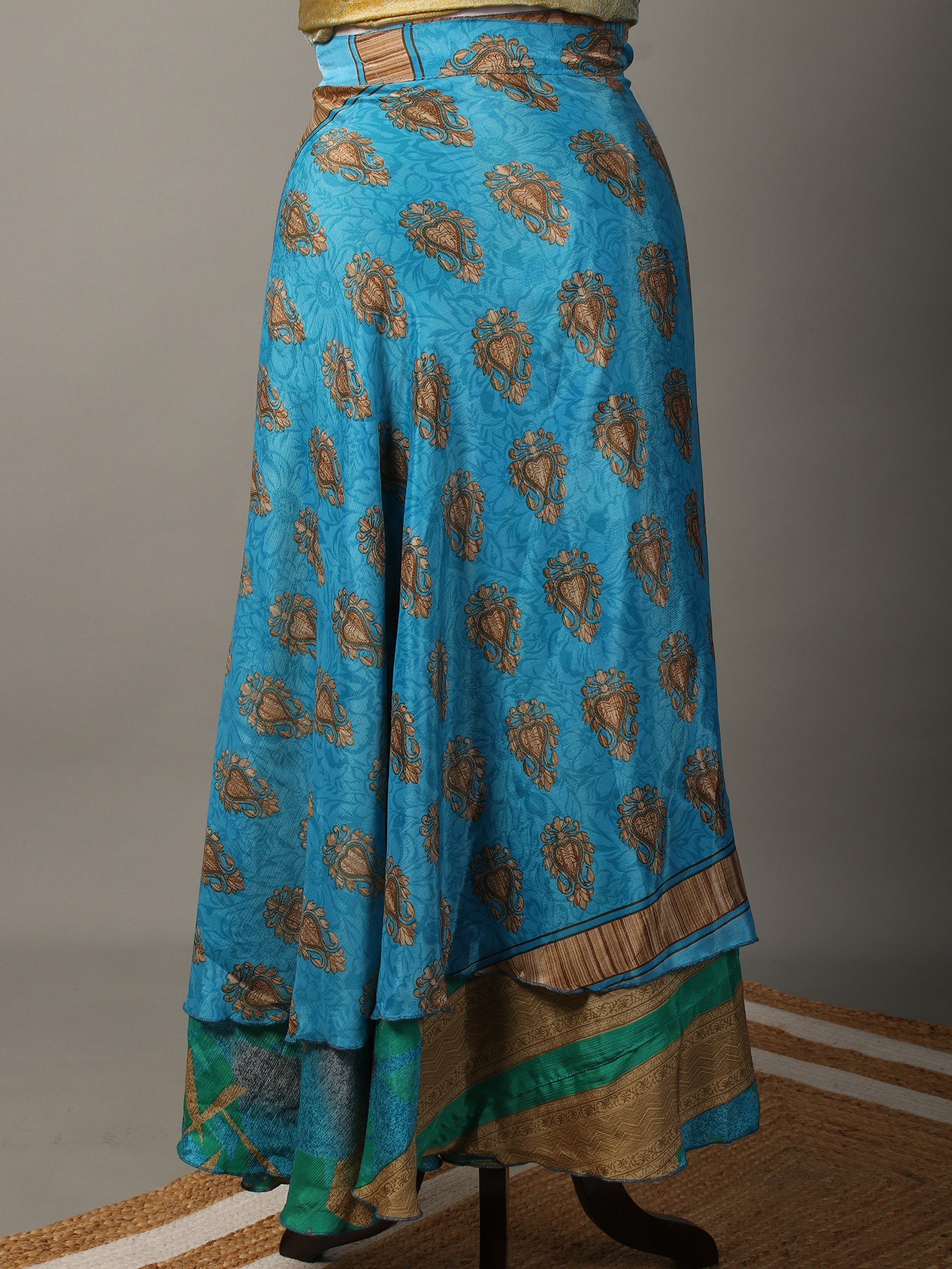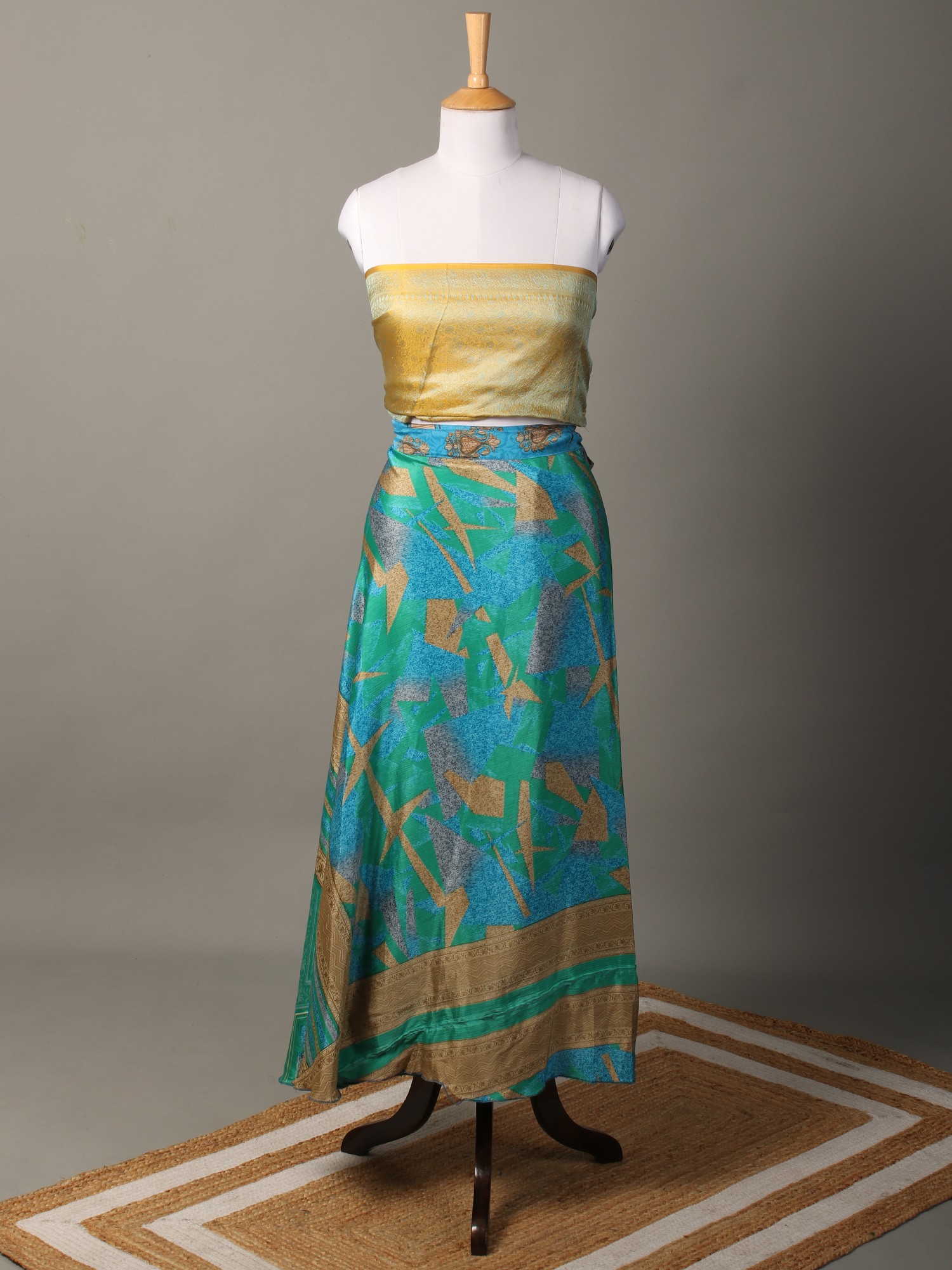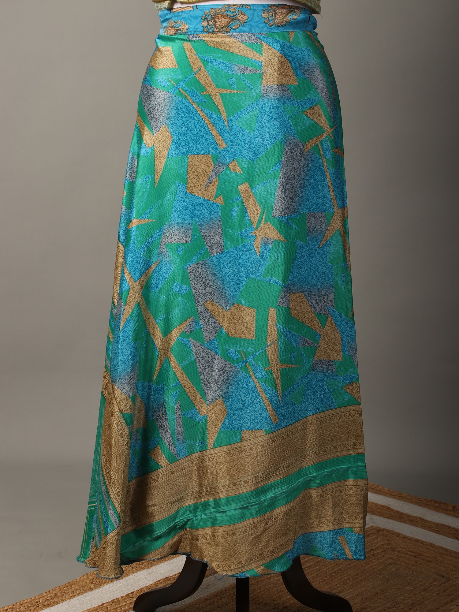 with this reversible wrap-around printed skirt. Made with a delicate silk