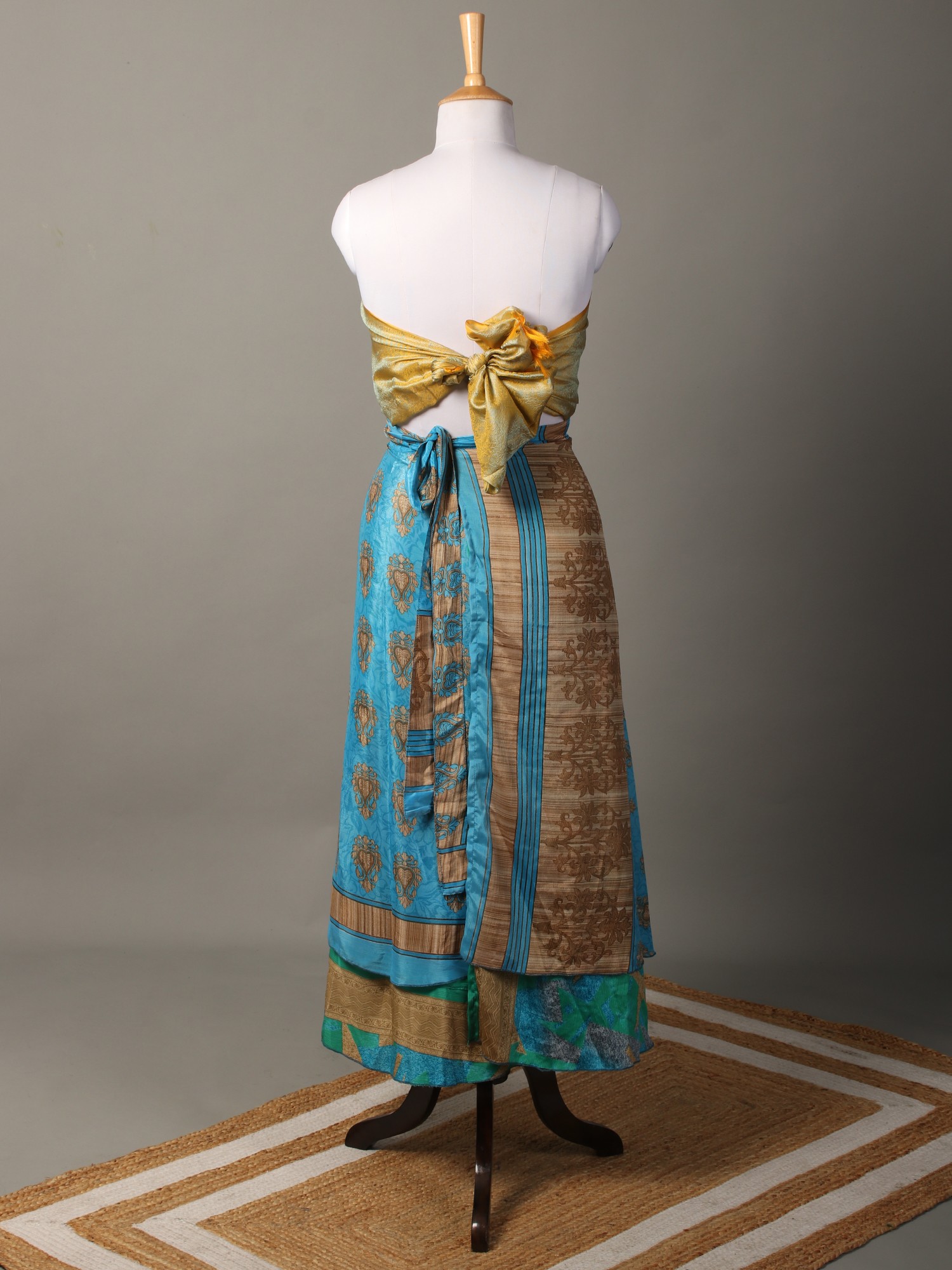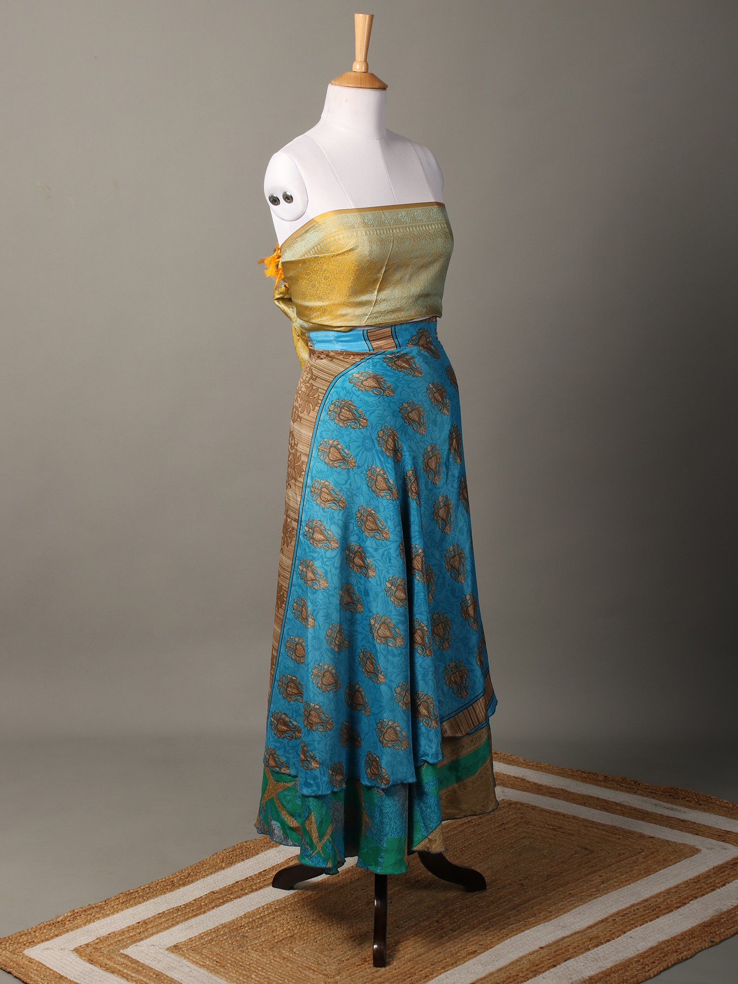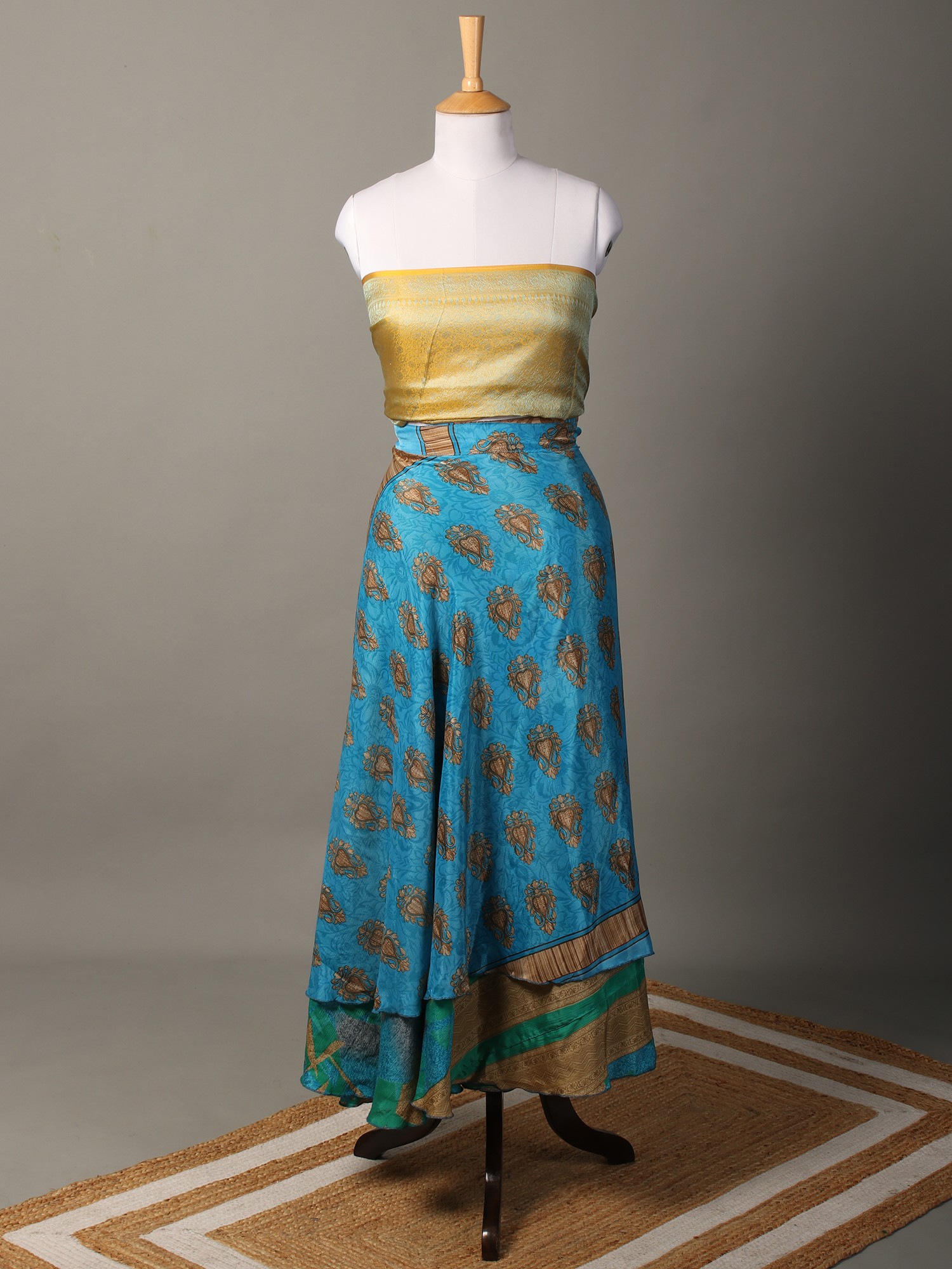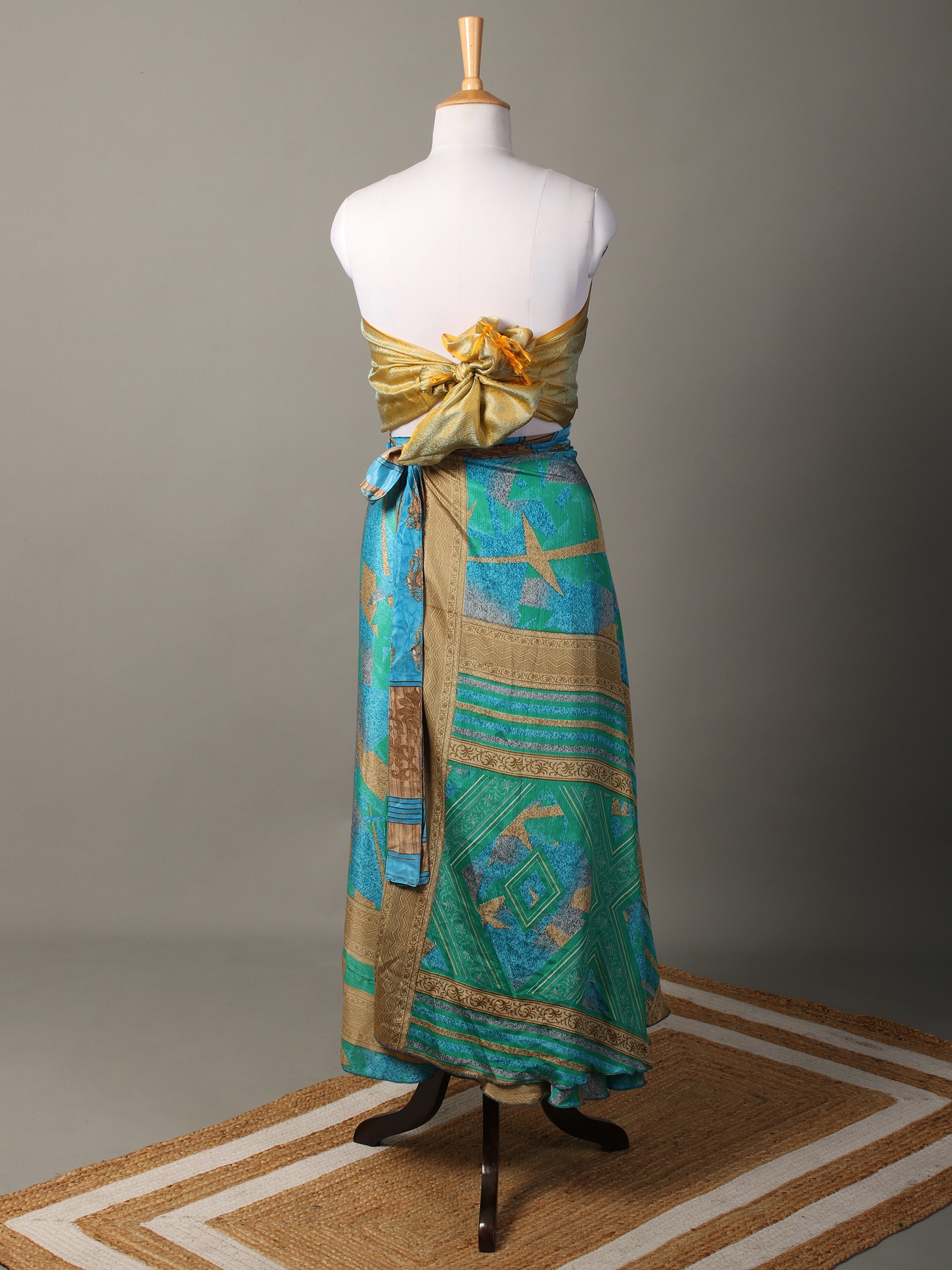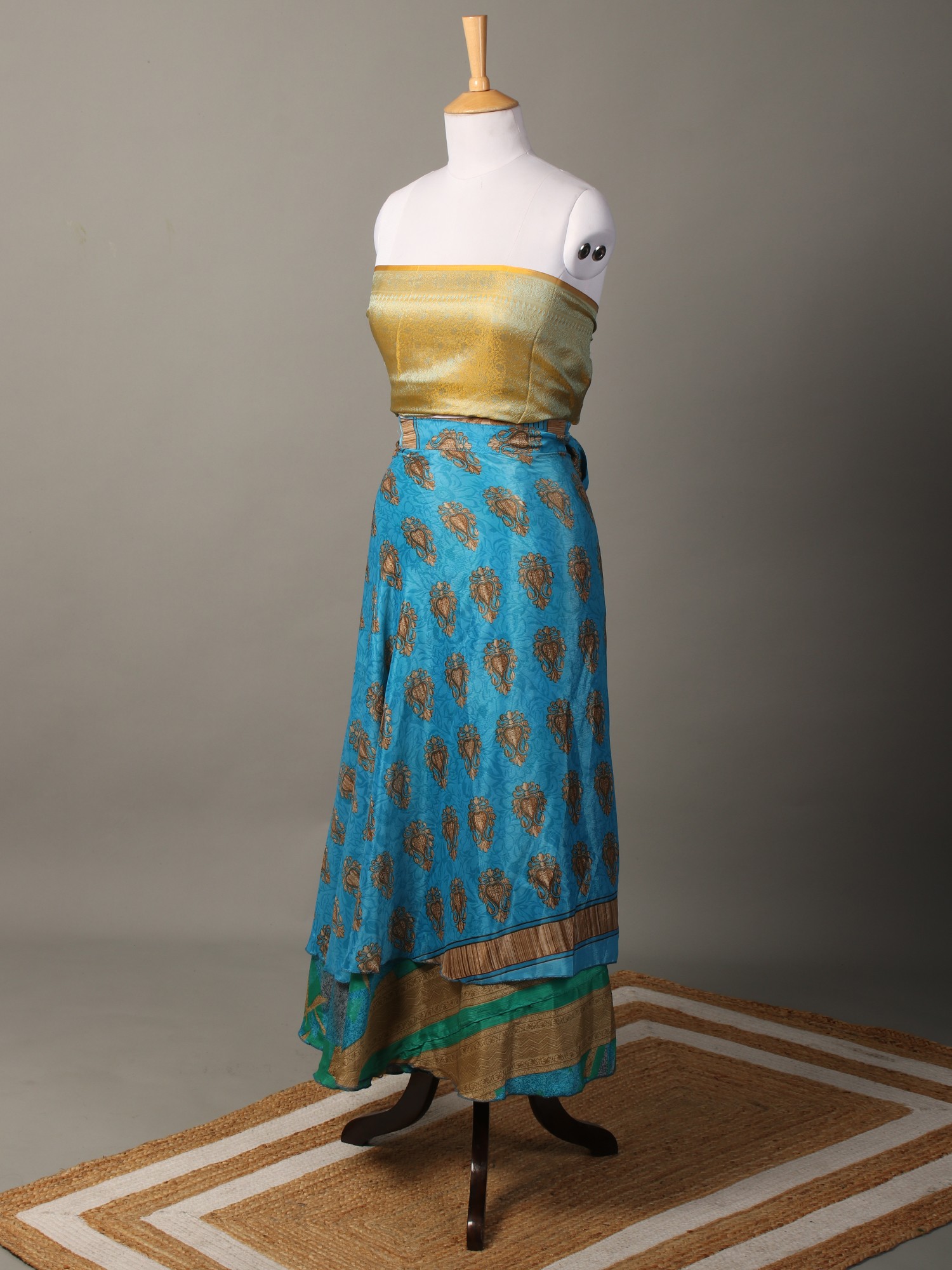 with this reversible wrap-around printed skirt. Made with a delicate silk