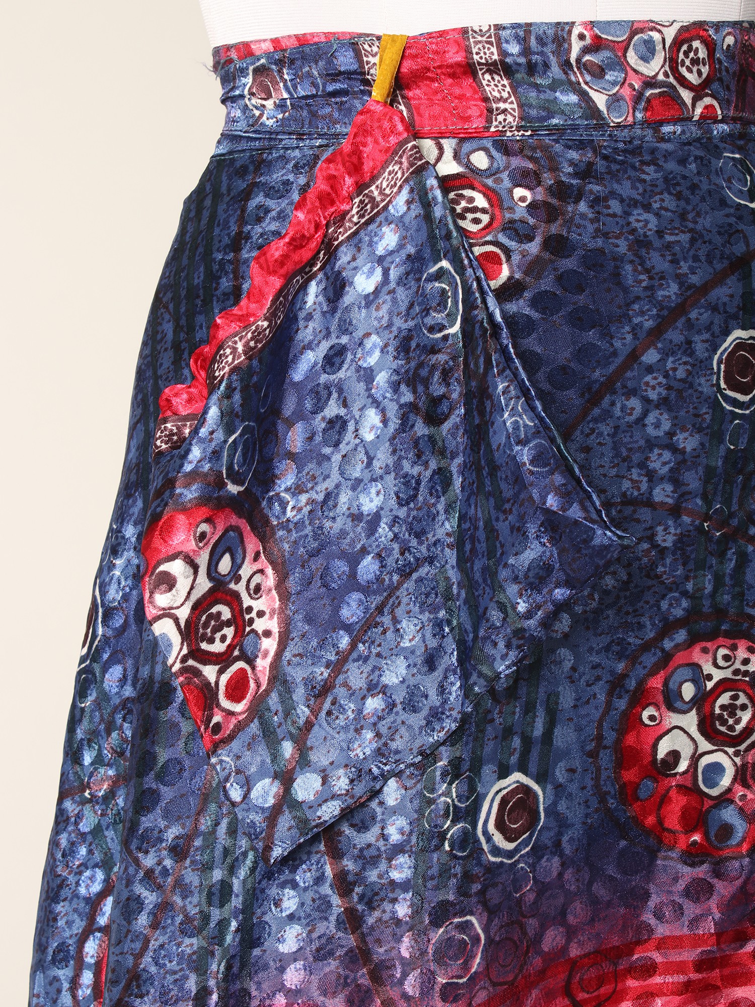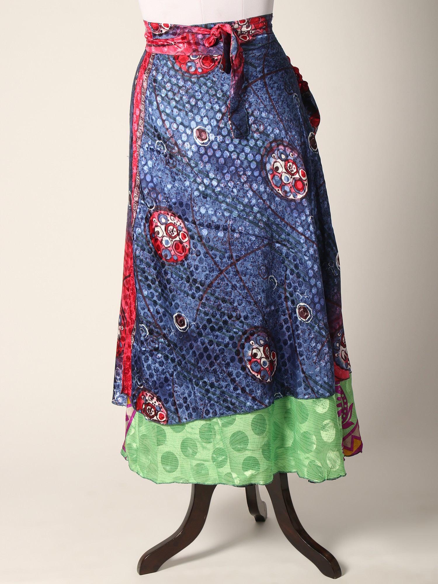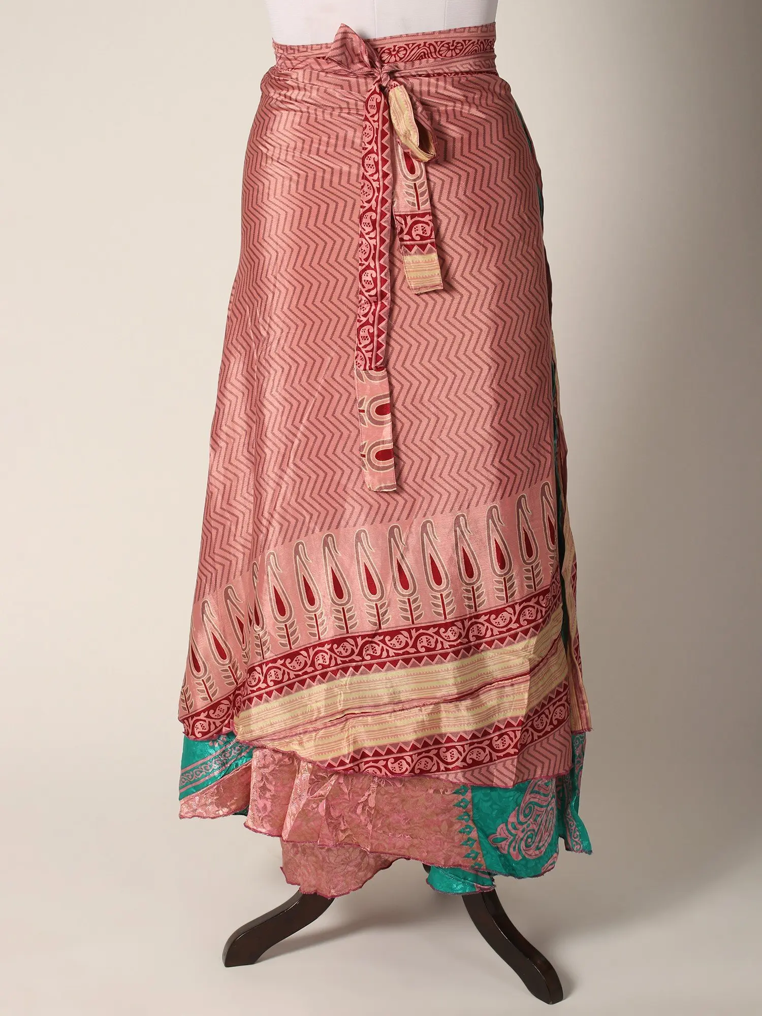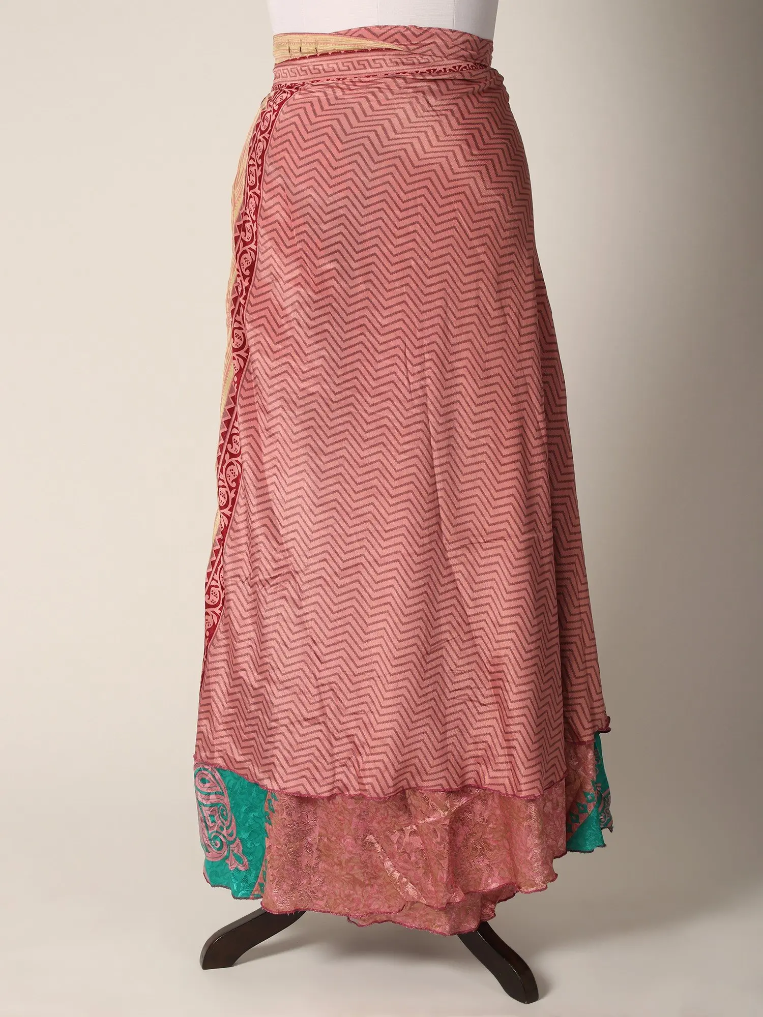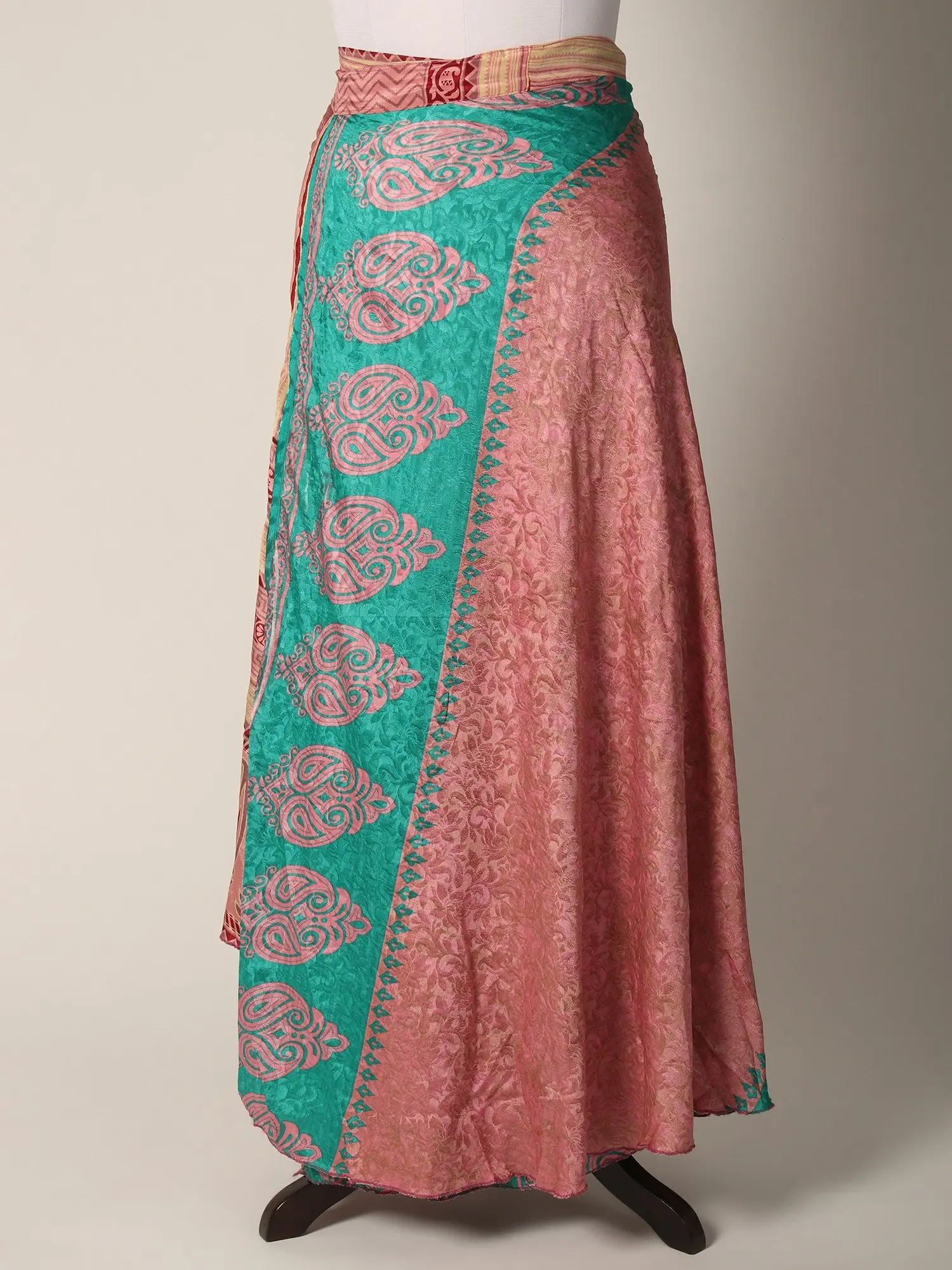 This Reversible Wrap Around Silk Printed Skirt seamlessly combines fashion and comfort in a delightful ensemble. The skirt carries the luxury of silk and offers a sumptuous feel against the skin while showcasing vibrant prints on both sides, allowing versatile styling. The wrap-around design ensures a customized fit, enhancing comfort and ease of movement.