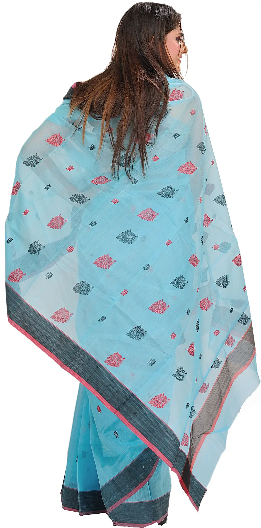 Elevate your elegance with our River-Blue Handloom Chanderi Saree adorned with enchanting woven bootis. The serene blue hue not only exudes charm but also offers a cool and comforting allure. Crafted from the finest cotton silk, its touch is as luxurious as its appearance. The classic butis and butas on the fabric add a timeless touch, making it suitable for both formal and informal occasions. Draped in this masterpiece, you'll effortlessly embody grace and poise, capturing attention with every step. Experience the seamless blend of style and comfort as you make a statement that's both sophisticated and inviting.