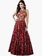 Chinese-Red Two-Piece Gown from Kashmir with Aari-Embroidered Paisleys