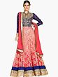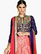 Bright-Pink and Blue Wedding Anarkali Suit with Embroidered Bolero Jacket and Wide Patch Border