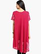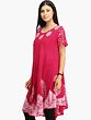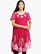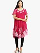 Rose-Red Batik Dyed Dress with Threadwork and Printed Paisleys on Border