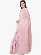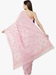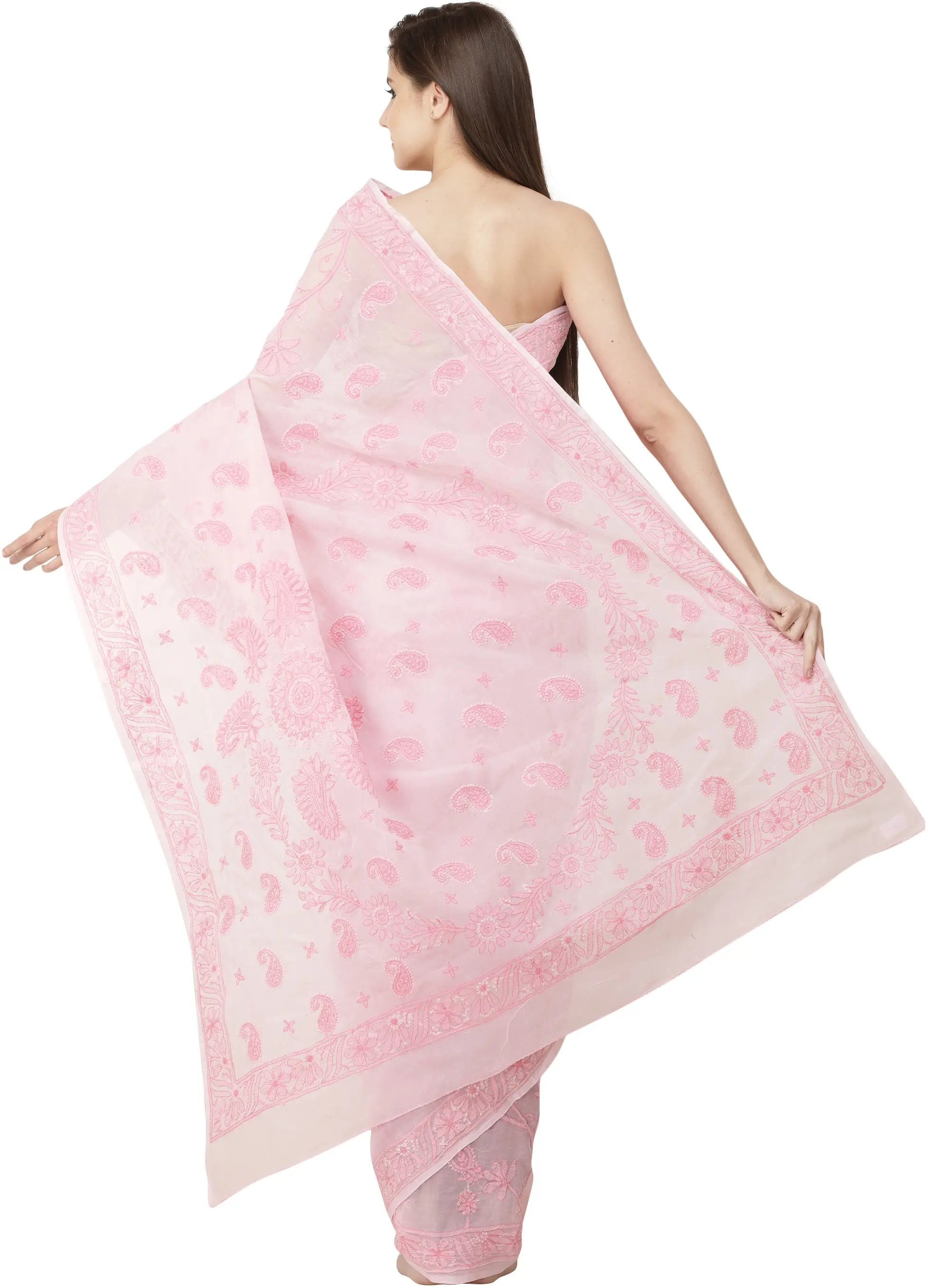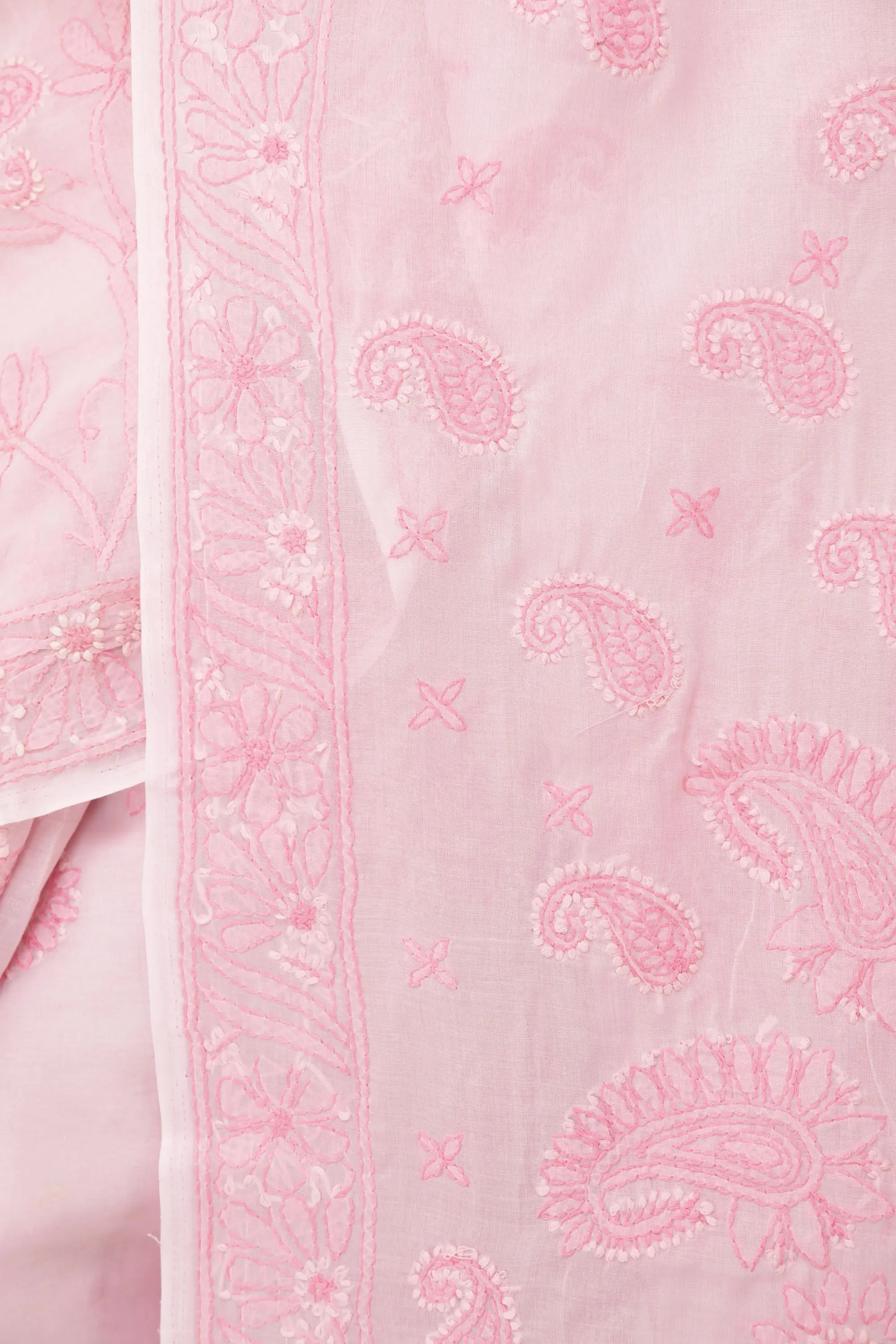 White Fabric with Fabric with Lucknowi Chikan Embroidery in Salmon Thread