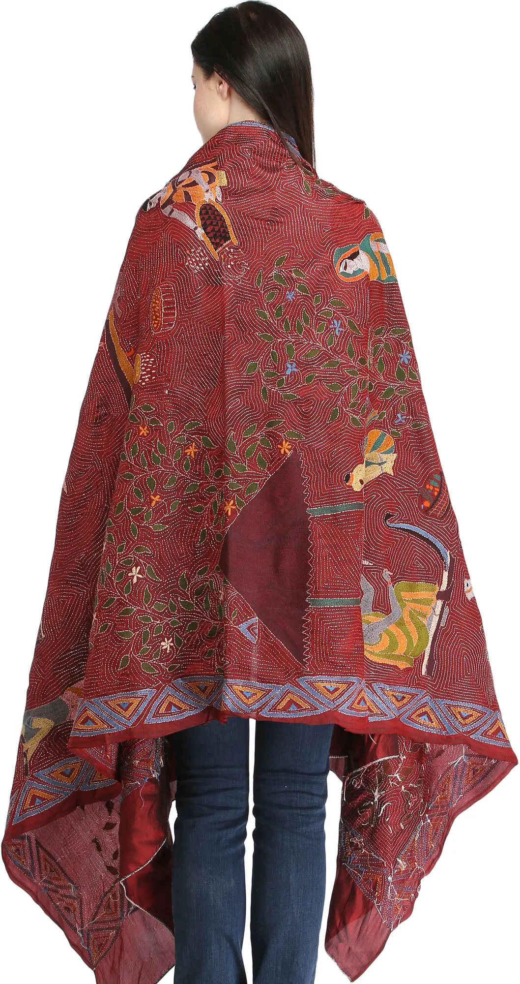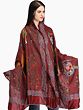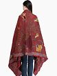 Rosewood Kantha Dupatta from Kolkata with Hand-Embroidered Folk Motifs