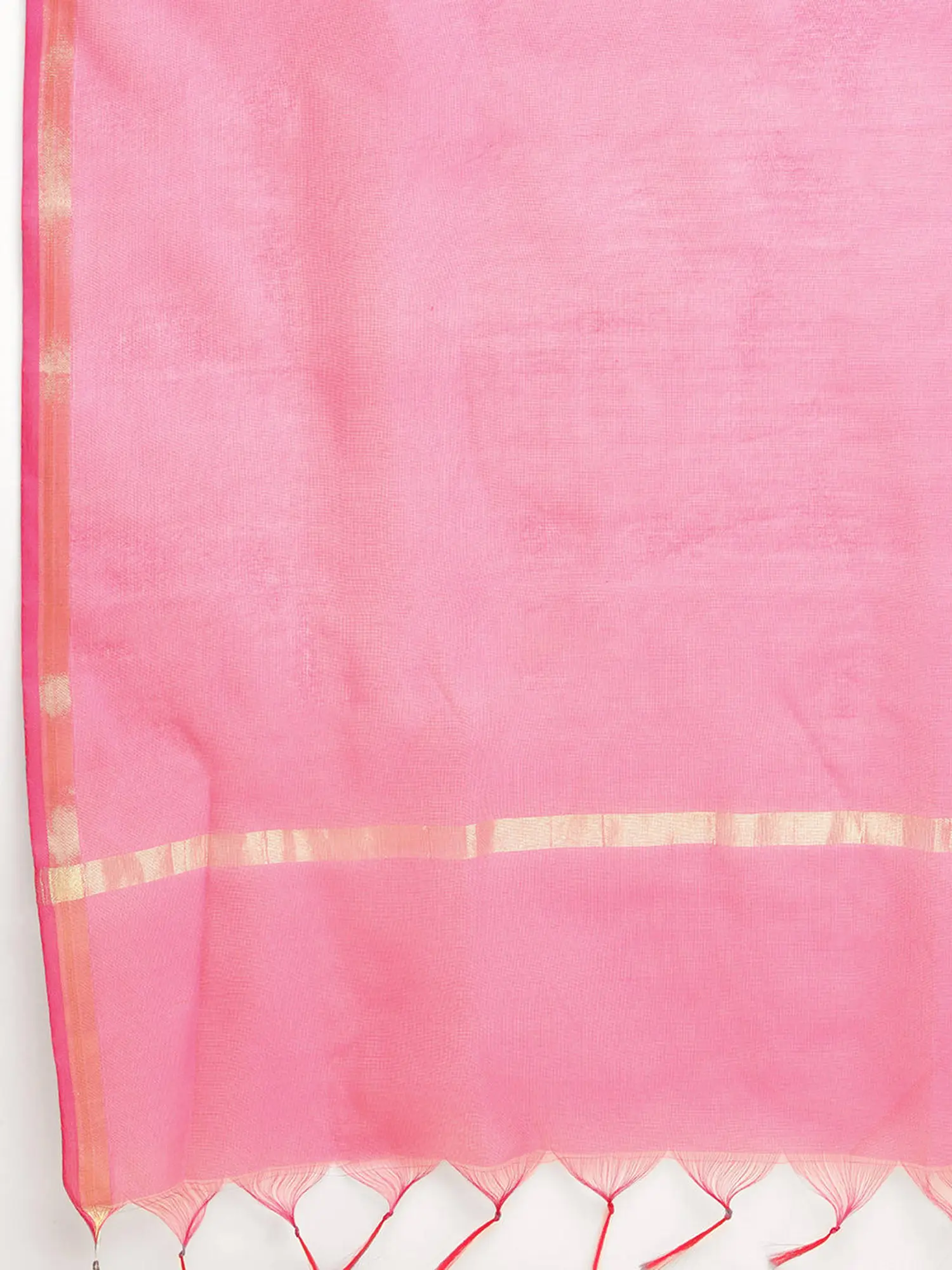 Includes a Chanderi dupatta with subtle gold accents and a fringed hem.