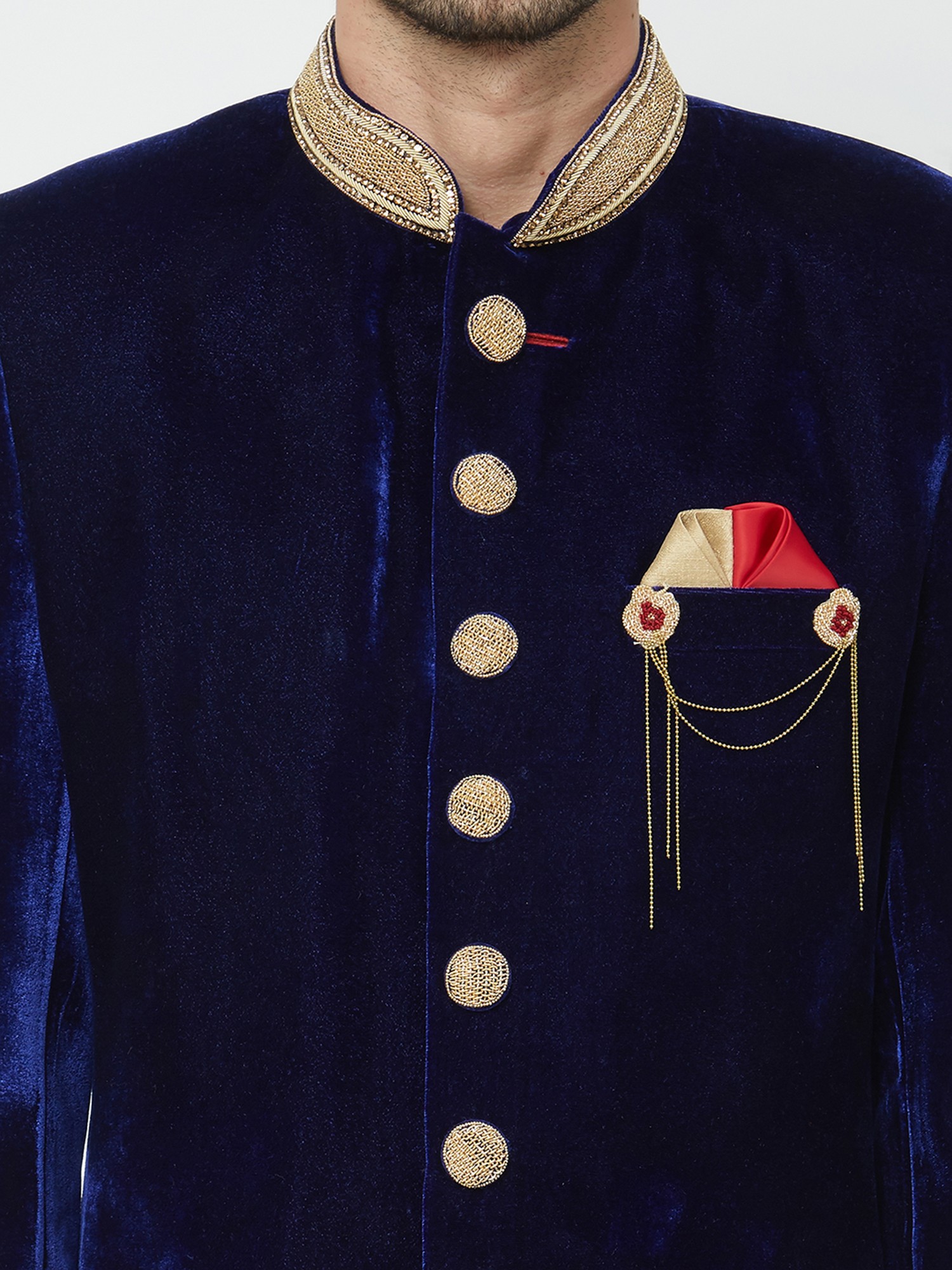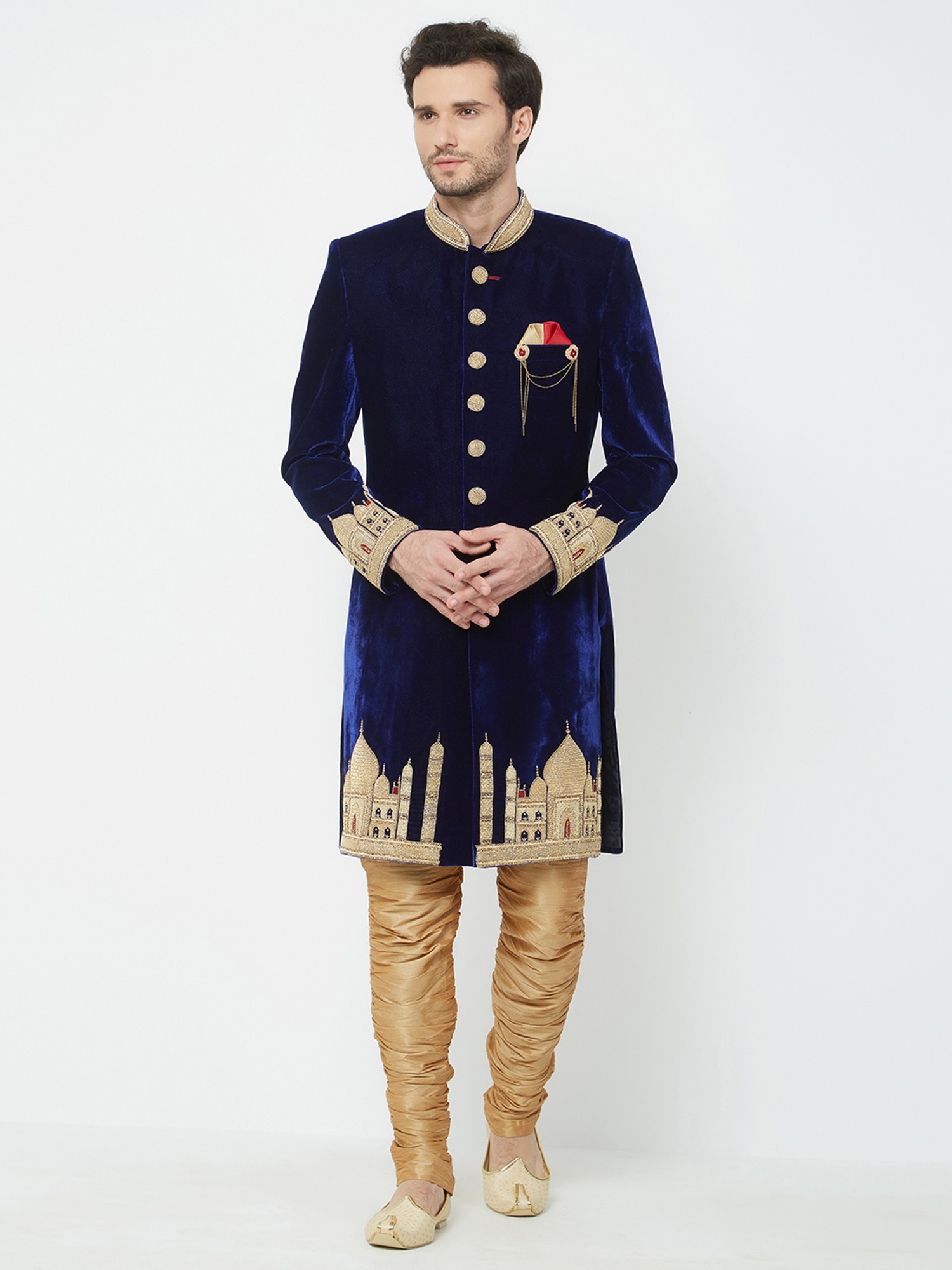 Men's Brocade Sherwani with Churidar Pajama - Handwork Designer Wedding Wear
