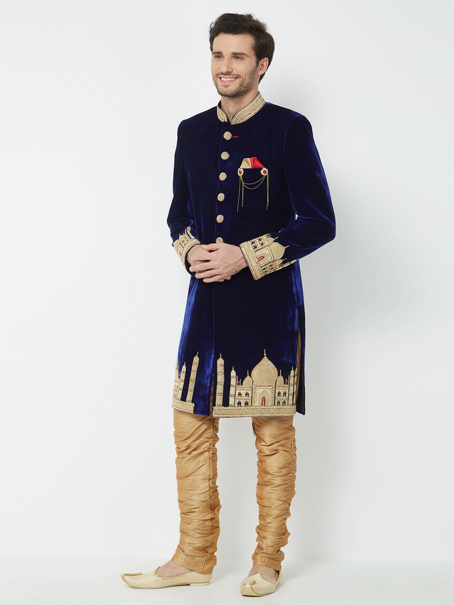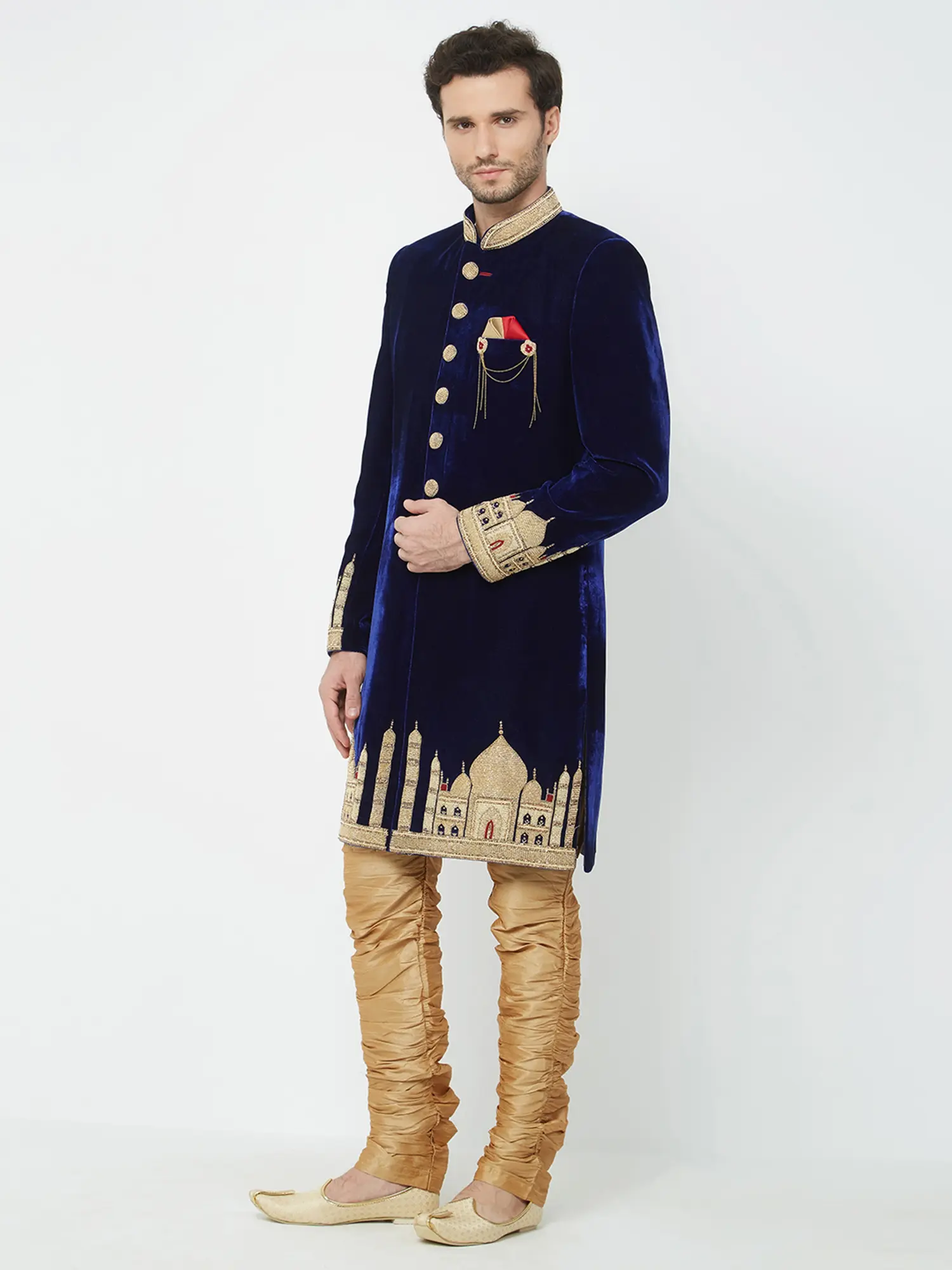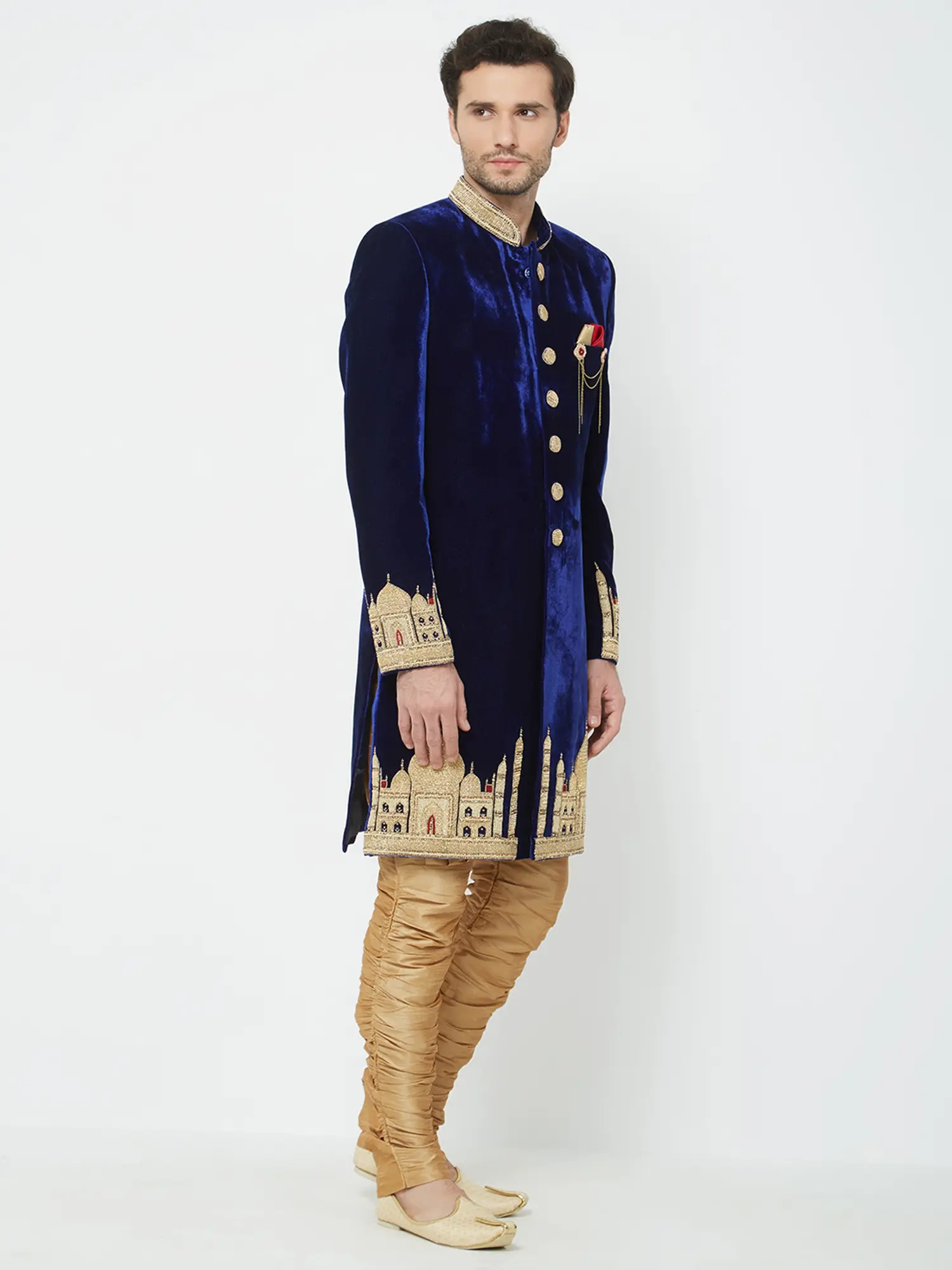 Traditional Groom Outfit: Navabi Sherwani Set with Churidar for Weddings & Receptions
