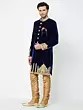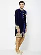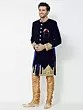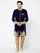 Navy Blue Art Silk Sherwani with Intricate Gold Embroidery for Groom Reception