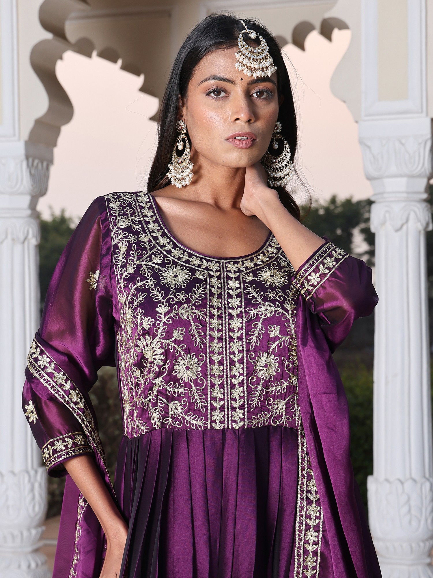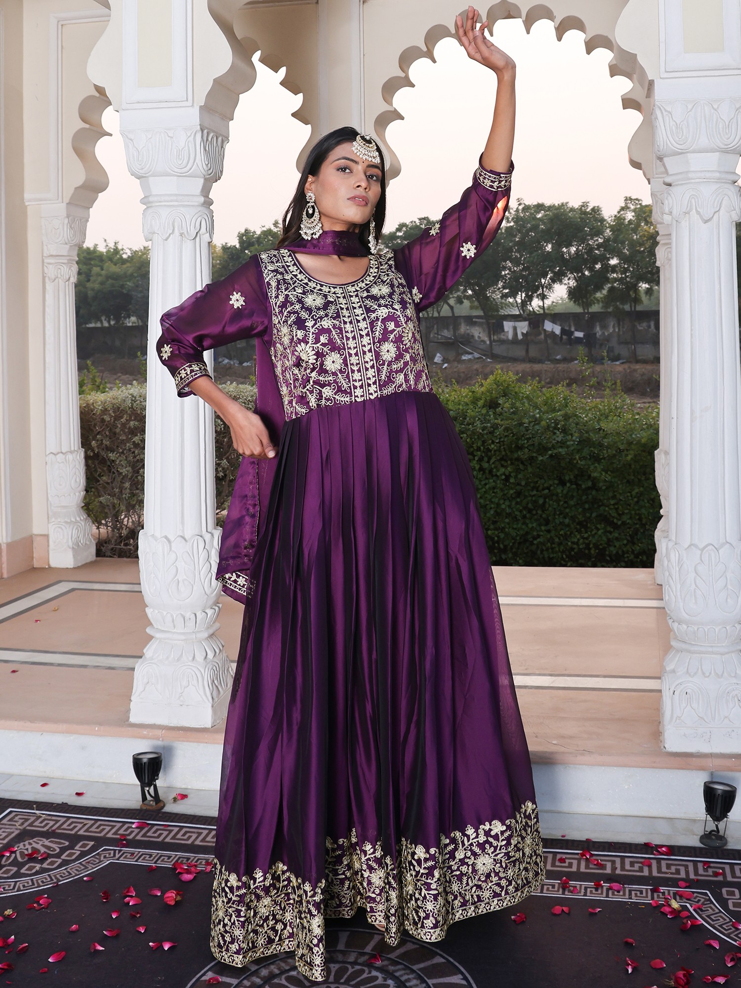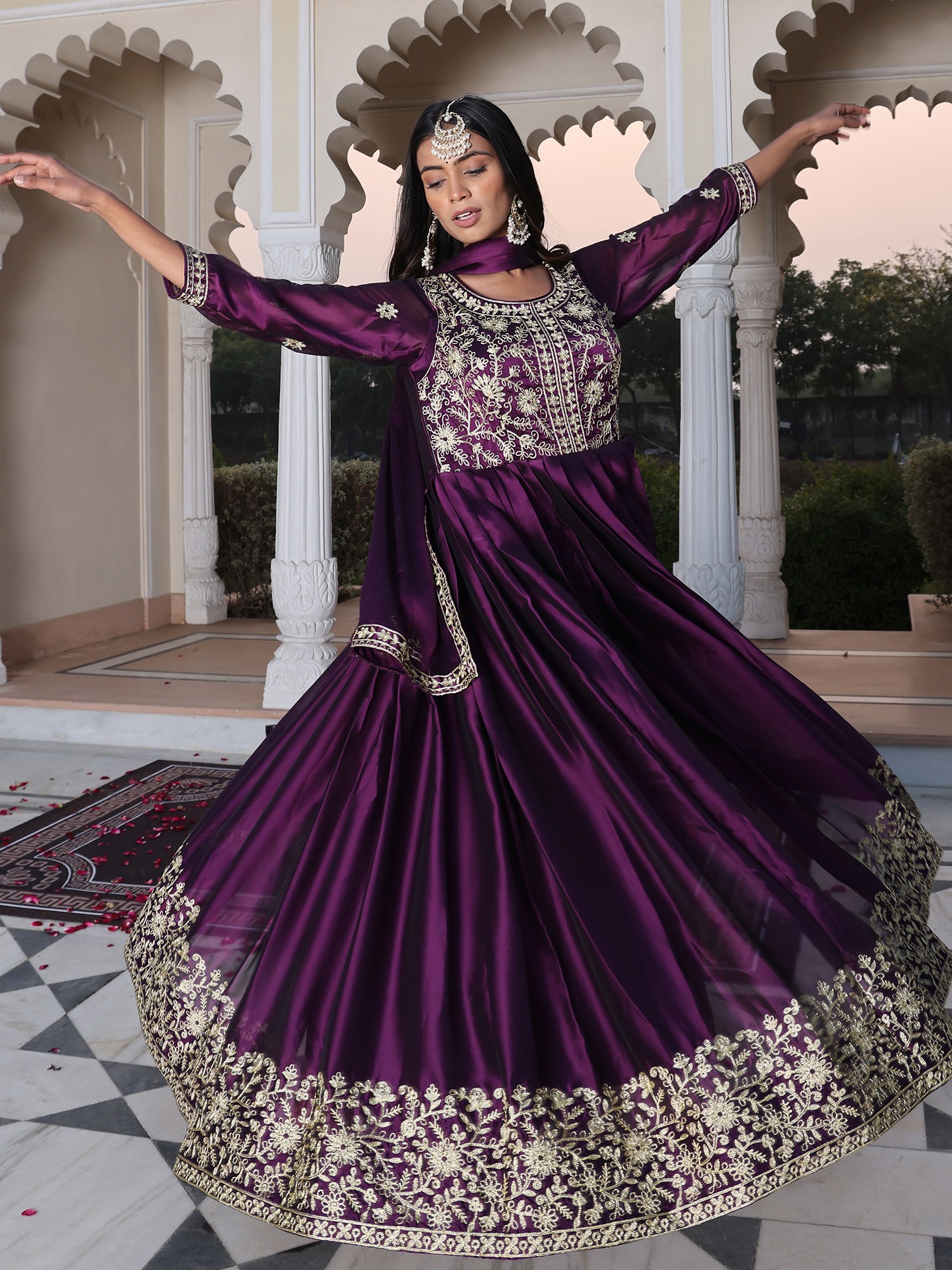 Royal Rangoli Silk Anarkali Suit With Dupatta And Crepe Bottom Highlighted By Luxurious Ribbon Work Embroidery