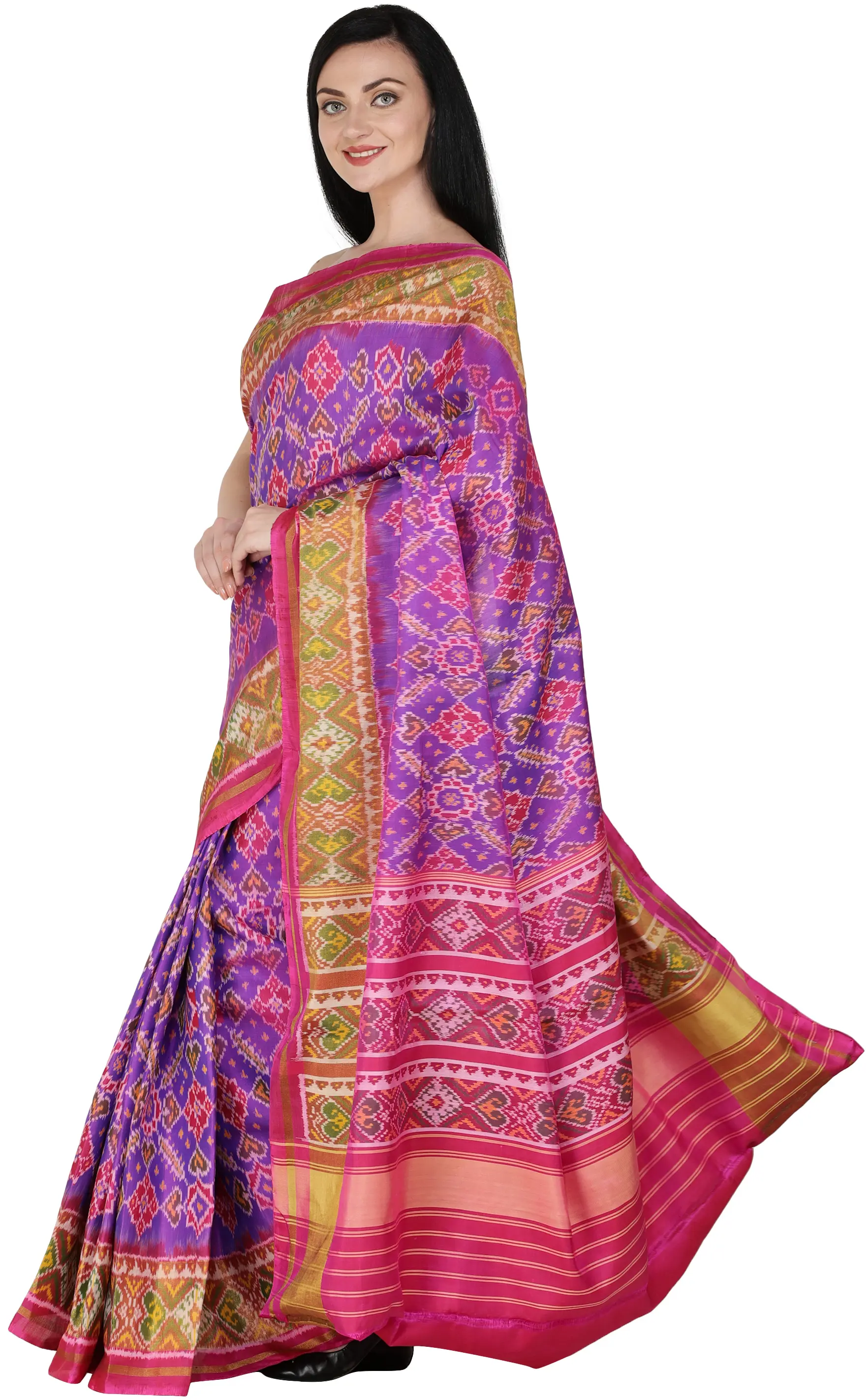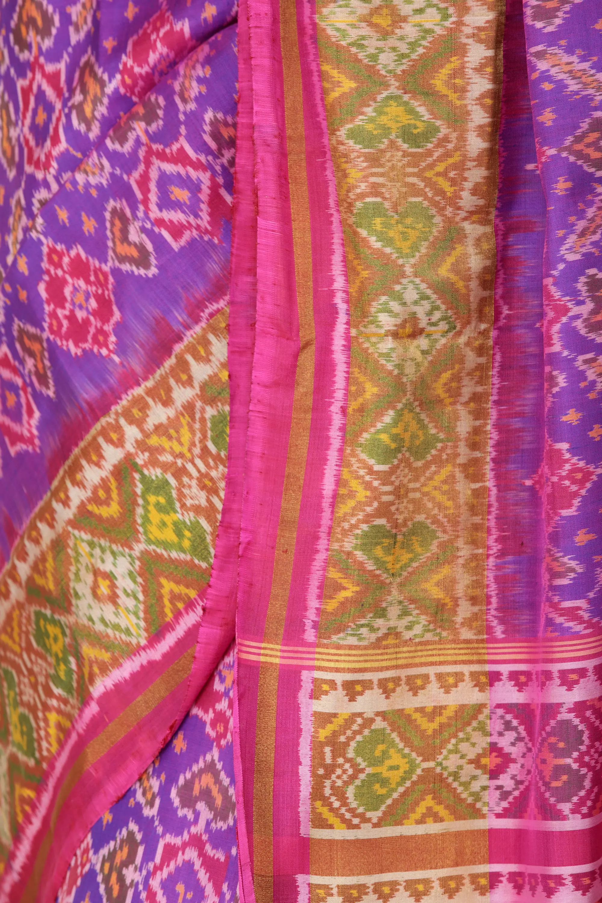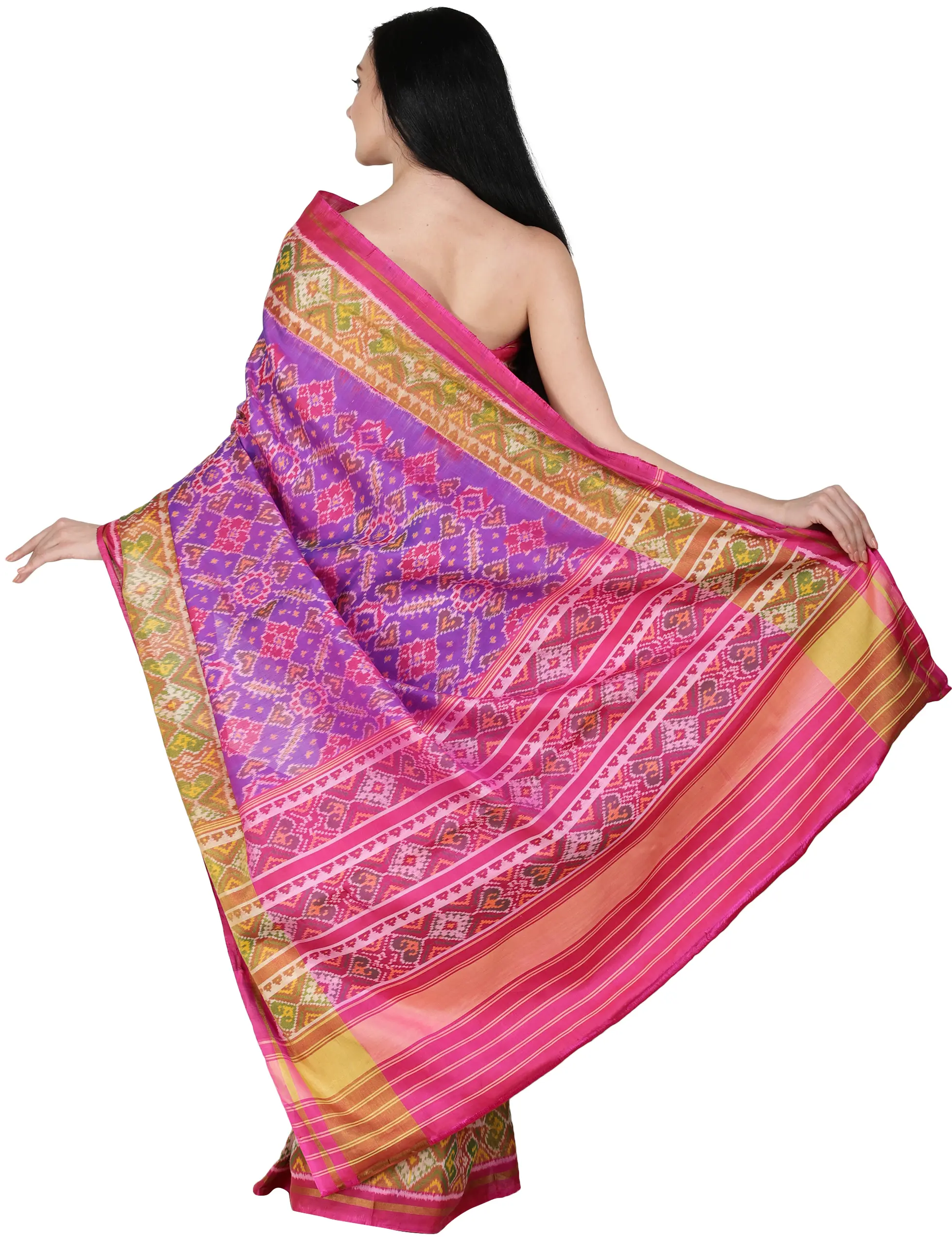 Phlox-Pink Pure Cotton Ikat Woven Saree with Contrast Temple Border
