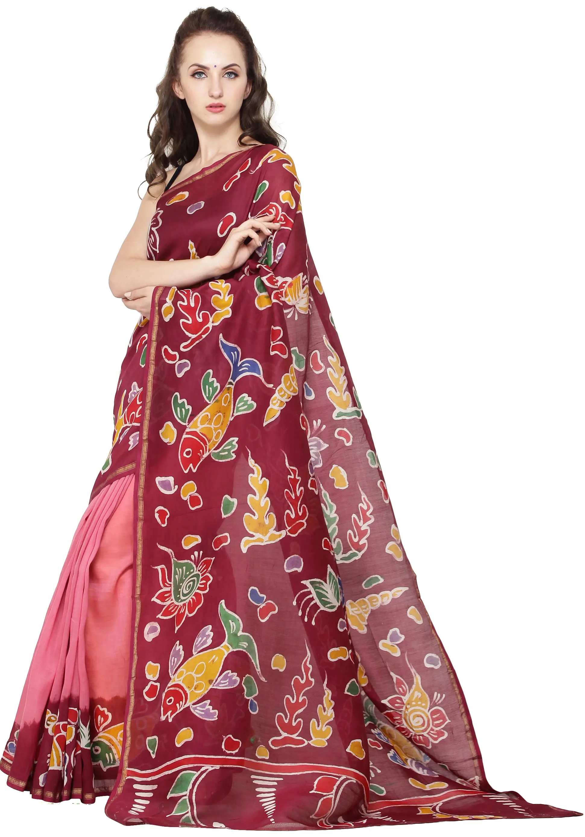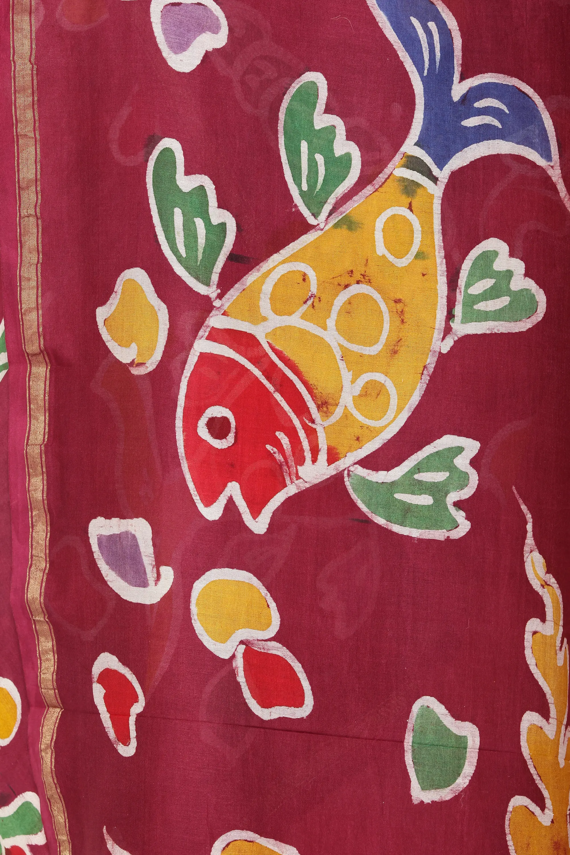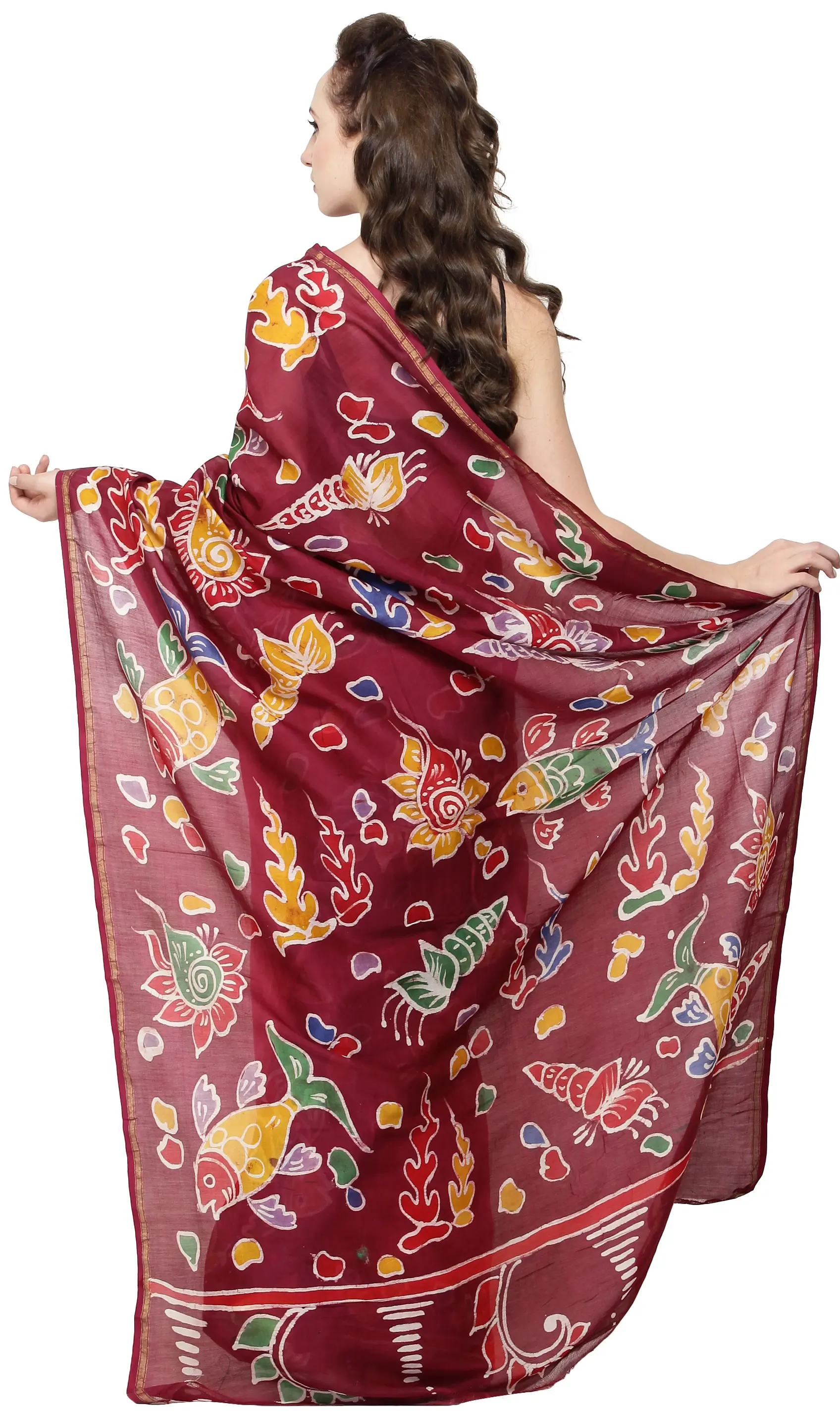 Marine-Green Block-Printed Sari from Madhya Pradesh with Florals All Over