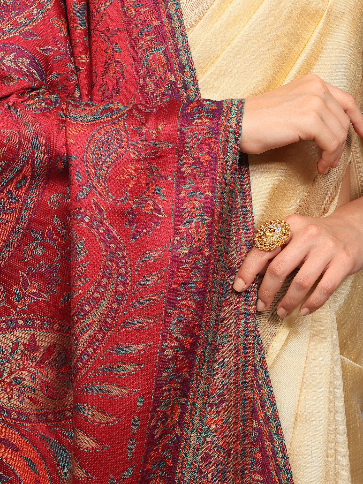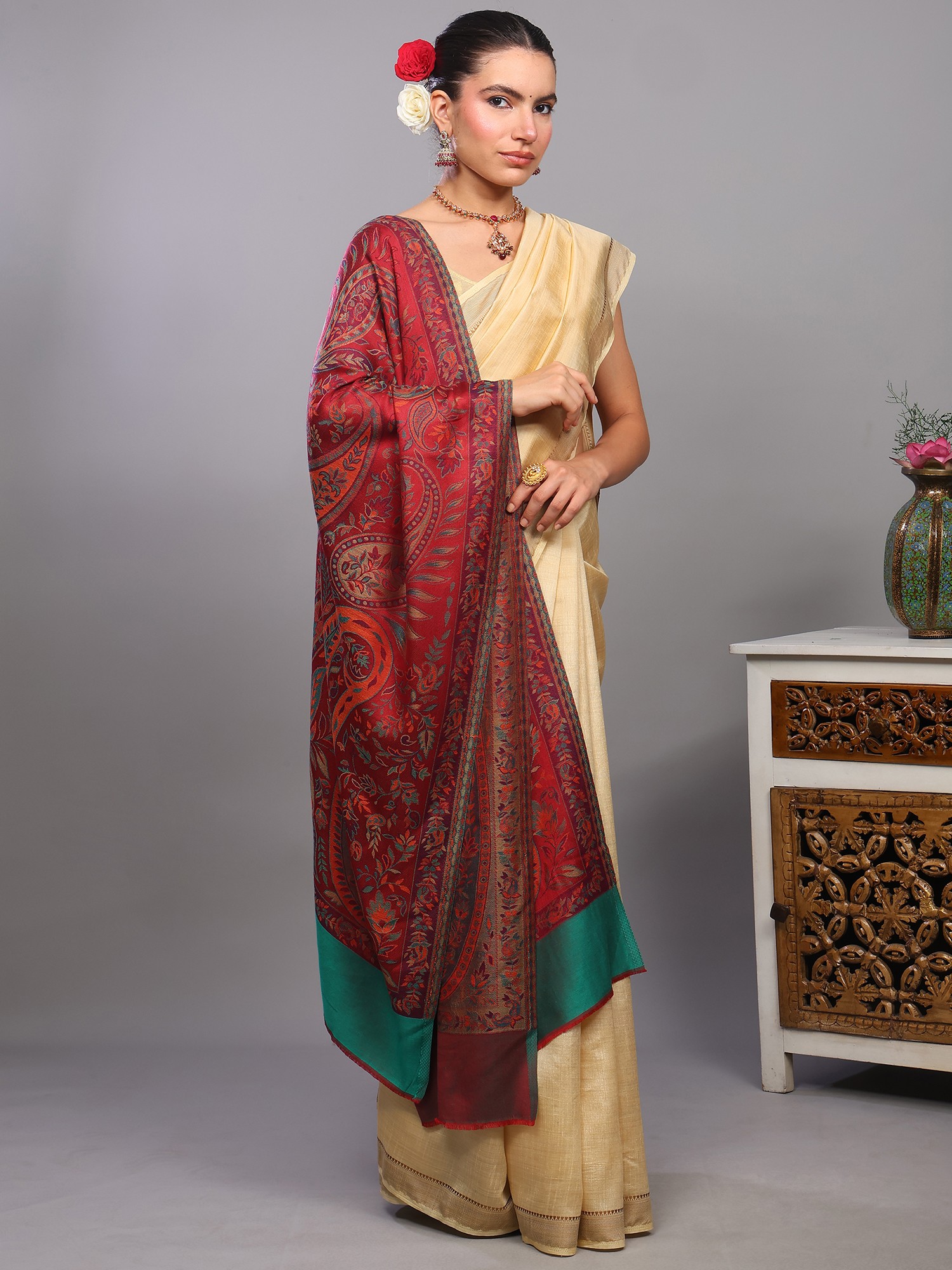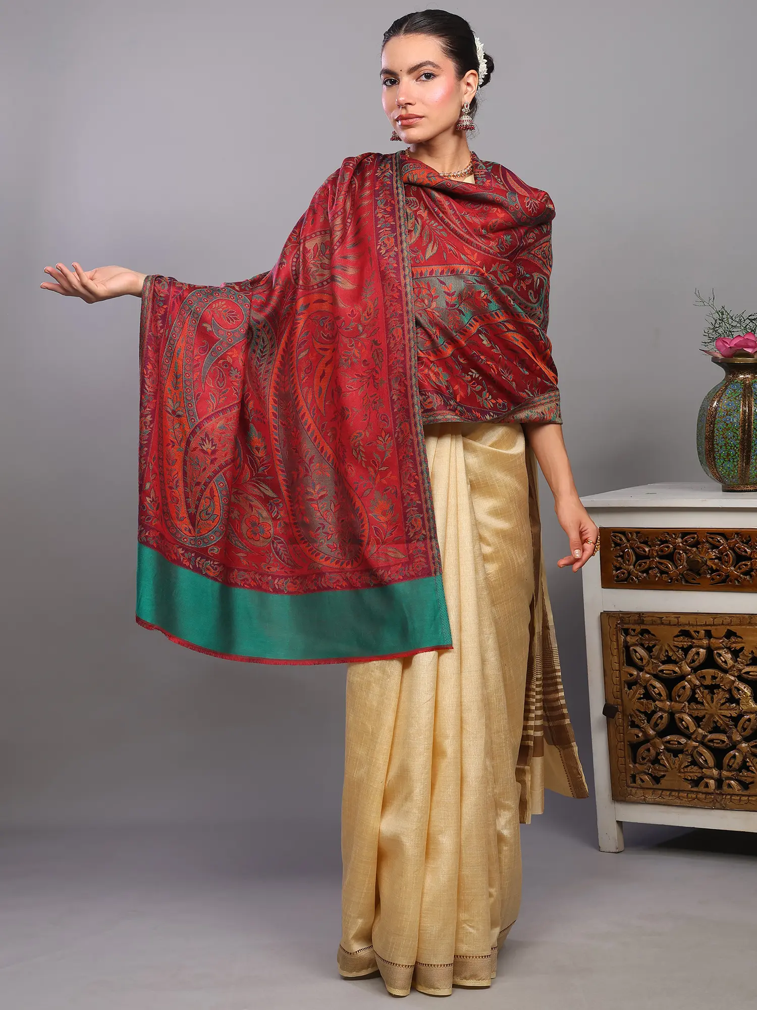 Reversible Jamawar Stole from Amritsar with Woven Paisley Jaal