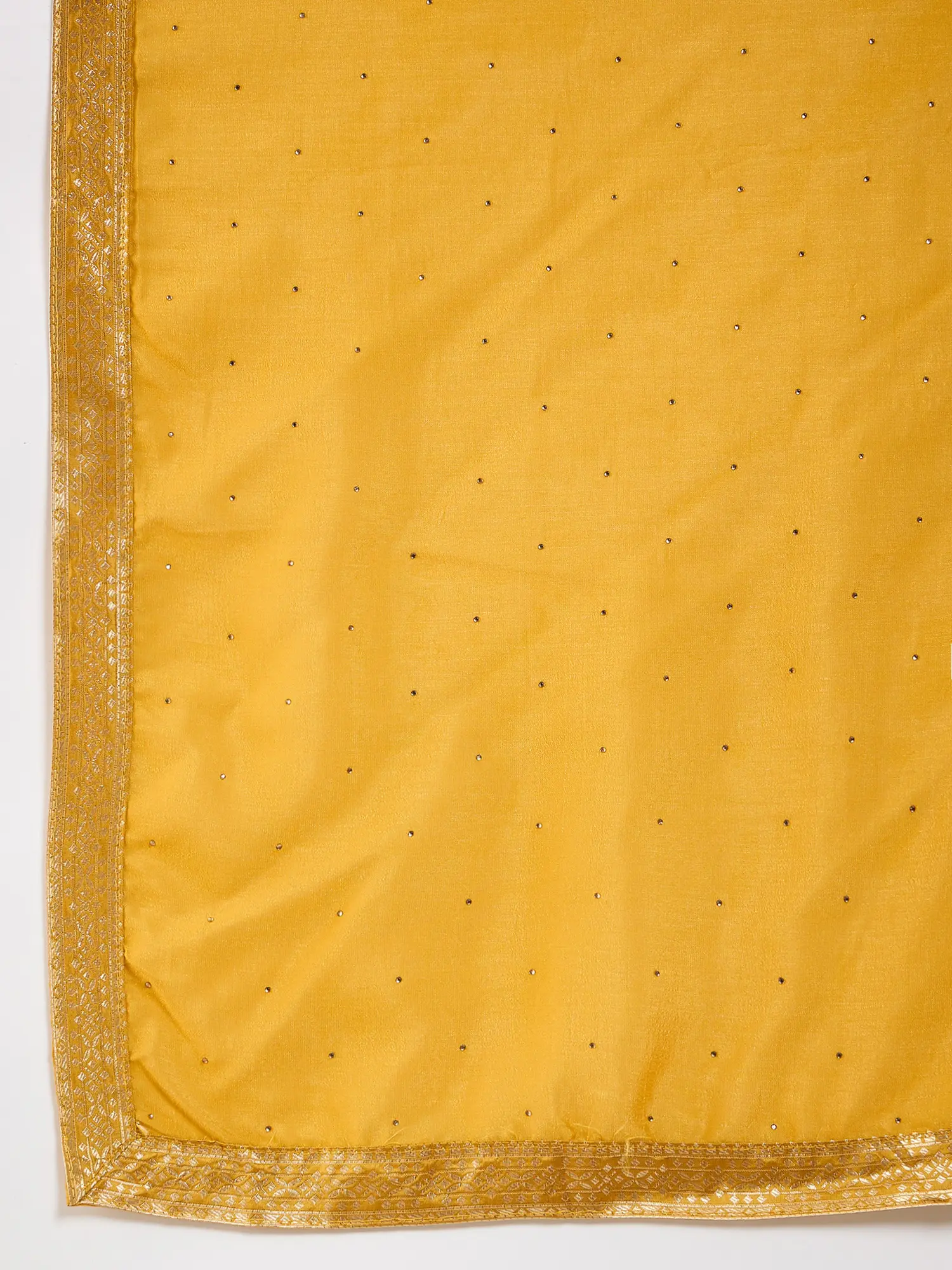 Beige and Green Trouser Salwar Kameez Suit with Embroidered Flowers and Crystals