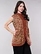Sleeveless Short Jacket with Chain Stitch Thread Embroidered Flowers in Multicolor and Front Pockets