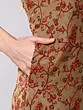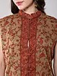 The serene sage-green hue serves as a perfect canvas for the rich, burnt-orange embroidery that cascades across the garment. You'll appreciate the thoughtful design, with a flattering cut that measures 32 inches in length and a generous bust circumference of 46 inches, ensuring a comfortable and elegant drape. The shoulder width of 17 inches adds a structured yet feminine appeal, while the stand collar provides a touch of regal charm.